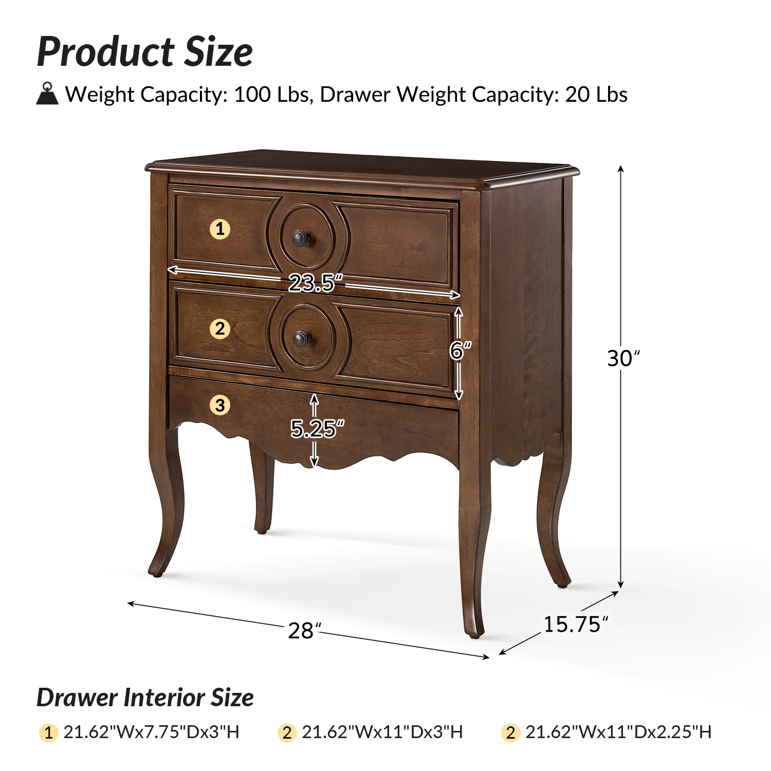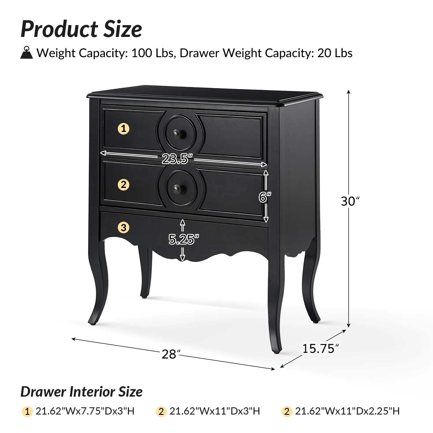 | Number of Drawers | 3 |