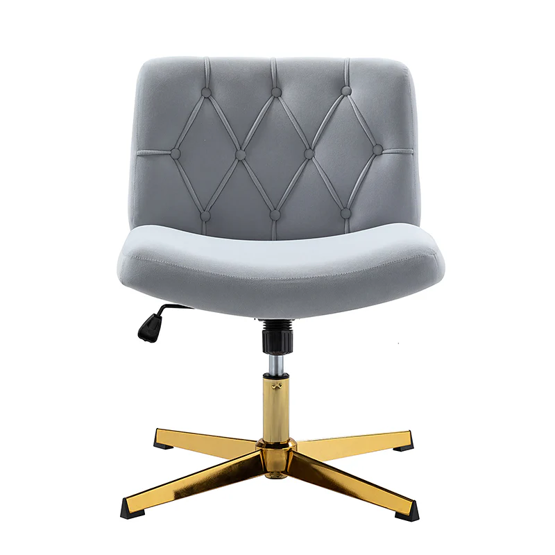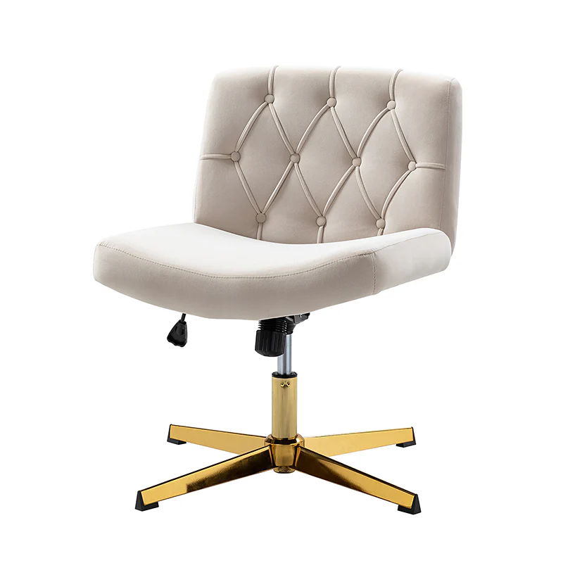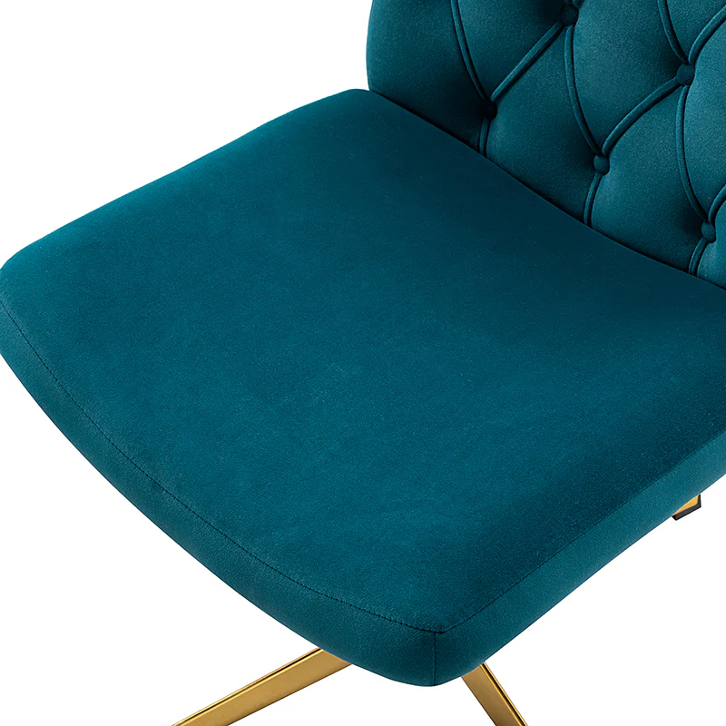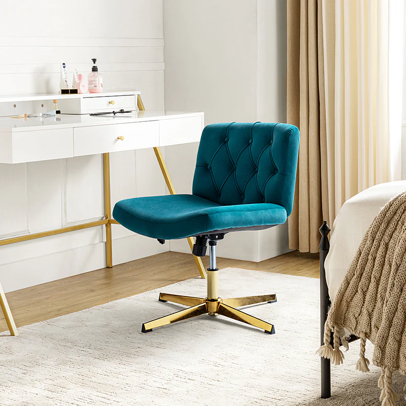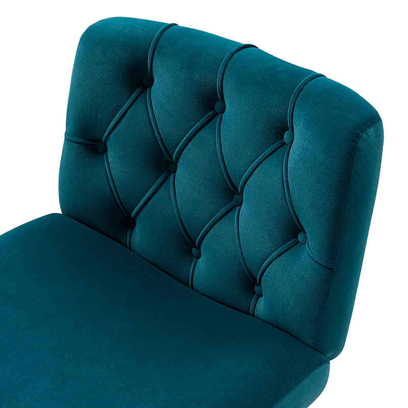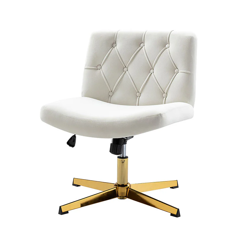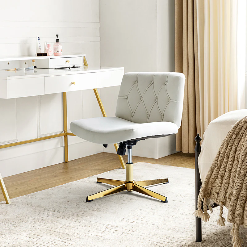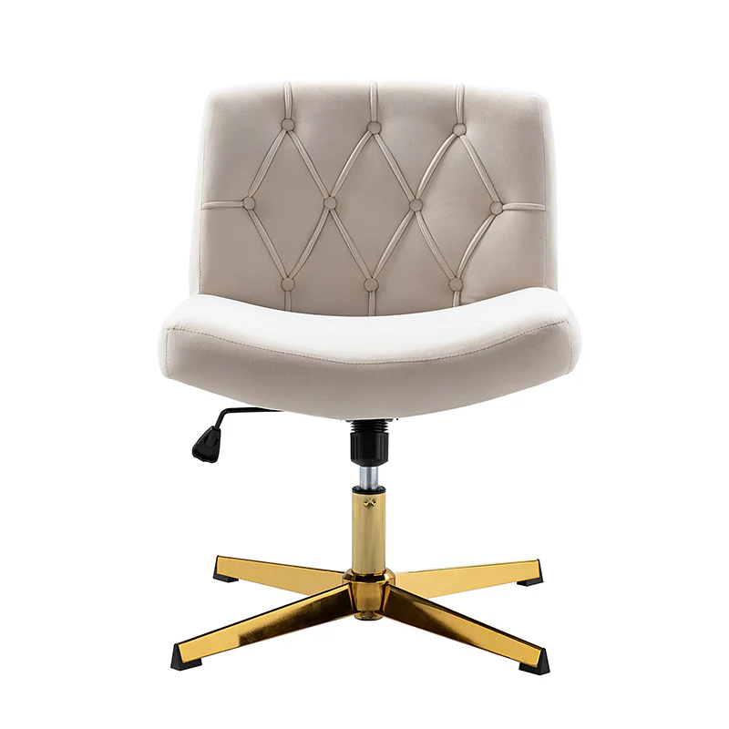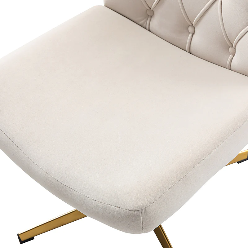 Looking for a modern chair? Need a chair for makeup? For the home office? For studying? Or for a small spaced area? Wide chairs offer more space to sit, allowing for a more relaxed and comfortable seating experience. Its 360-degree swivel seating allows for effortless mobility, ensuring you can easily pivot to face any direction. The four sturdy metal legs of the chair offer stability and durability, while its plush fabric upholstery adds a touch of luxury. The button-tufted design on the backrest not only adds an elegant and classic touch but also enhances overall comfort by providing additional cushioning and support. This chair combines modern design and practicality, making it an ideal choice for any modern living space.