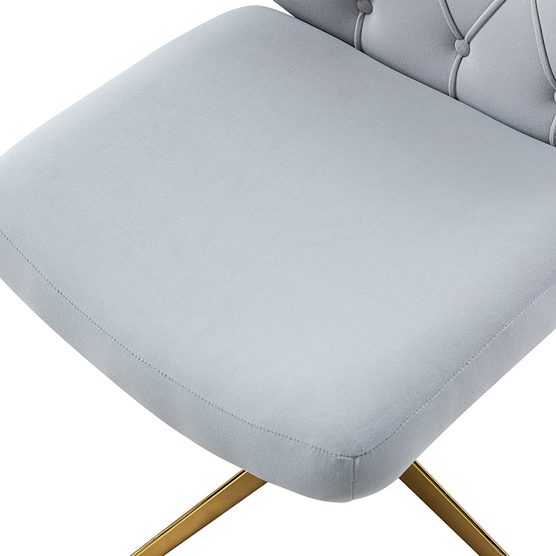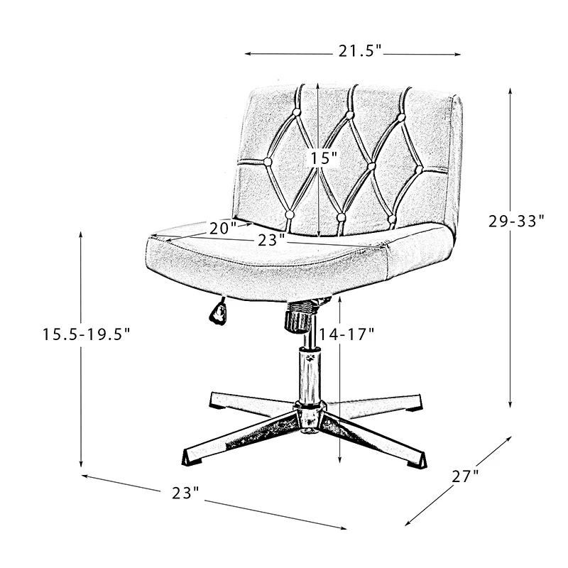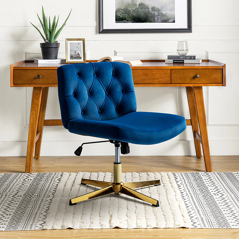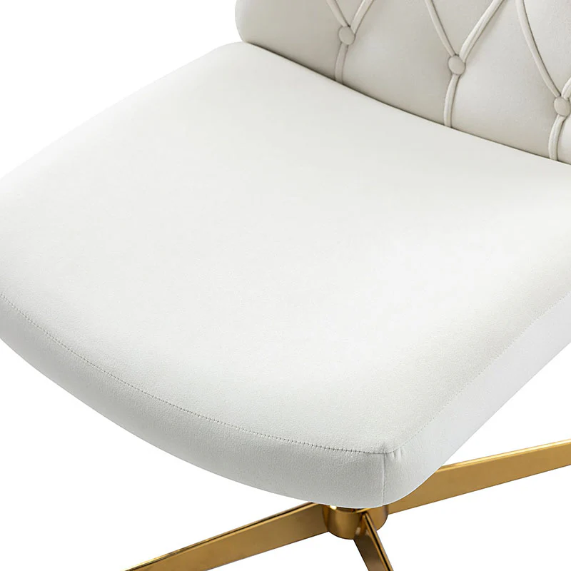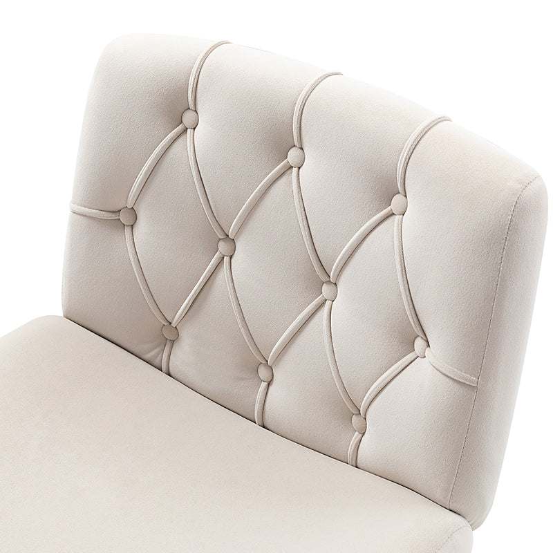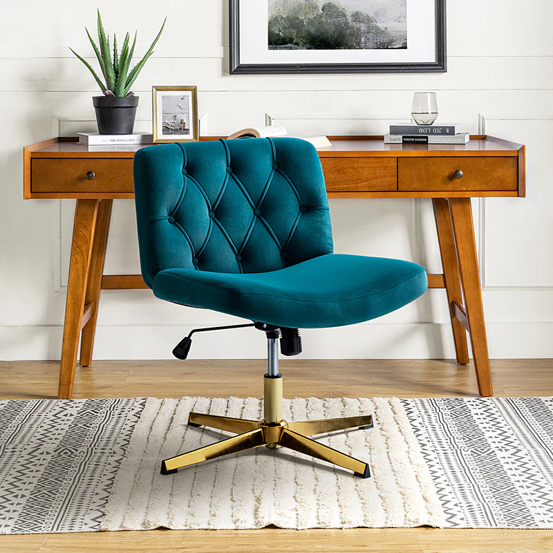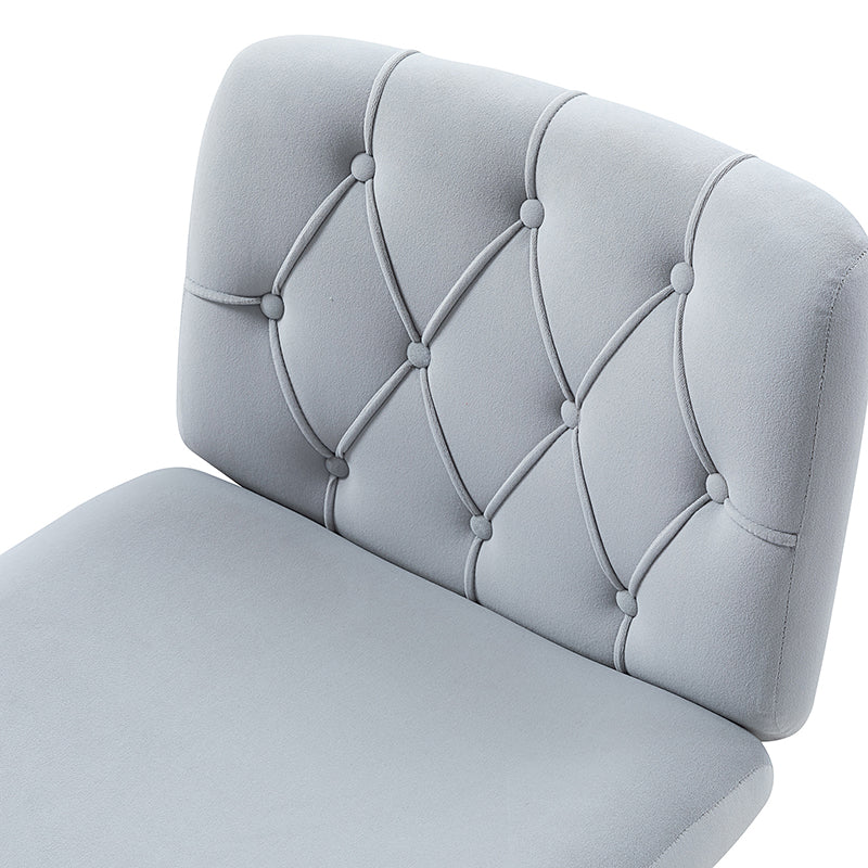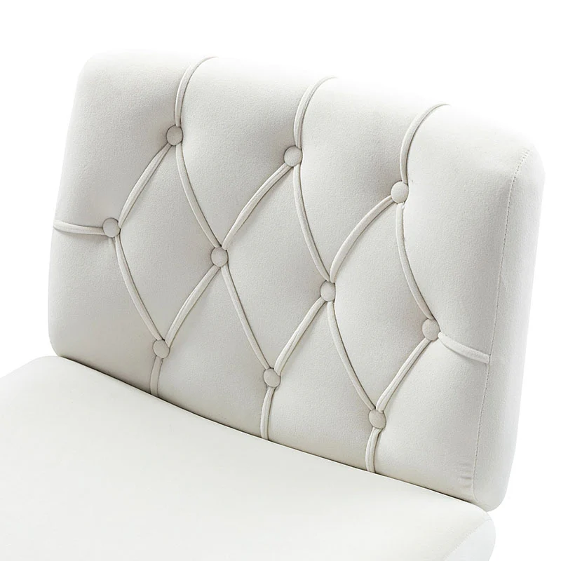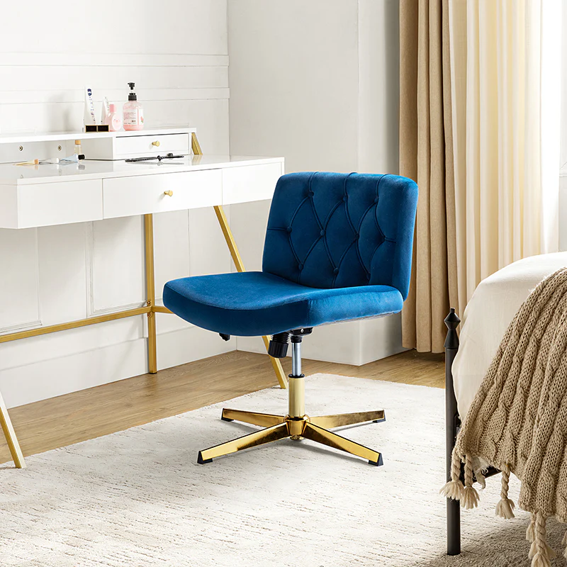 Looking for a modern chair? Need a chair for makeup? For the home office? For studying? Or for a small spaced area? Wide chairs offer more space to sit, allowing for a more relaxed and comfortable seating experience. Its 360-degree swivel seating allows for effortless mobility, ensuring you can easily pivot to face any direction. The four sturdy metal legs of the chair offer stability and durability, while its plush fabric upholstery adds a touch of luxury. The button-tufted design on the backrest not only adds an elegant and classic touch but also enhances overall comfort by providing additional cushioning and support. This chair combines modern design and practicality, making it an ideal choice for any modern living space.