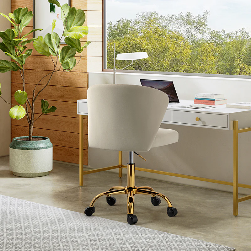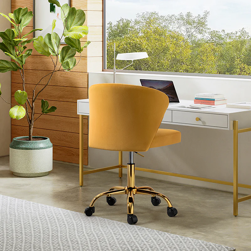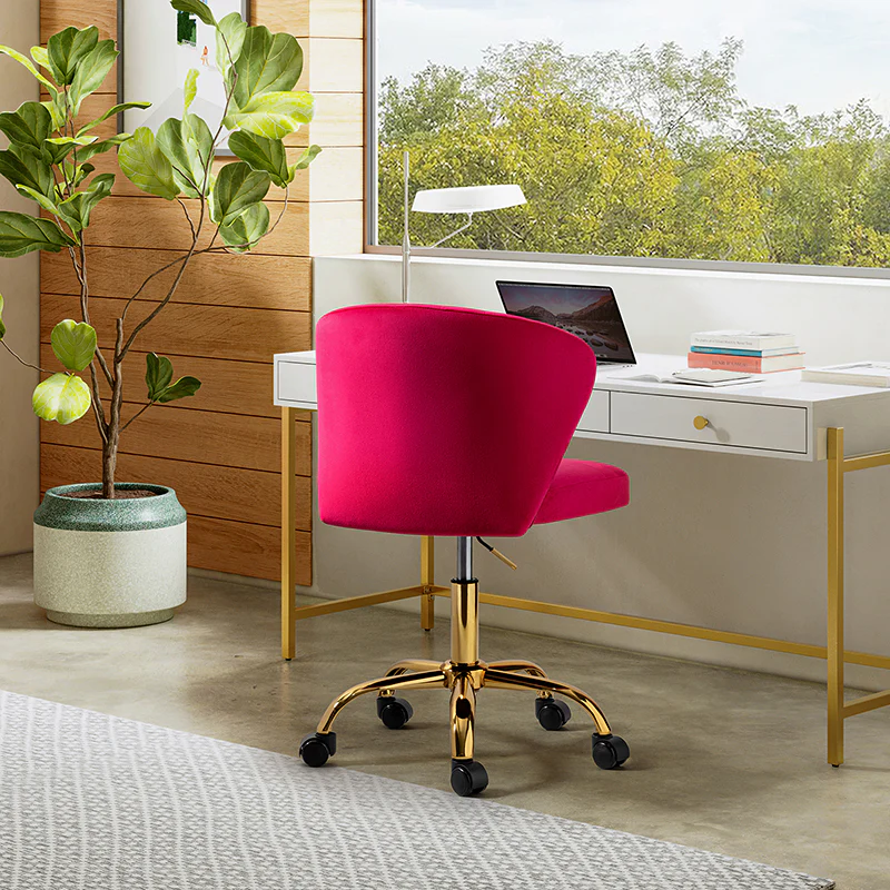 A well-edited workspace calls for a carefully-curated chair, and this design is it! It offers supreme comfort thanks to its ergonomic shape and features a durable frame with soft filling. The bright and colorful finish will blend with most color palettes. Its classic design along with its elegant pattern and channel tufted back makes this chair a must-have in your home office. Durable metal five-pronged base and high performance all directional wheels allow smooth movement across carpeting. This chic design is height-adjustable to personally tailor your space.