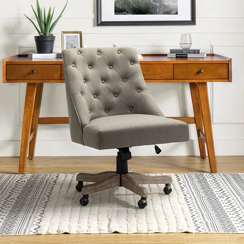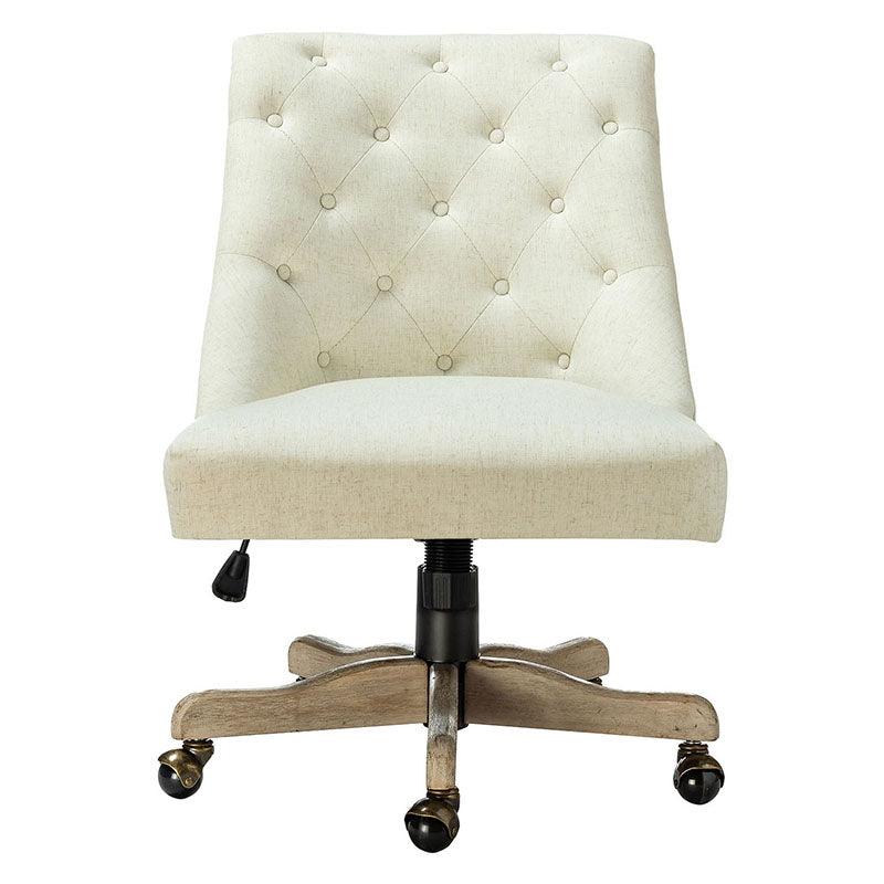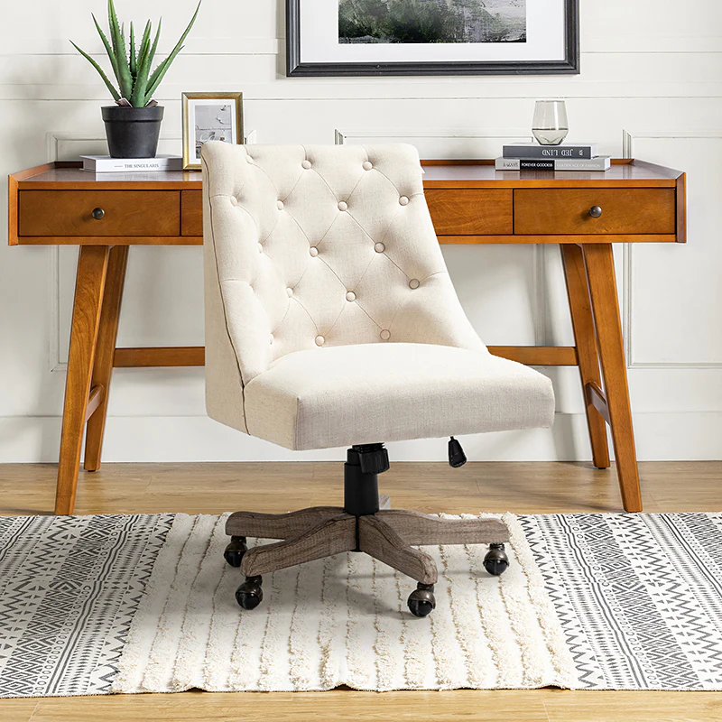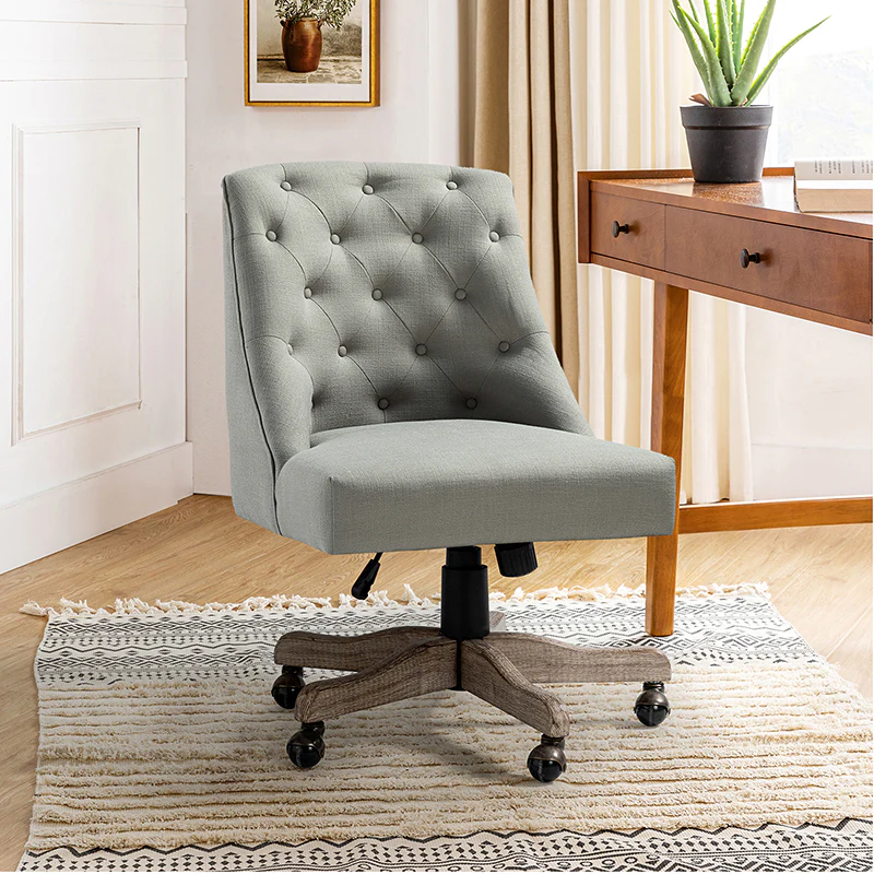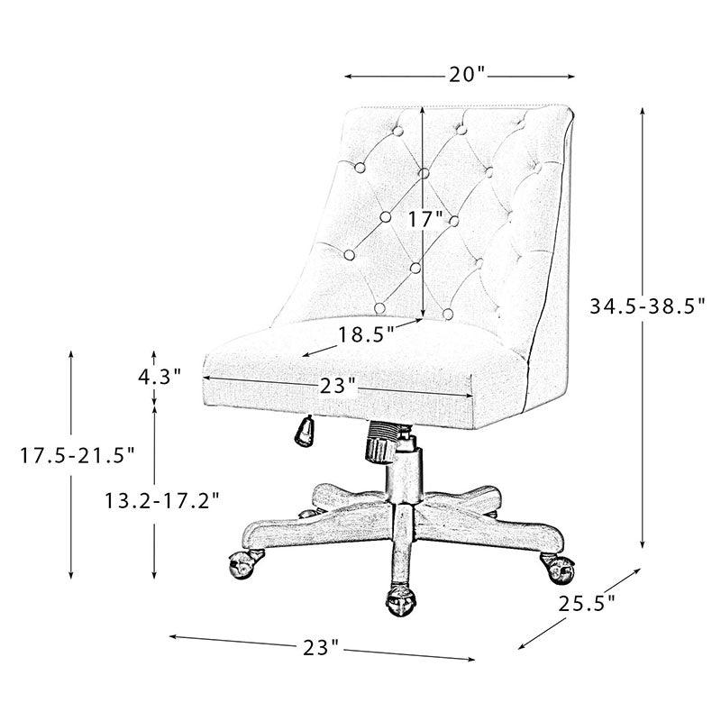 A well-edited workspace calls for a carefully-curated chair and this design is it! It offers supreme comfort thanks to its ergonomic shape and features a durable frame with soft filling. Its classic design along with button tufted makes this chair a must-have in your home office. Durable solid wood five-pronged base and high performance all directional wheels allow smooth movement across carpeting. This chic design is height-adjustable to personally tailor your space.