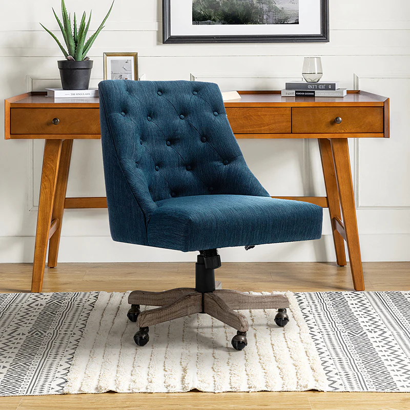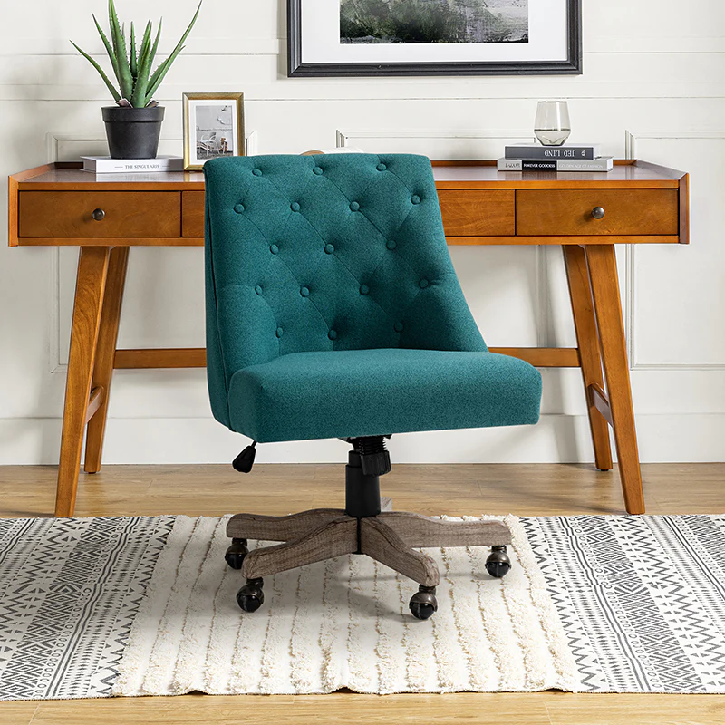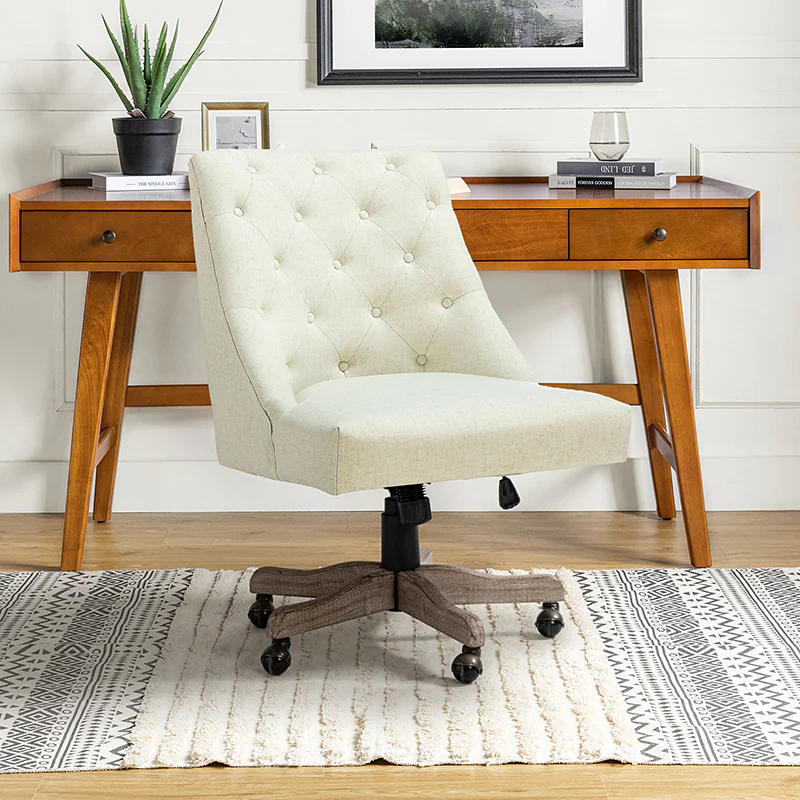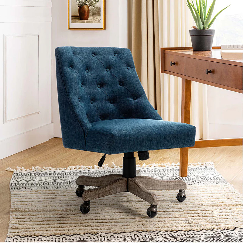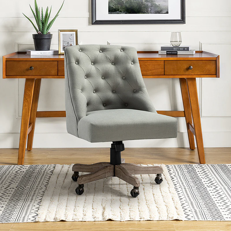 A well-edited workspace calls for a carefully-curated chair and this design is it! It offers supreme comfort thanks to its ergonomic shape and features a durable frame with soft filling. Its classic design along with button tufted makes this chair a must-have in your home office. Durable solid wood five-pronged base and high performance all directional wheels allow smooth movement across carpeting. This chic design is height-adjustable to personally tailor your space.