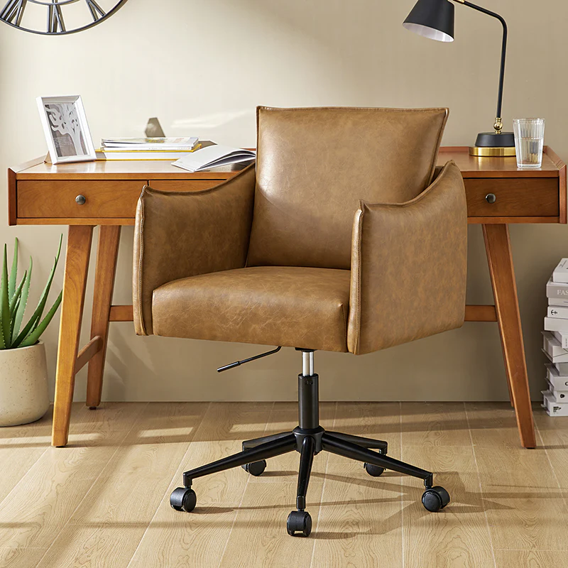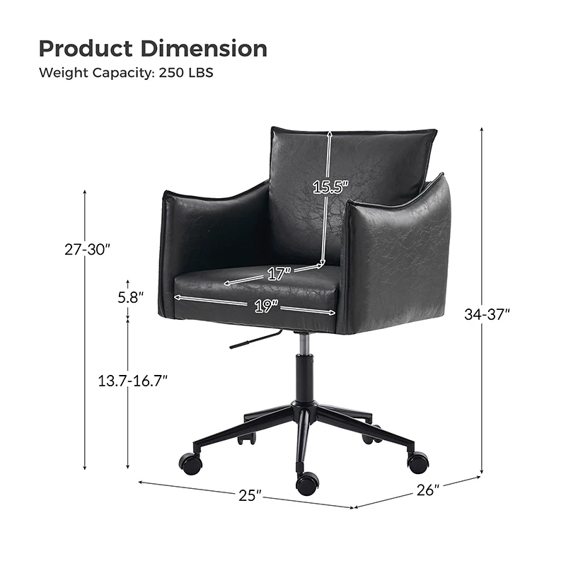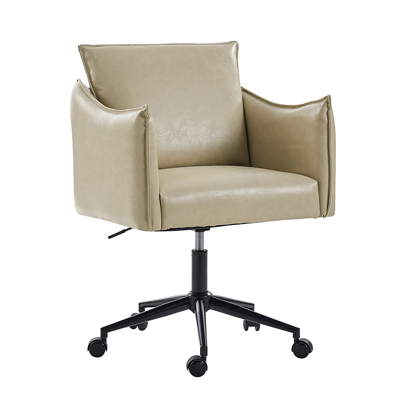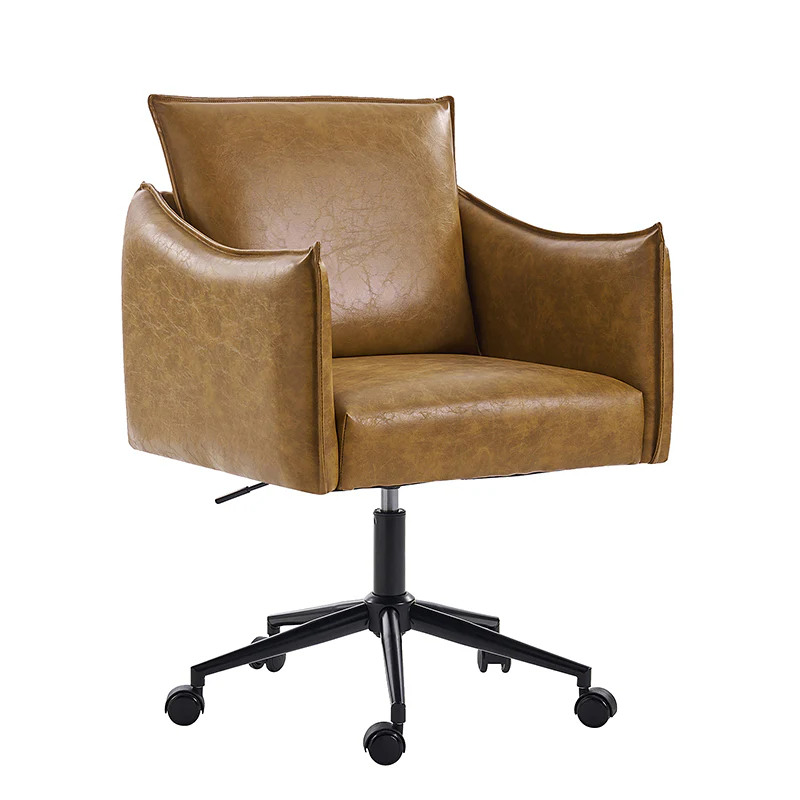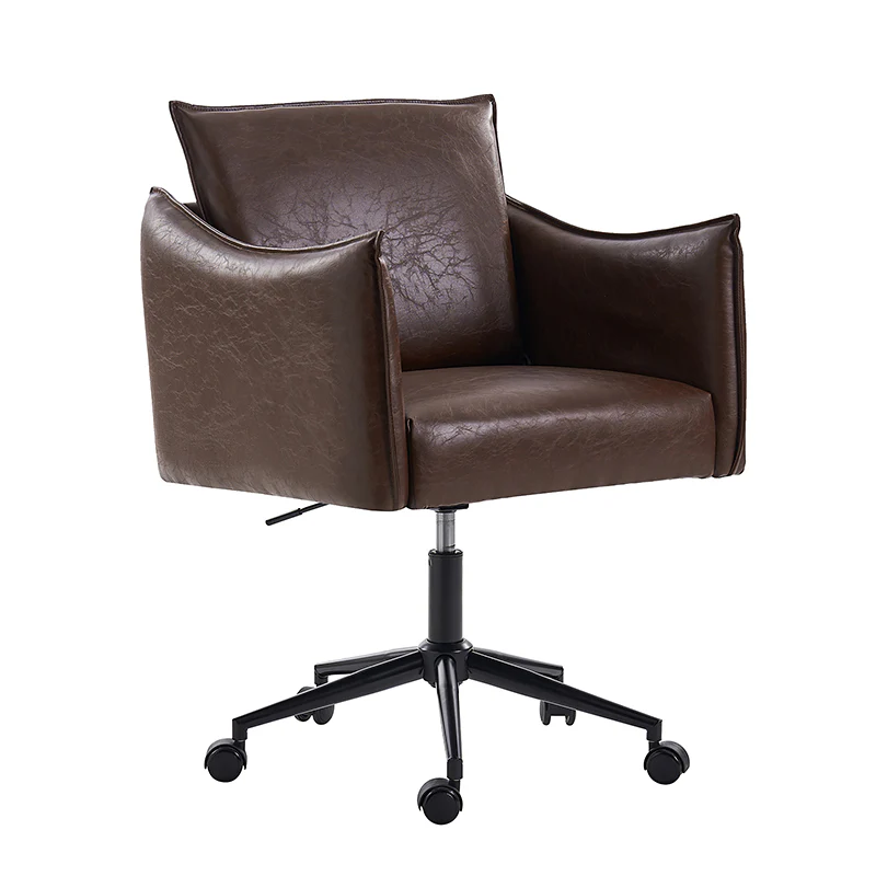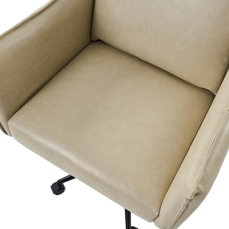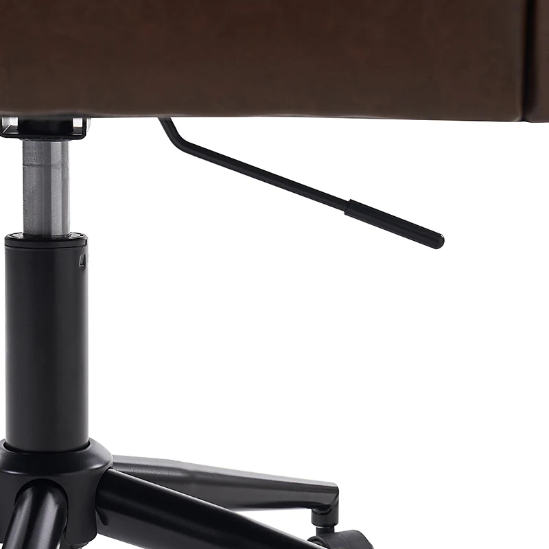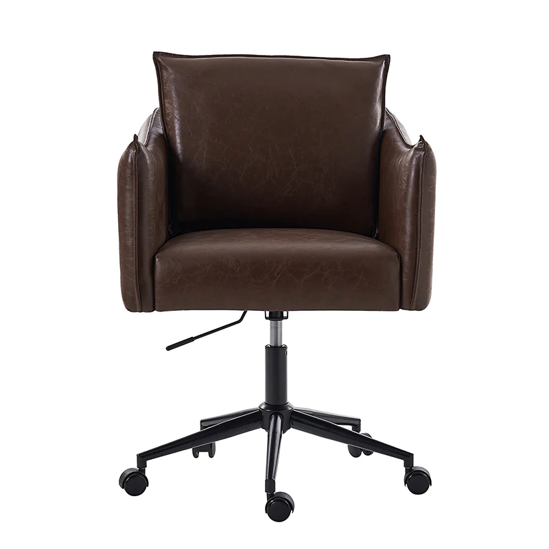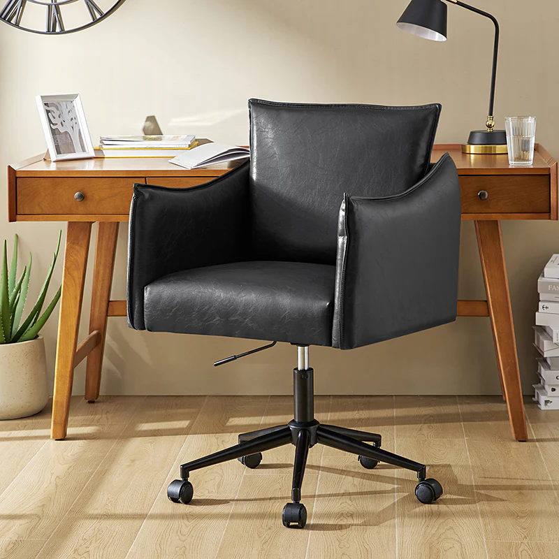 Upgrade your workspace with the modern, industrial-style office chair. Wrapped in sleek quality PU leather with folded edges, it exudes contemporary appeal. Designed for versatility, the office chair features a 360-degree swivel and comes equipped with five smooth-rolling wheels for effortless mobility. Tailor your seating experience with easy up-and-down adjustment, allowing you to find a suitable height for your desk. The chair is equipped with a stainless steel gas spring holding the SGS certificate, ensuring durability and stability. Elevate your home office with this stylish and functional chair, striking the balance between comfort and cutting-edge design.