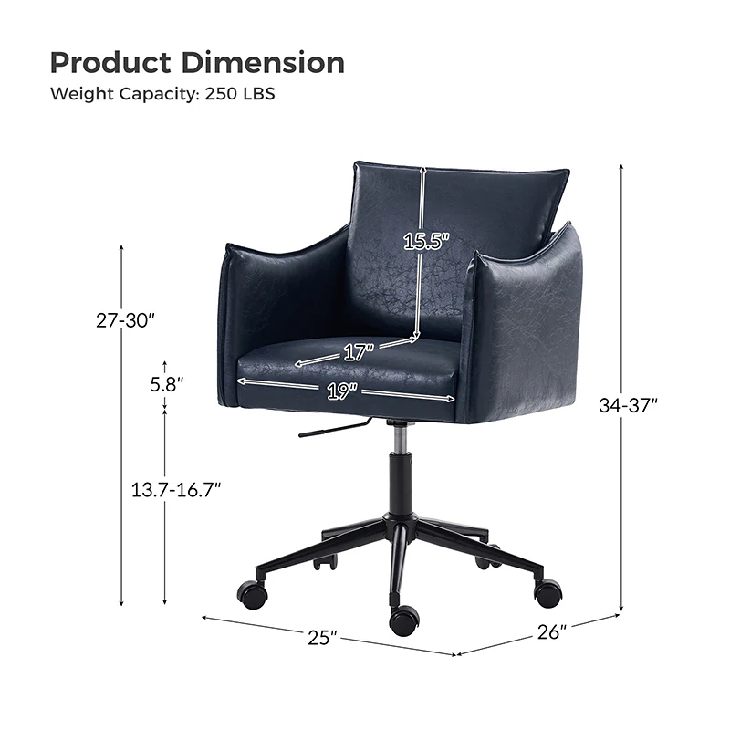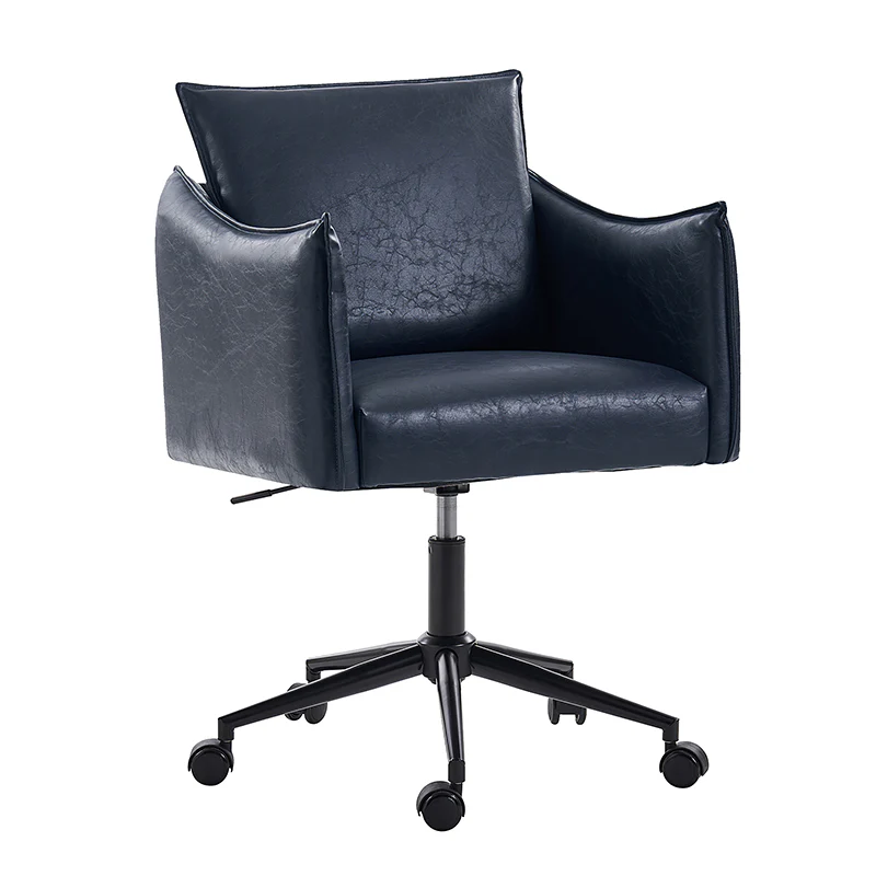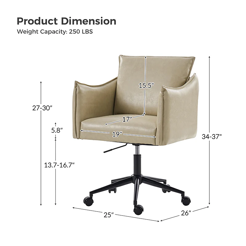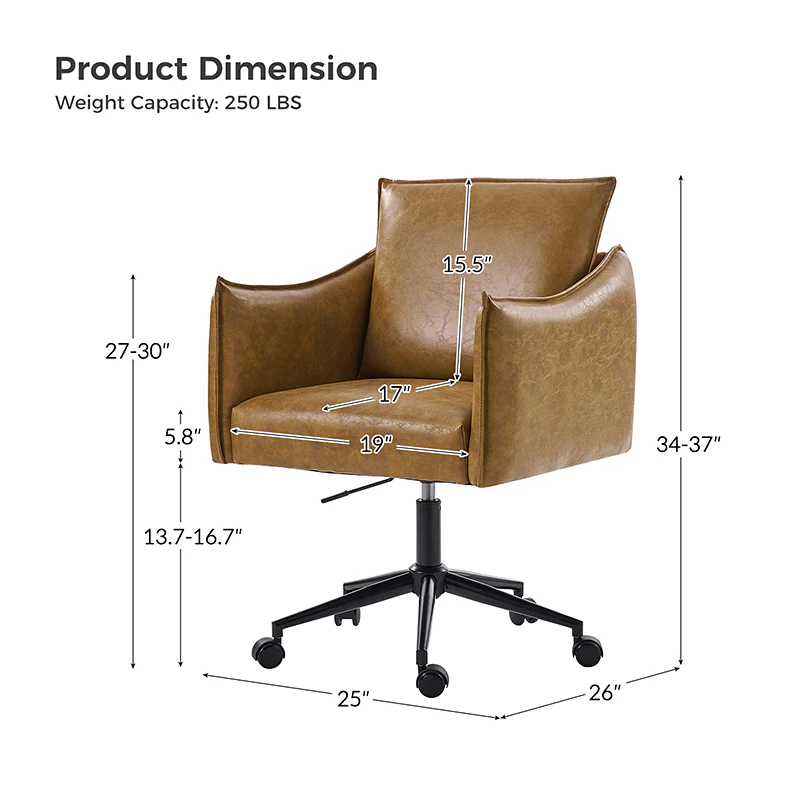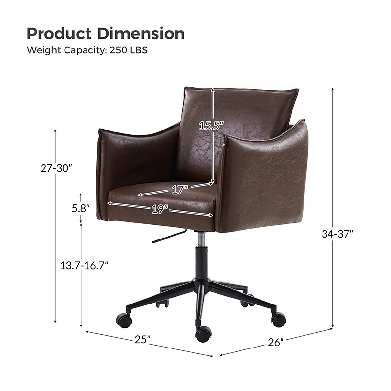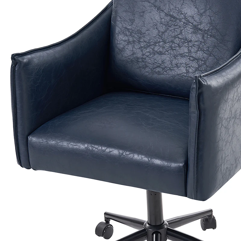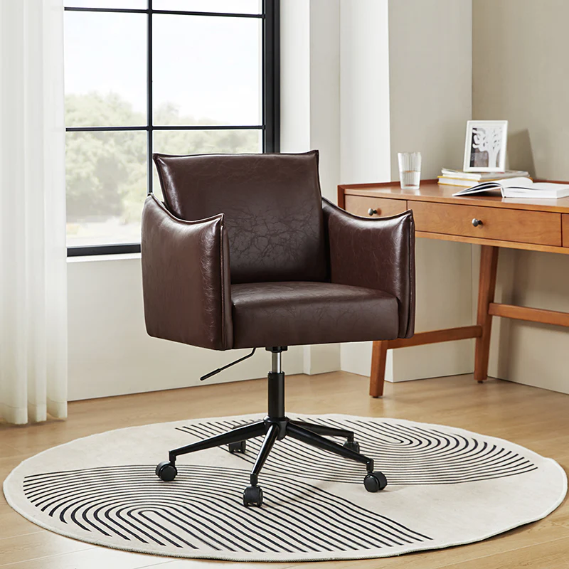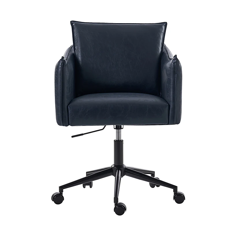 Upgrade your workspace with the modern, industrial-style office chair. Wrapped in sleek quality PU leather with folded edges, it exudes contemporary appeal. Designed for versatility, the office chair features a 360-degree swivel and comes equipped with five smooth-rolling wheels for effortless mobility. Tailor your seating experience with easy up-and-down adjustment, allowing you to find a suitable height for your desk. The chair is equipped with a stainless steel gas spring holding the SGS certificate, ensuring durability and stability. Elevate your home office with this stylish and functional chair, striking the balance between comfort and cutting-edge design.