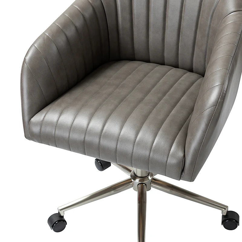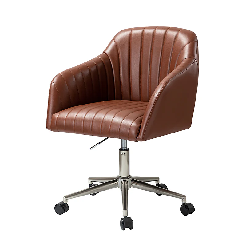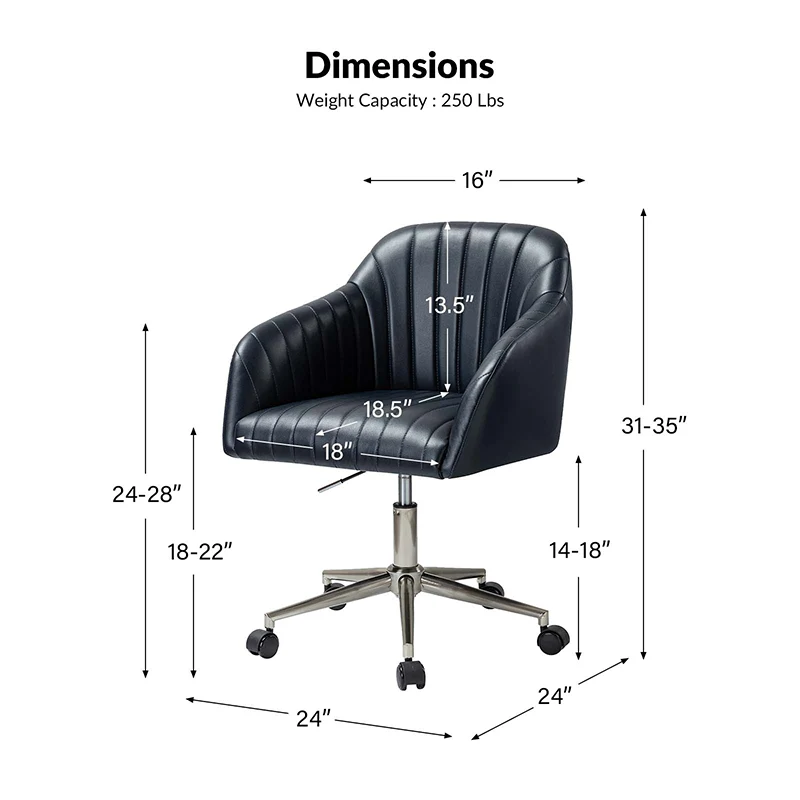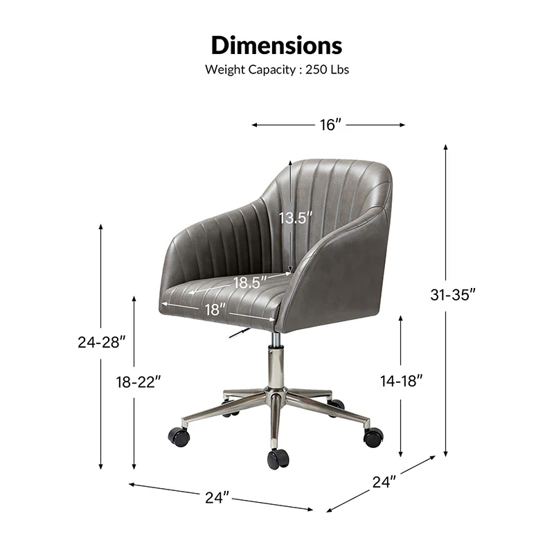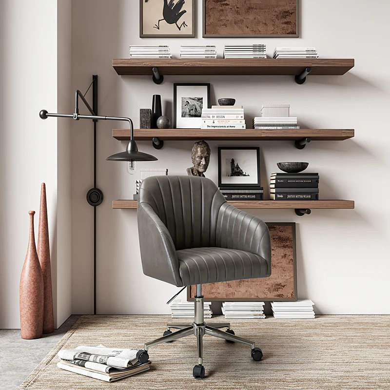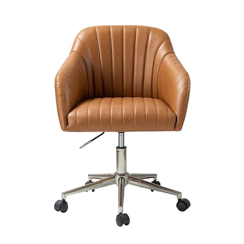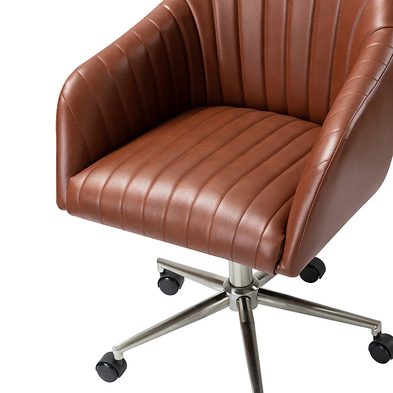 This contemporary ergonomic office chair with a quilted design, is an ideal pick, whether you're completing your home office or office conference room. Offering the appeal of mid-century-inspired decor to your abode, it features round arms and a solid back with a vertical channel running the length. Plus, you can change the height of the seat, and swivel a full 360-degree. The vegan leather is waterproof and resistant to oil stains, and offers ample support and a stylish touch that complements traditional, transitional, vintage, and classic home styles.