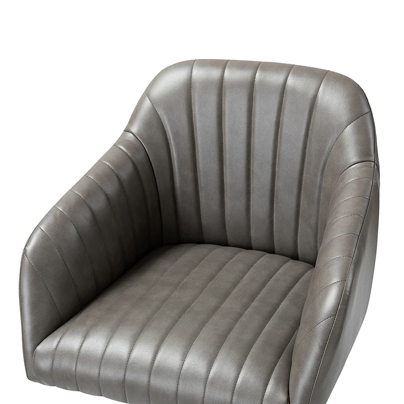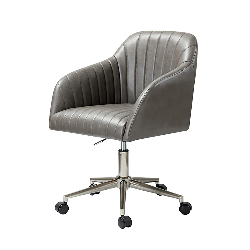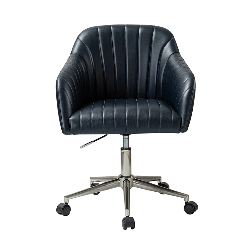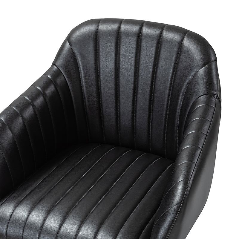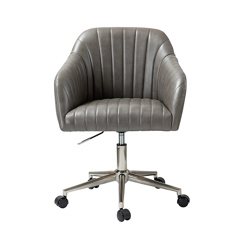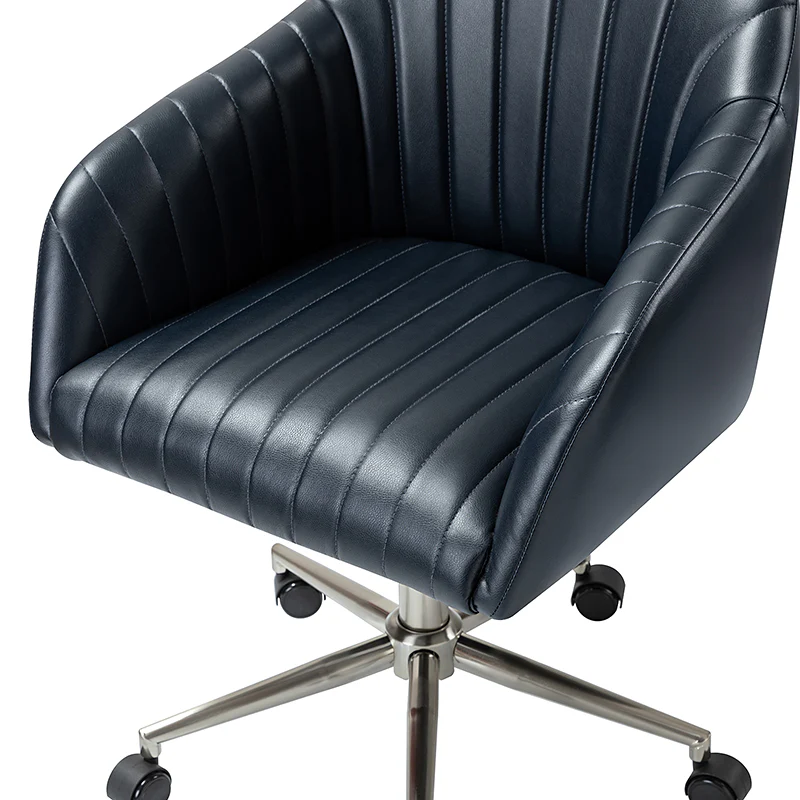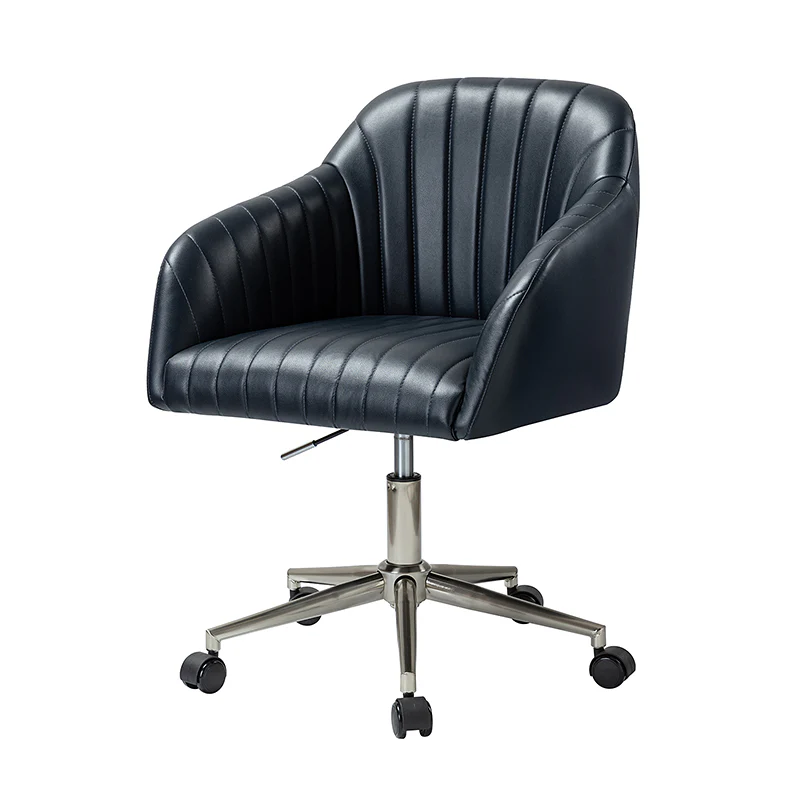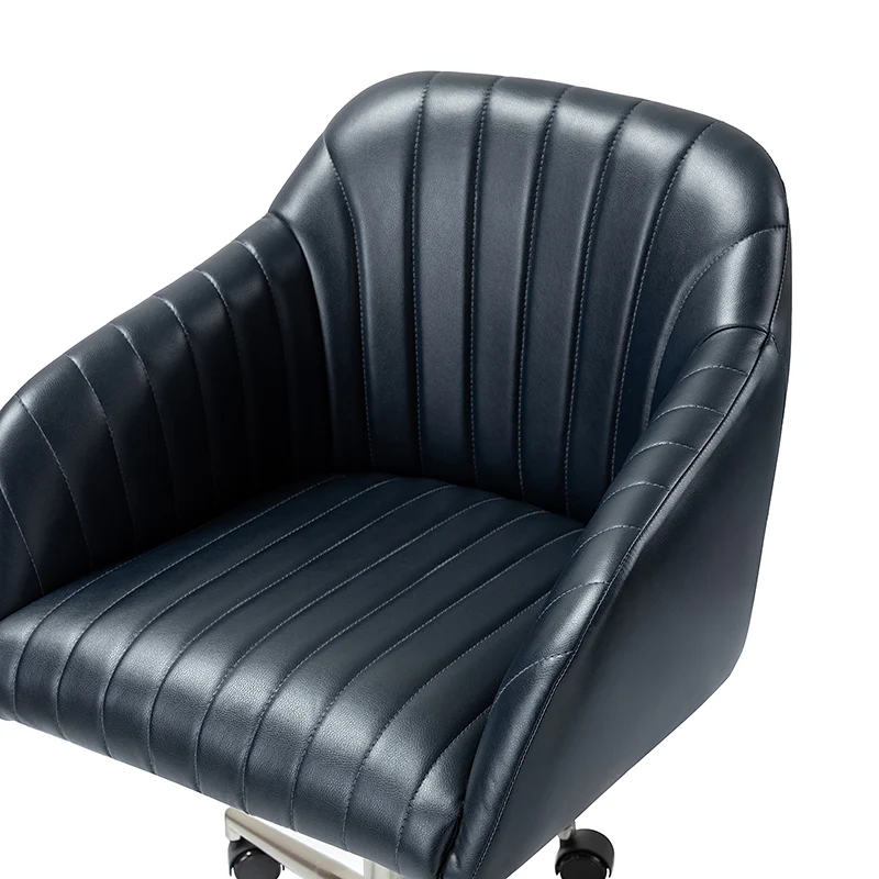 This contemporary ergonomic office chair with a quilted design, is an ideal pick, whether you're completing your home office or office conference room. Offering the appeal of mid-century-inspired decor to your abode, it features round arms and a solid back with a vertical channel running the length. Plus, you can change the height of the seat, and swivel a full 360-degree. The vegan leather is waterproof and resistant to oil stains, and offers ample support and a stylish touch that complements traditional, transitional, vintage, and classic home styles.