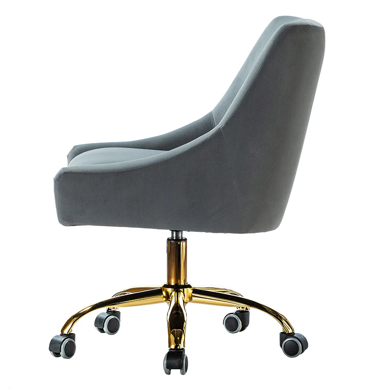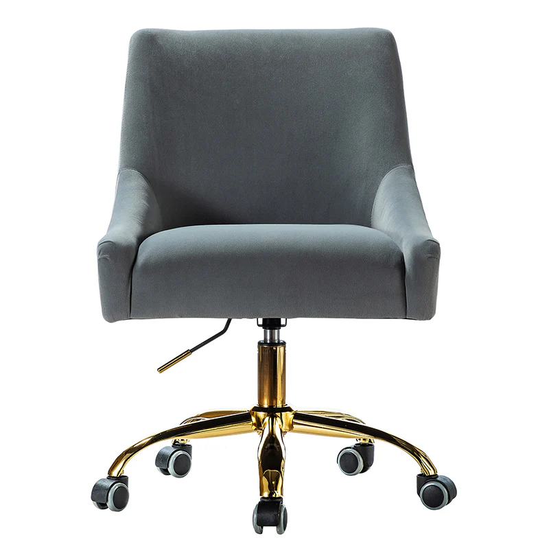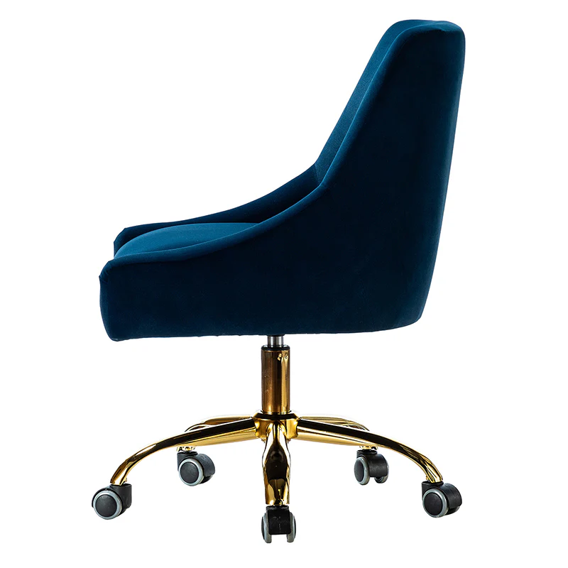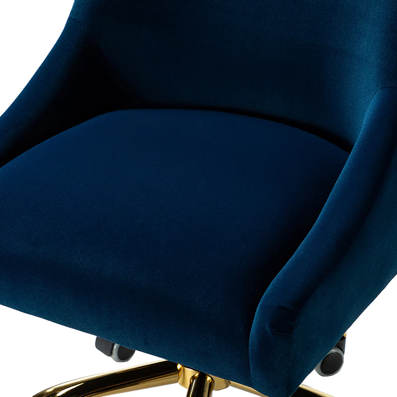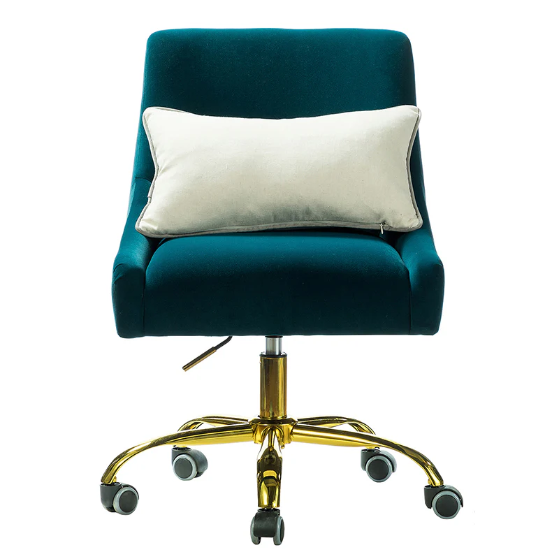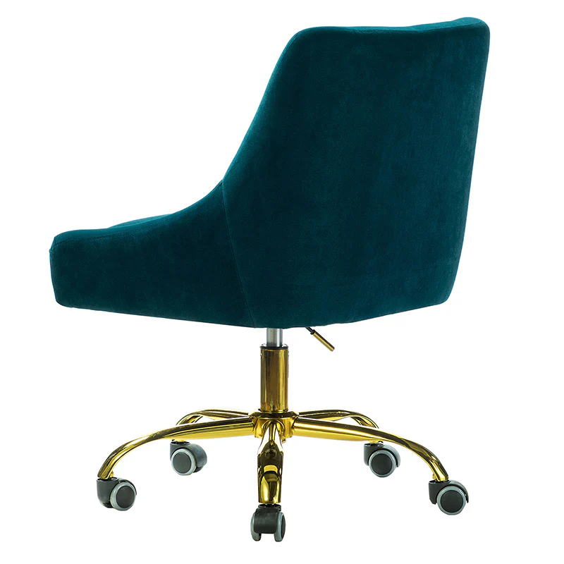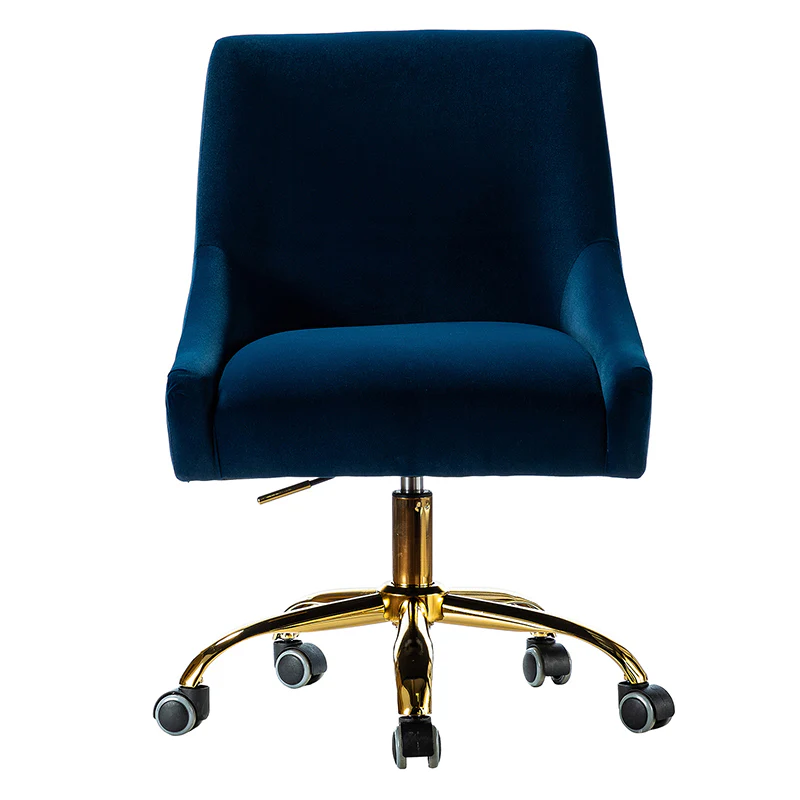 A well-edited workspace calls for a carefully-curated chair and this design is it! It offers supreme comfort thanks to its ergonomic shape and features a durable frame with soft filling. The bright and colorful finish will blend with most color palettes. Durable gold finish metal five-pronged base and high performance all directional wheels allow smooth movement across carpeting. This chic design is height-adjustable to personally tailor your space.