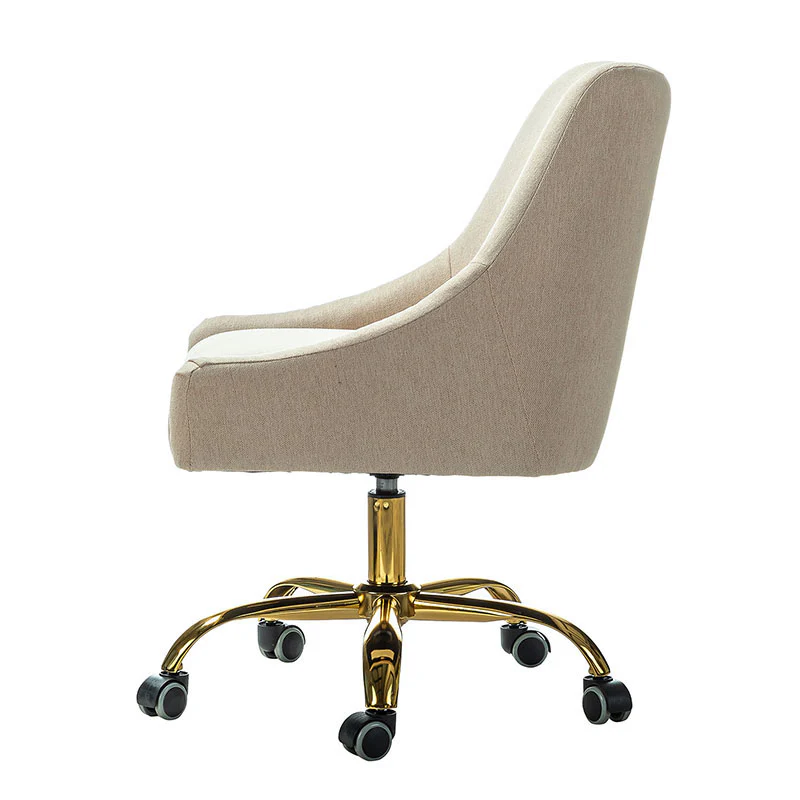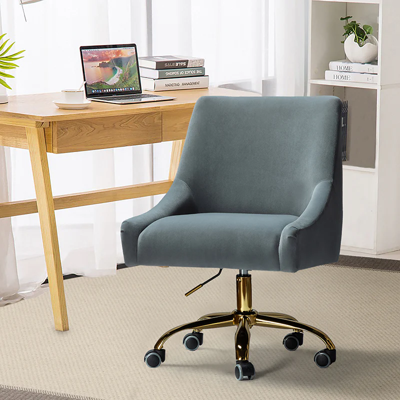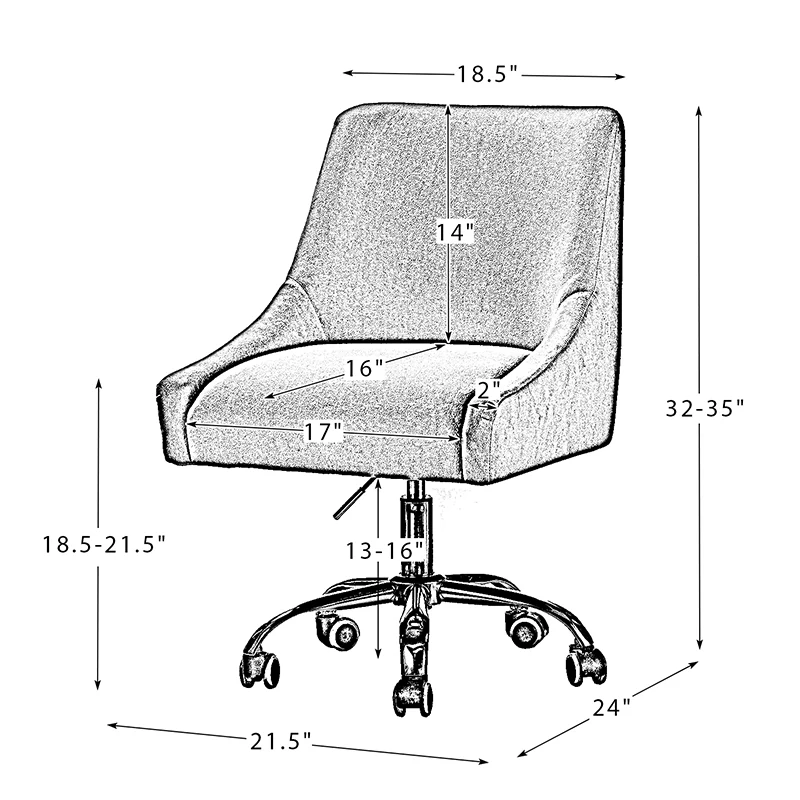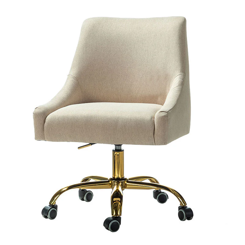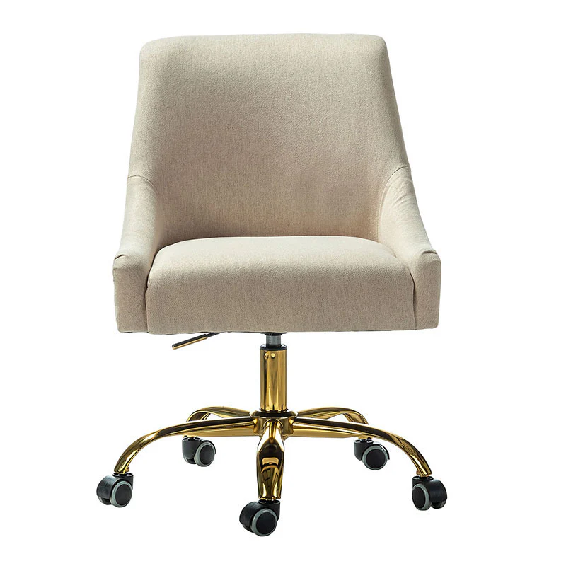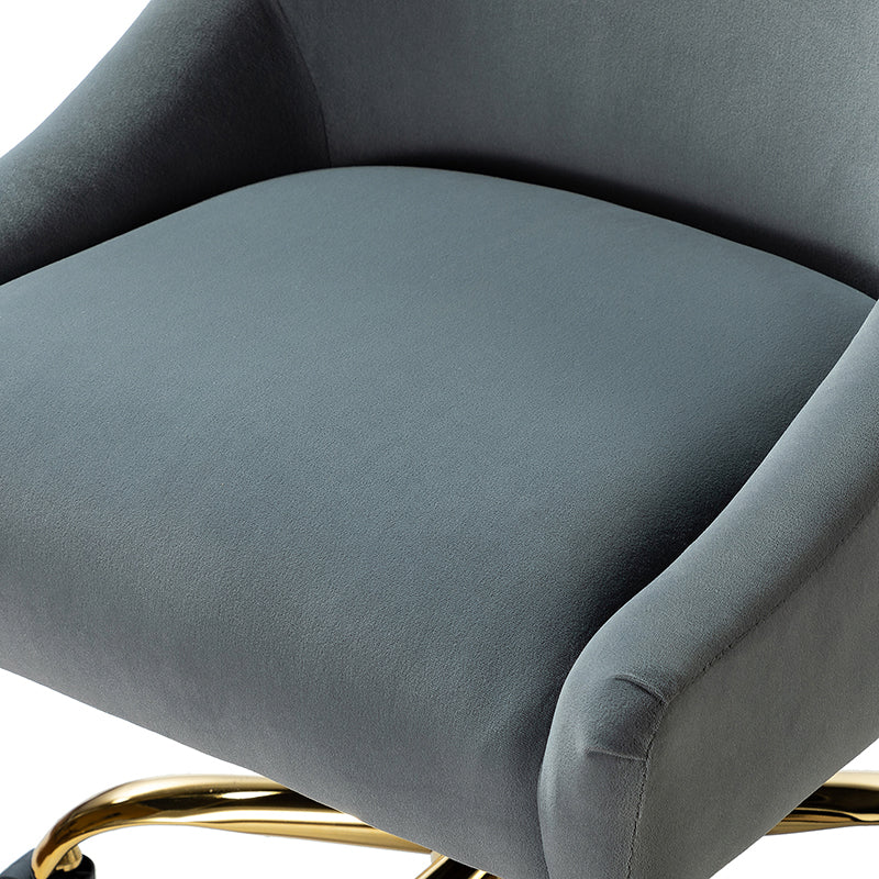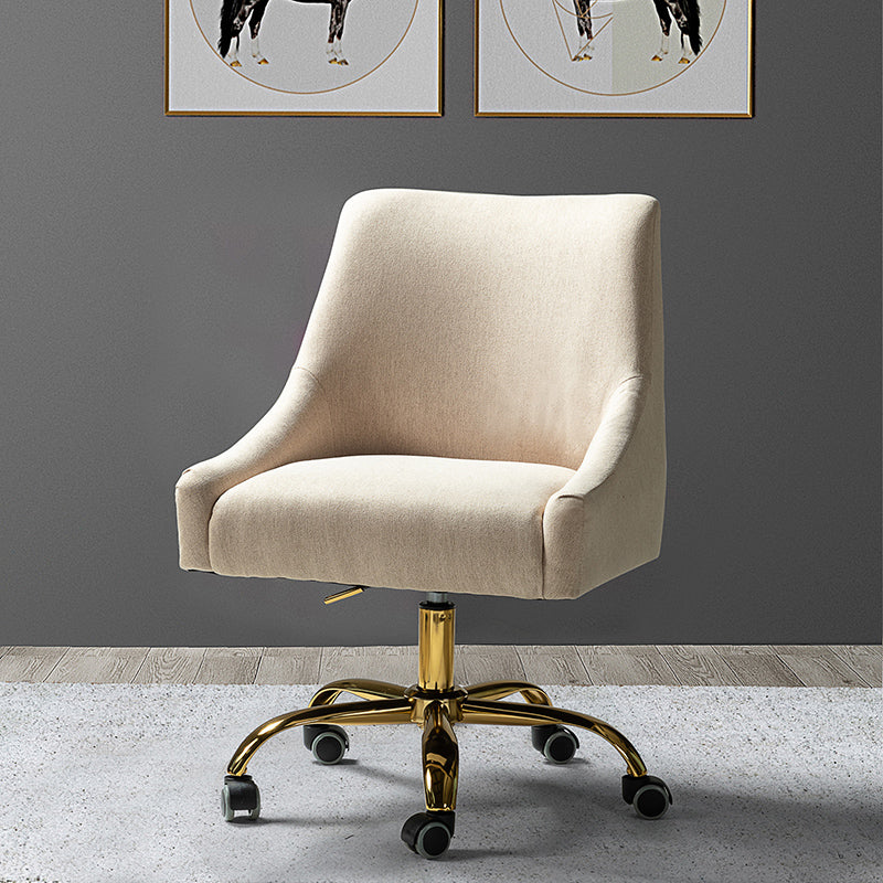A well-edited workspace calls for a carefully-curated chair and this design is it! It offers supreme comfort thanks to its ergonomic shape and features a durable frame with soft filling. The bright and colorful finish will blend with most color palettes. Durable gold finish metal five-pronged base and high performance all directional wheels allow smooth movement across carpeting. This chic design is height-adjustable to personally tailor your space.