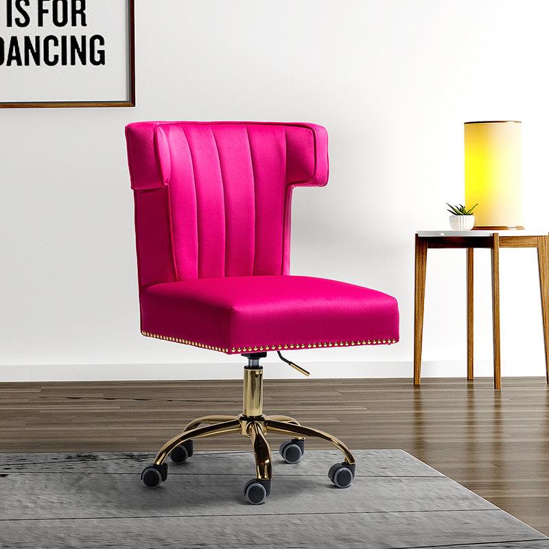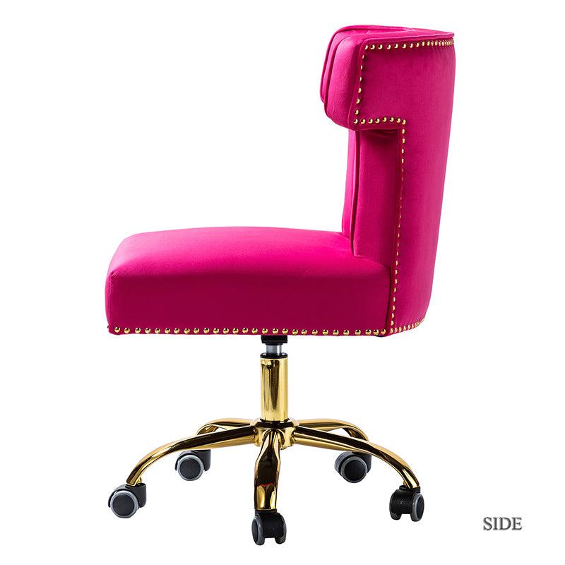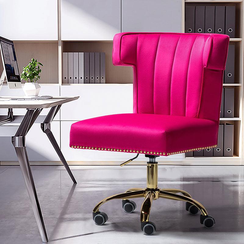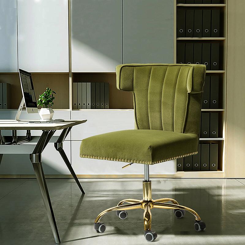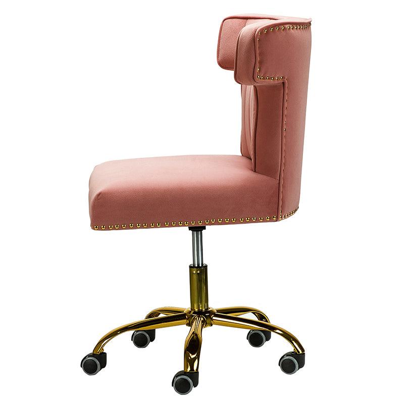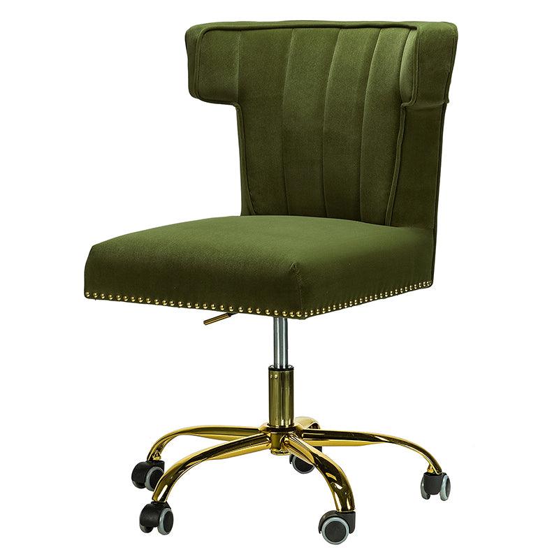 A well-edited workspace calls for a carefully-curated chair and this design takes the cake! The bright and colorful finish will blend with most color palettes. Its classic design along with wingback and gleaming nail-head trim makes this chair a must-have in your home office.