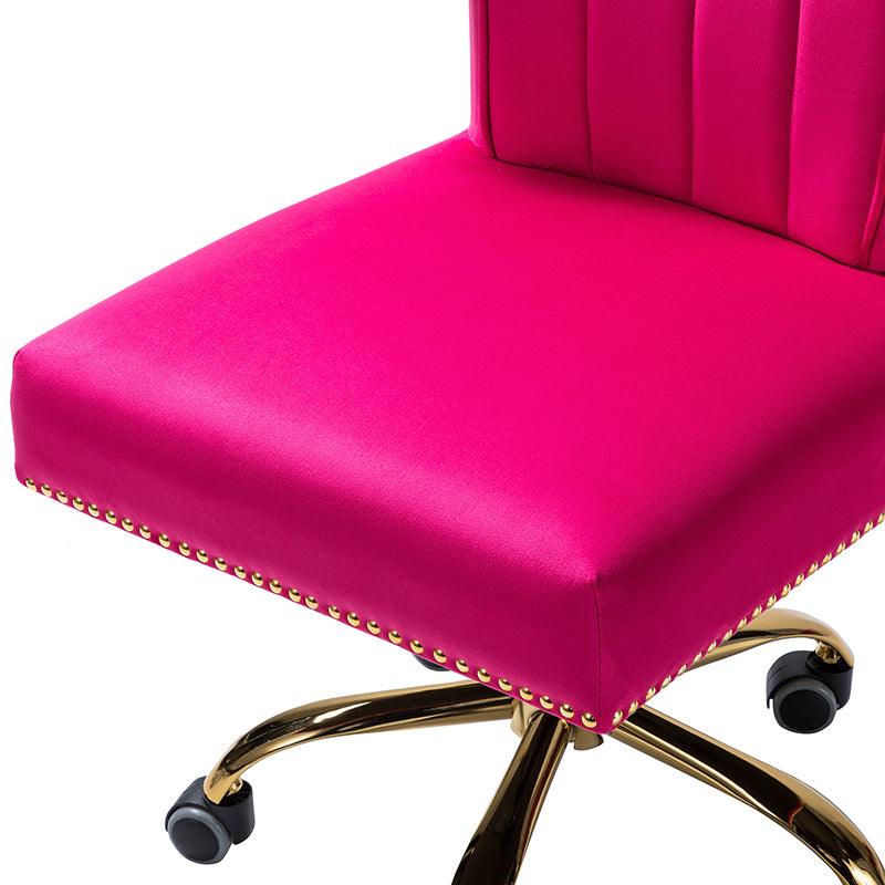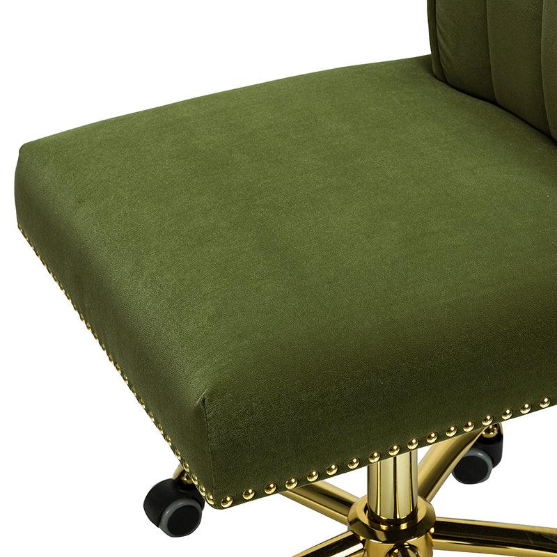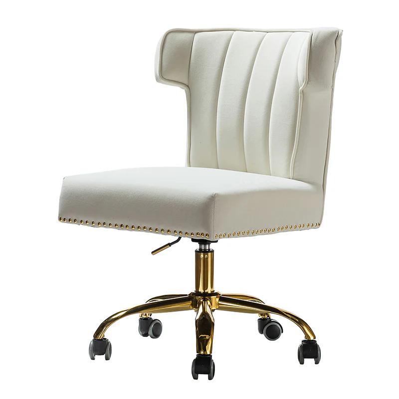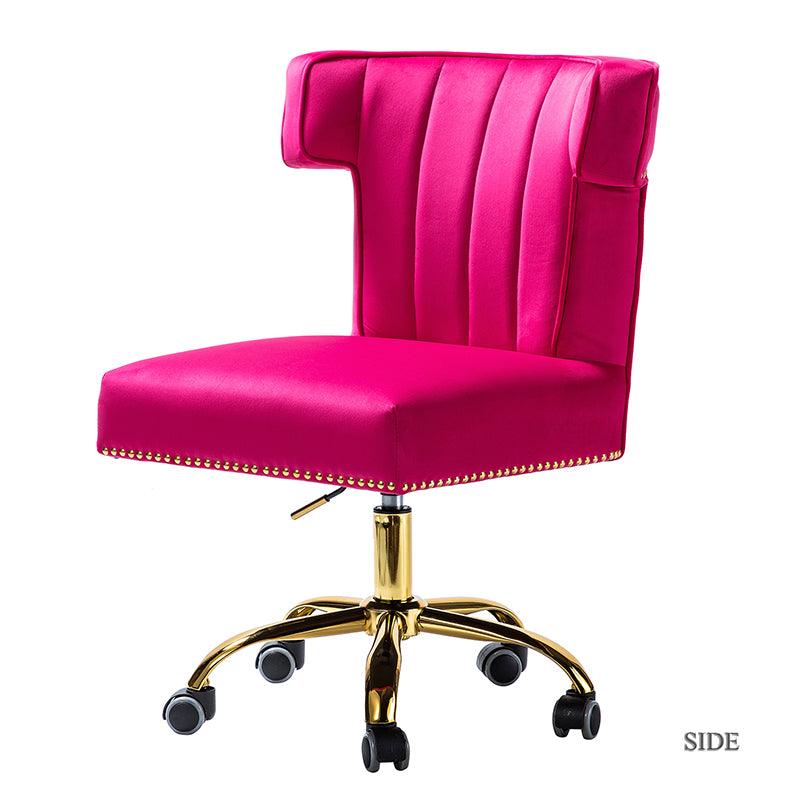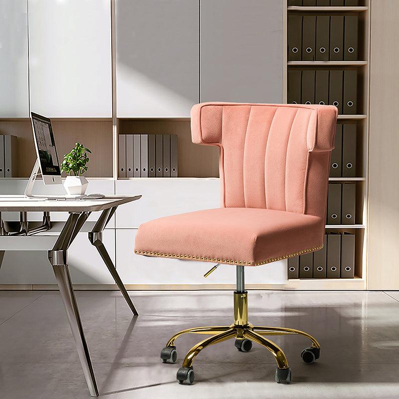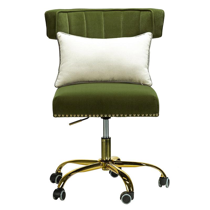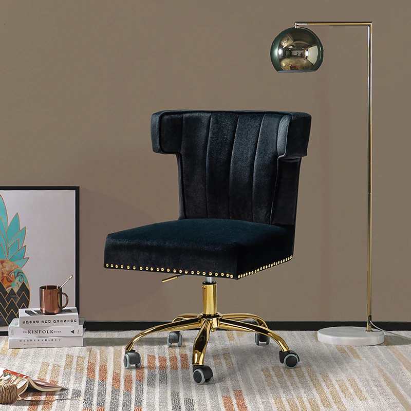 A well-edited workspace calls for a carefully-curated chair and this design takes the cake! The bright and colorful finish will blend with most color palettes. Its classic design along with wingback and gleaming nail-head trim makes this chair a must-have in your home office.