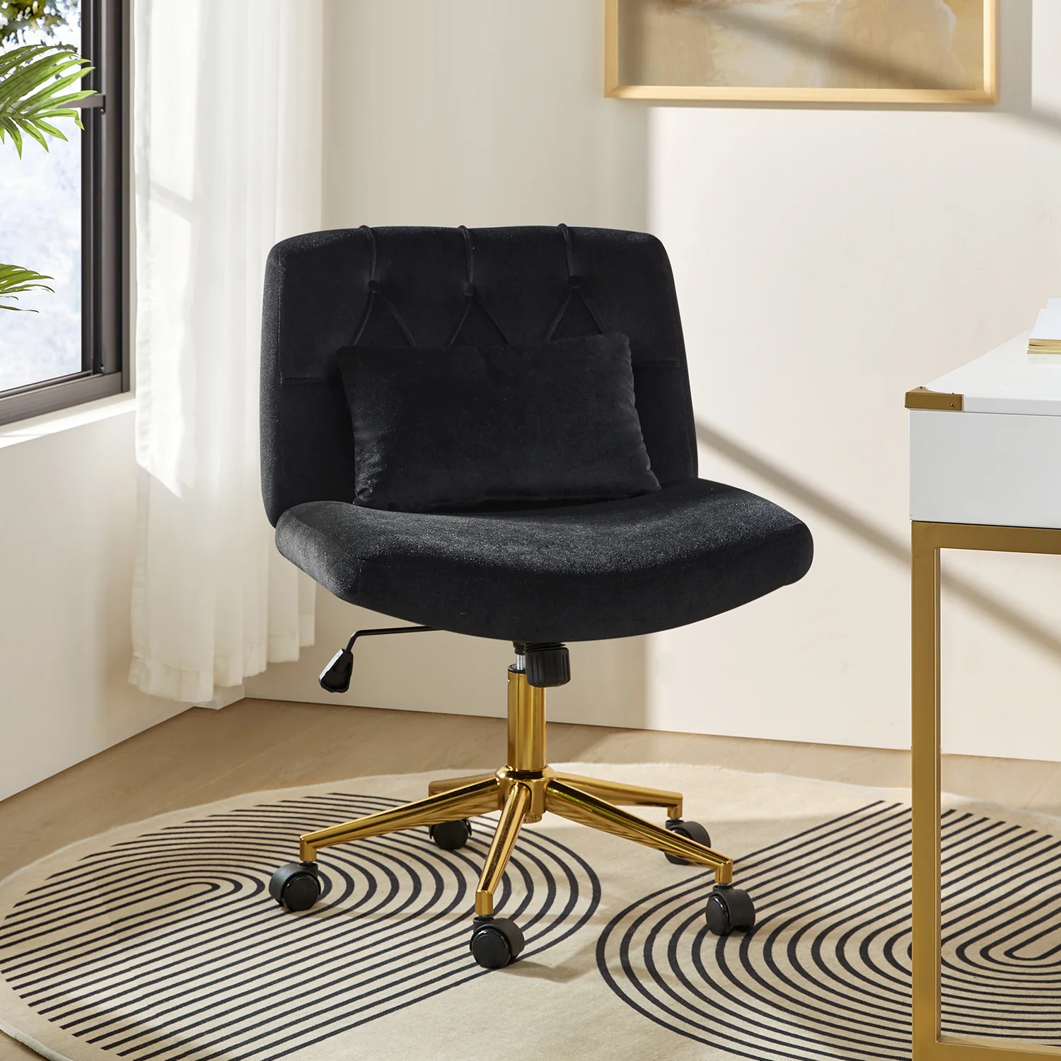 Presenting a sleek and versatile contemporary office chair suitable for home offices and modern workplaces. Wrapped in soft flannel upholstery, this chair exudes comfort and style. Its sturdy metal feet, equipped with smooth casters, ensure easy mobility around your workspace. Designed with your comfort in mind, it features a supportive pillow for your lower back, promoting proper posture during hours of work. The swivel seat allows for effortless movement, enhancing your productivity. With adjustable height, you can customize the chair to your preferred level. The SGS international certified stainless steel gas spring provides reliable support and durability. This task chair offers the option to rock gently, providing a relaxing break during intense work sessions. Upgrade your workspace with this modern task chair, combining functionality with design for a productive and comfortable work environment.