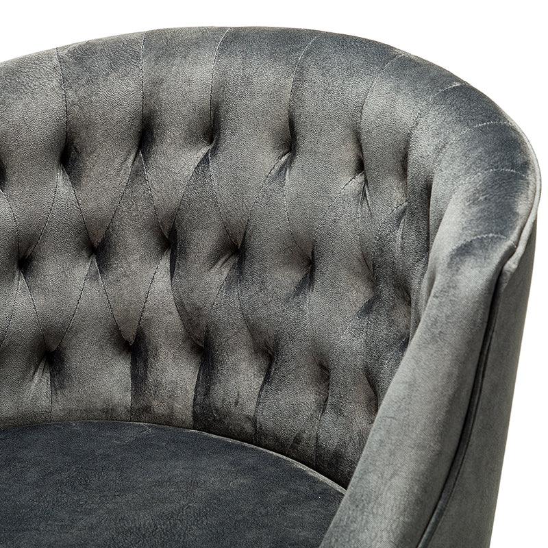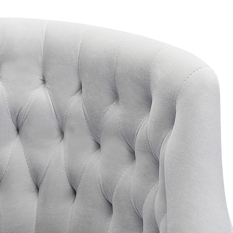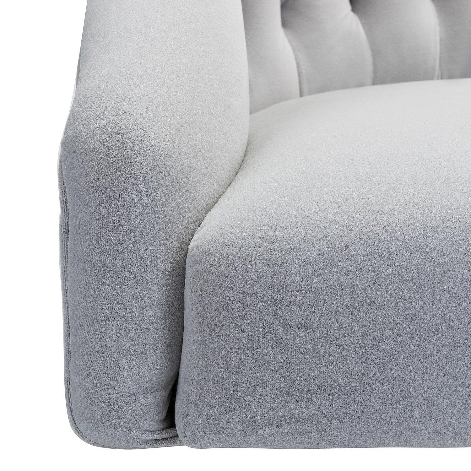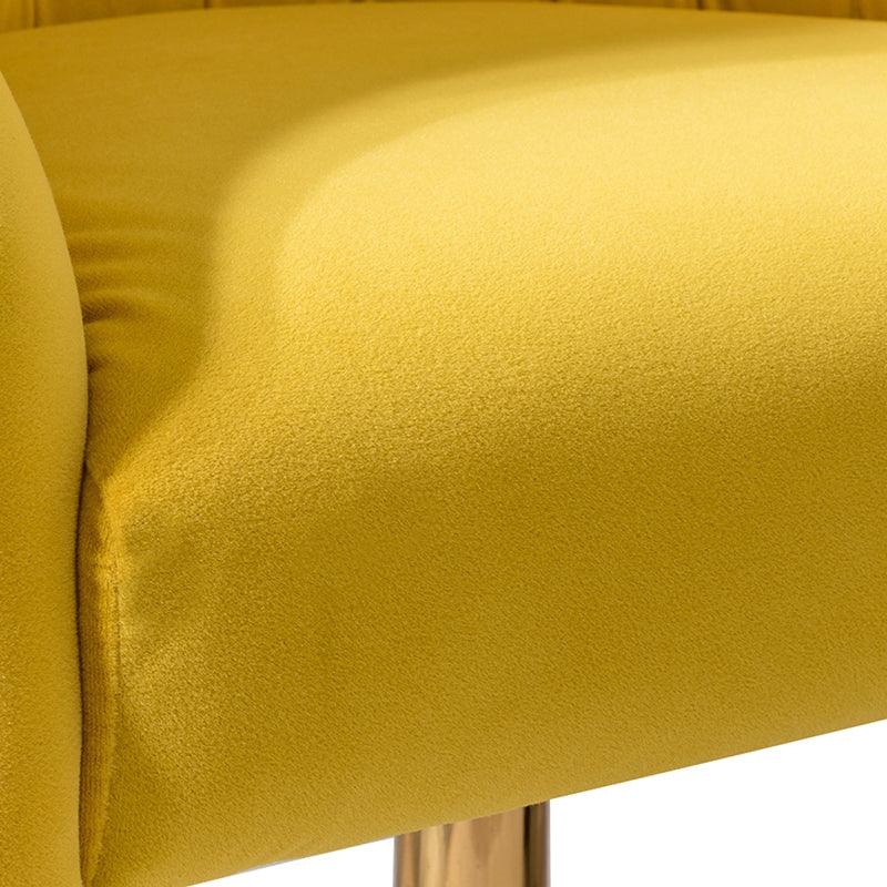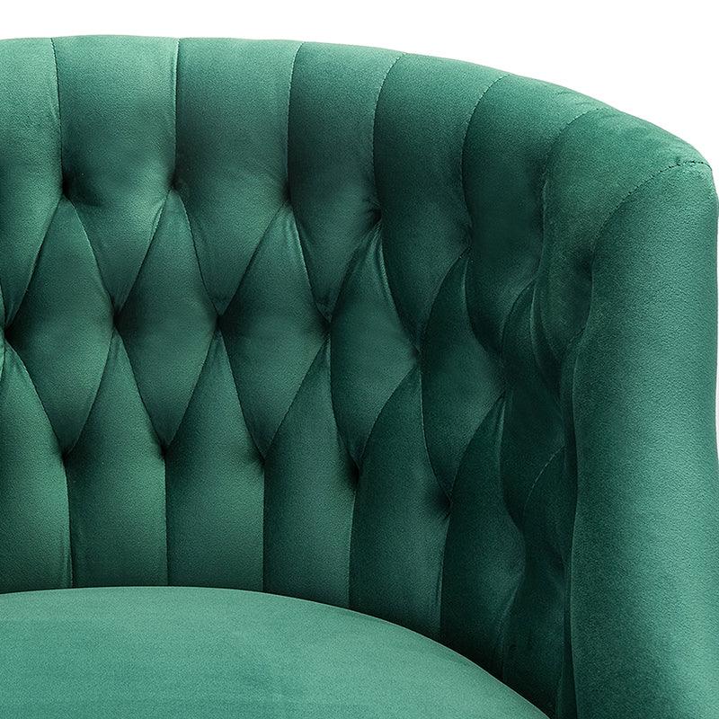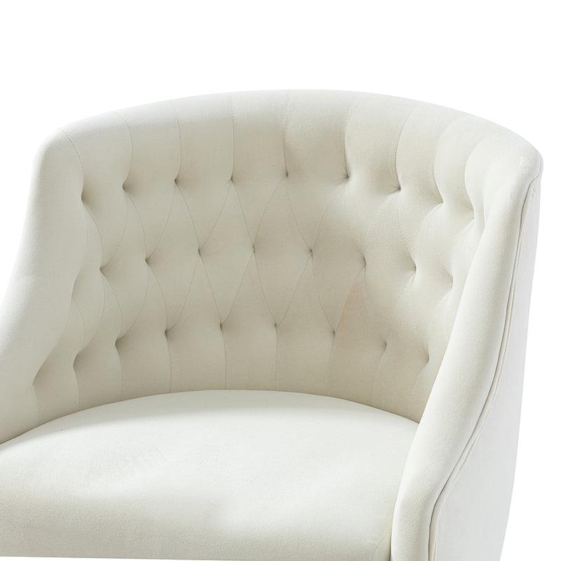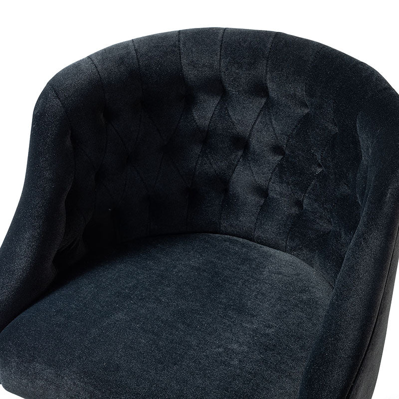 Start tab labels This isn't your standard office chair but you didn't want standard anyway, did you? It showcases a modified wingback design with a rounded back and sloped, recessed arms for an elegant look. Button-tufted details dot the back for a touch of texture. This office chair is upholstered in velvet fabric with a solid hue that adds a glam, modern touch to your home office. Down below, it features gold-finish metal legs and five casters that allow smooth movement across your carpet or floor.