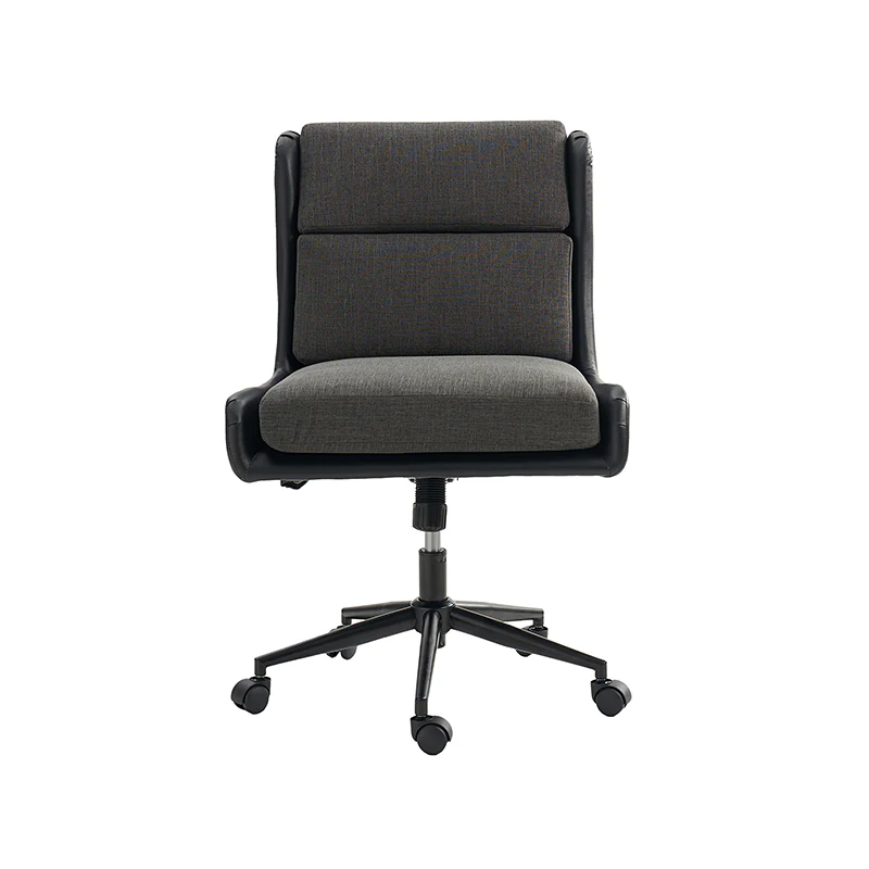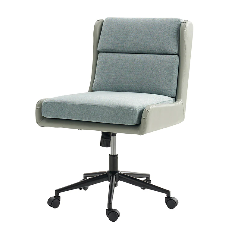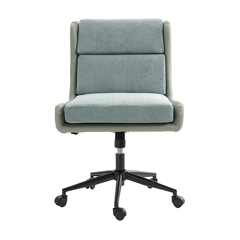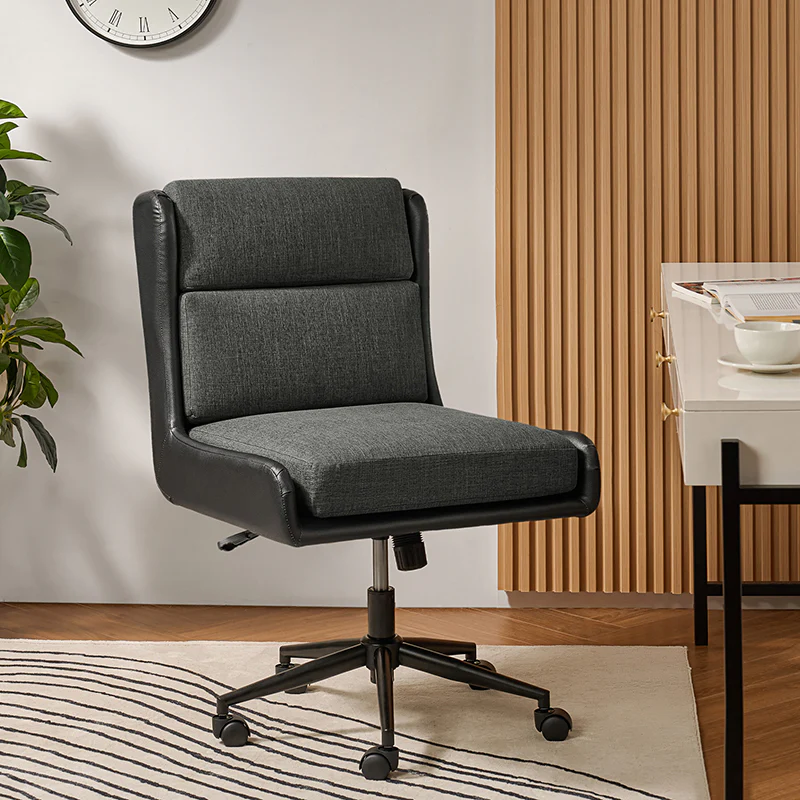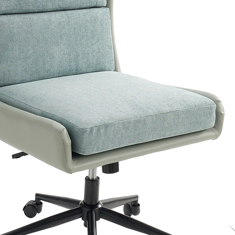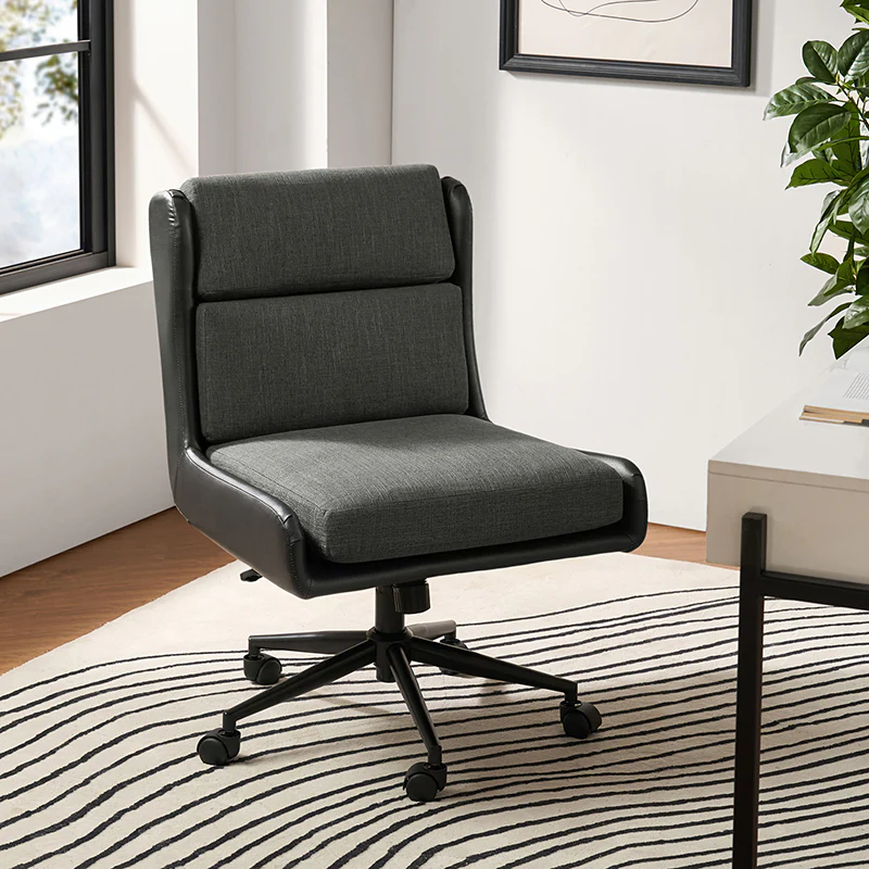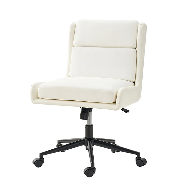 This modern home office chair blends sleek design with ergonomic functionality. Its SGS International Certified Stainless Steel Gas Spring guarantees durability and safety. The chair in camel color is made of vegan leather, and the chair in other colors is made of linen and vegan leather. Supported by sturdy metal legs and equipped with smooth casters, it offers mobility and stability. The swivel seat enhances flexibility, while the up-and-down adjustment feature caters to individual preferences. Additionally, its tilting capability allows for relaxed movement during long hours of work. With a removable line cushion upholstery, this chair effortlessly merges style with practicality, making it an ideal choice for any modern home office or workspace.