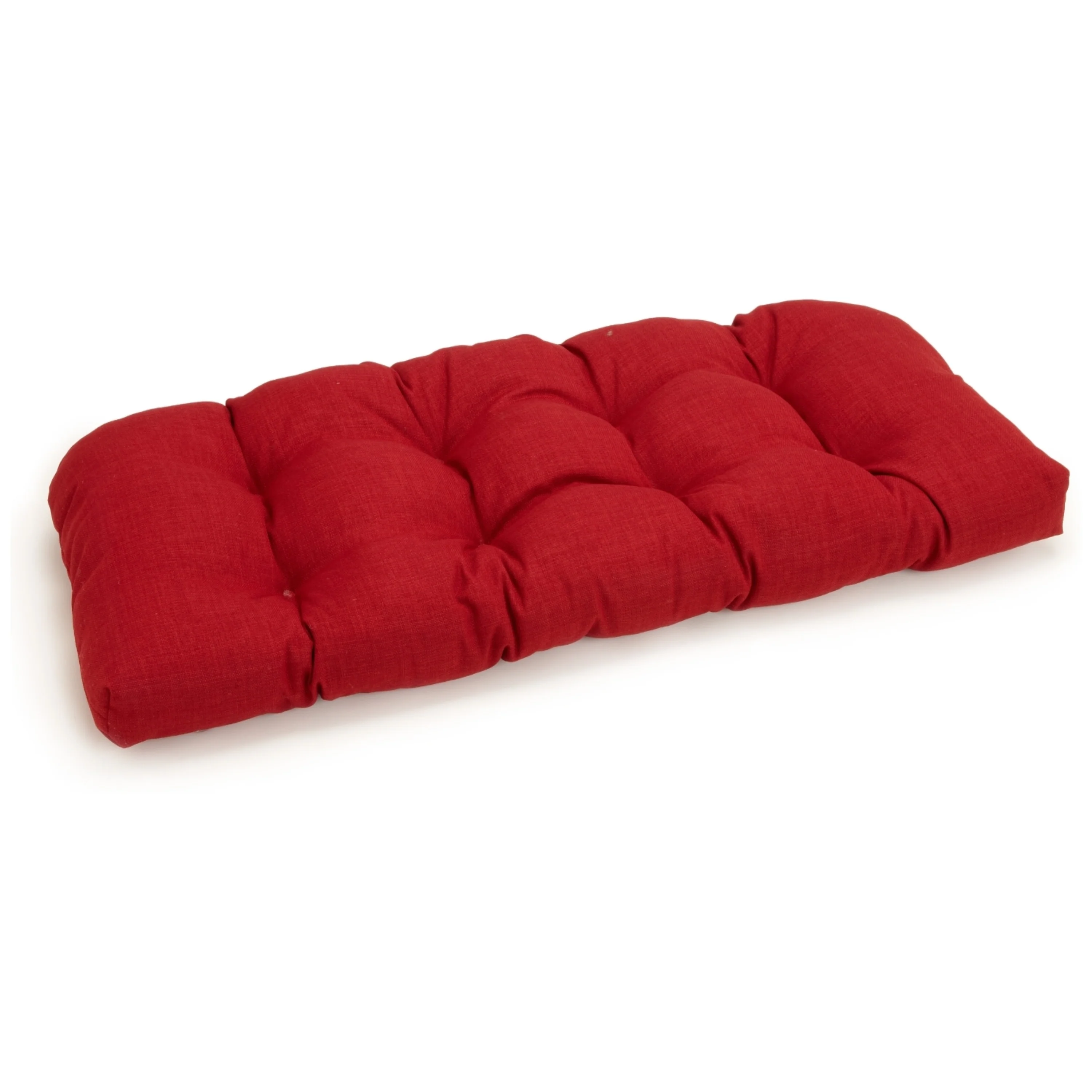 Revamp your outdoor bench with the Blazing Needles 42-inch U-shaped Outdoor Bench Cushion. Built with a sturdy, UV-, water-, and fade-resistant fabric cover, this cushion will endure the elements and remain in top-notch condition for a long time. The blown polyester fiber fill provides ample support and comfort, while its classic tufted design and U-shape make it a stylish addition to your outdoor furniture. Choose from multiple color options to match your decor or add some personality to your patio.