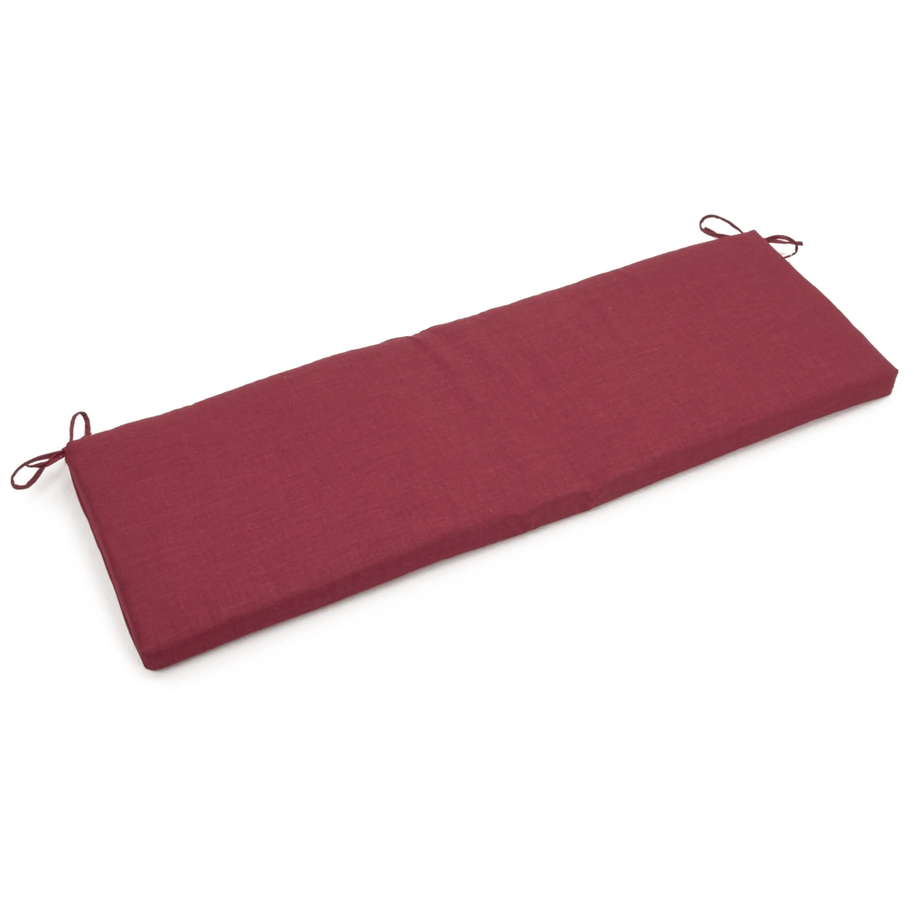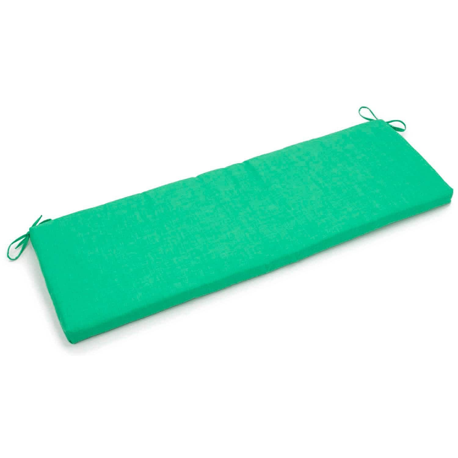 Add a touch of comfort and splash of color to your patio furnishings with this bench cushion. Crafted of durable, fade-resistant spun polyester outdoor fabric, this cushion includes a classic zipper-closed, bonded polyester padded design that gives this cushion ample cushioned loft. The attached fabric ties and your choice of three different cushion widths ensures a snug and appropriate fit to a wide variety of compatible outdoor benches. This cushion is available in a wide variety of solid colors ranging from the timeless to the trendy, allowing for a perfect stylistic fit with your existing patio furnishings.