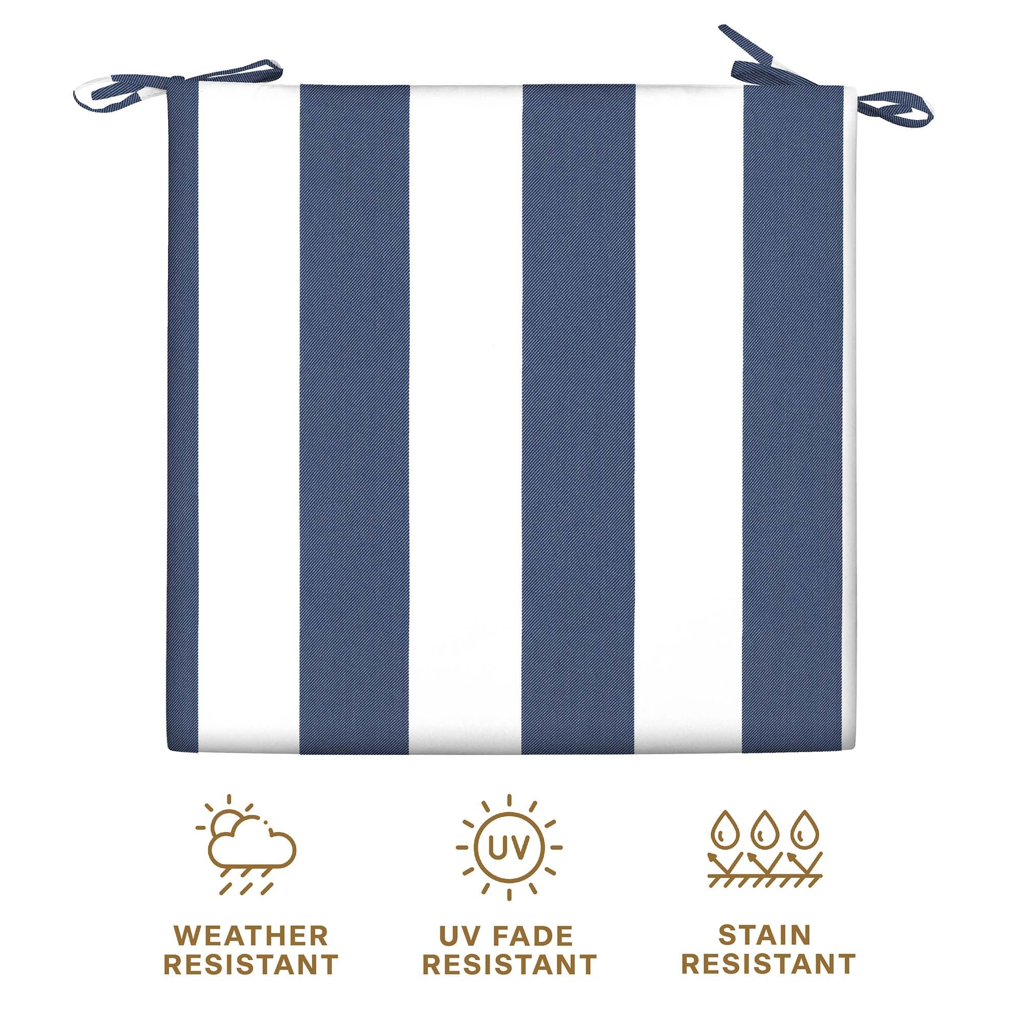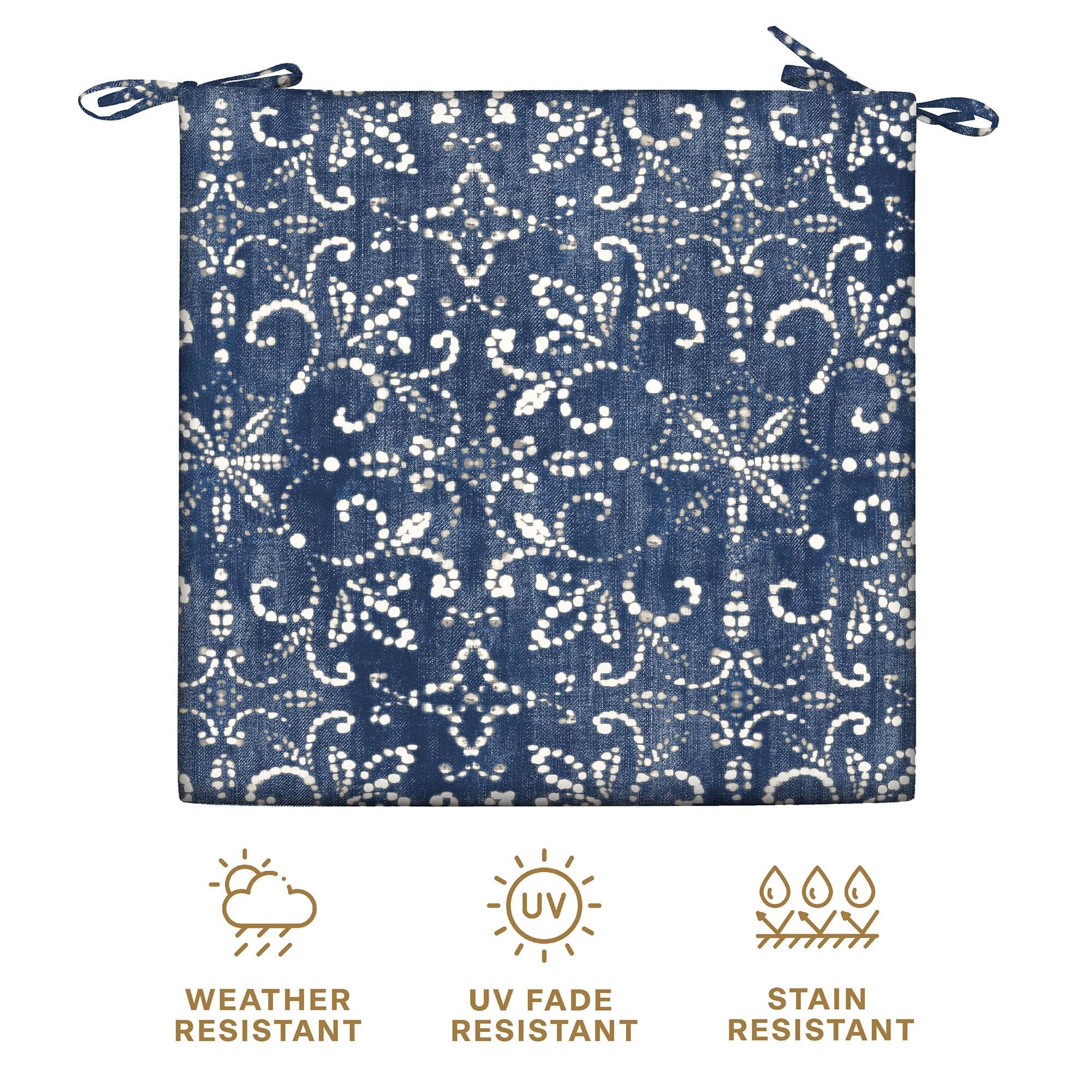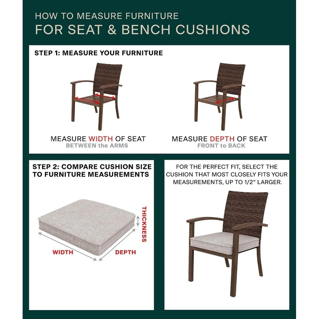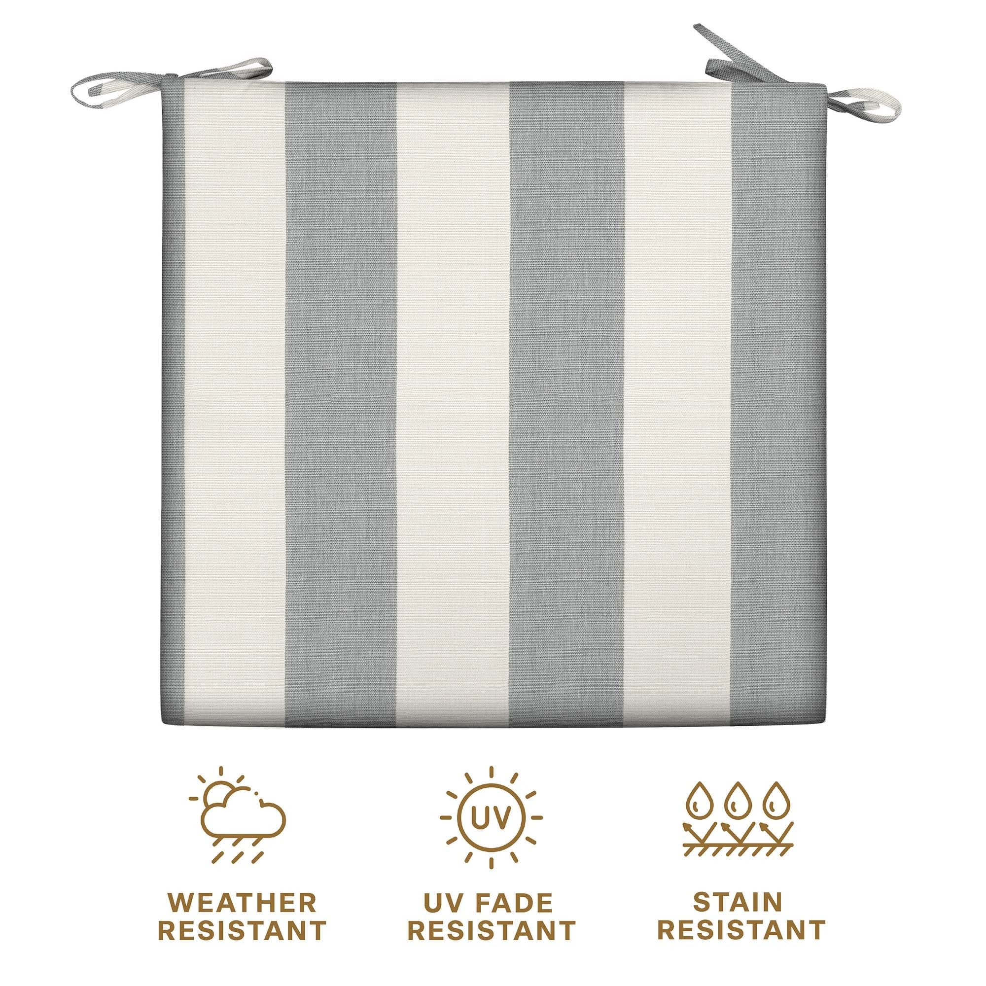 - Weather Resistant - Crafted with durable outdoor fabric, these premium dining seat cushions are UV-resistant and water repellant, so you never have to worry about fading, stains, or mildew. Our outdoor patio cushions can handle the elements while remaining bright for years.