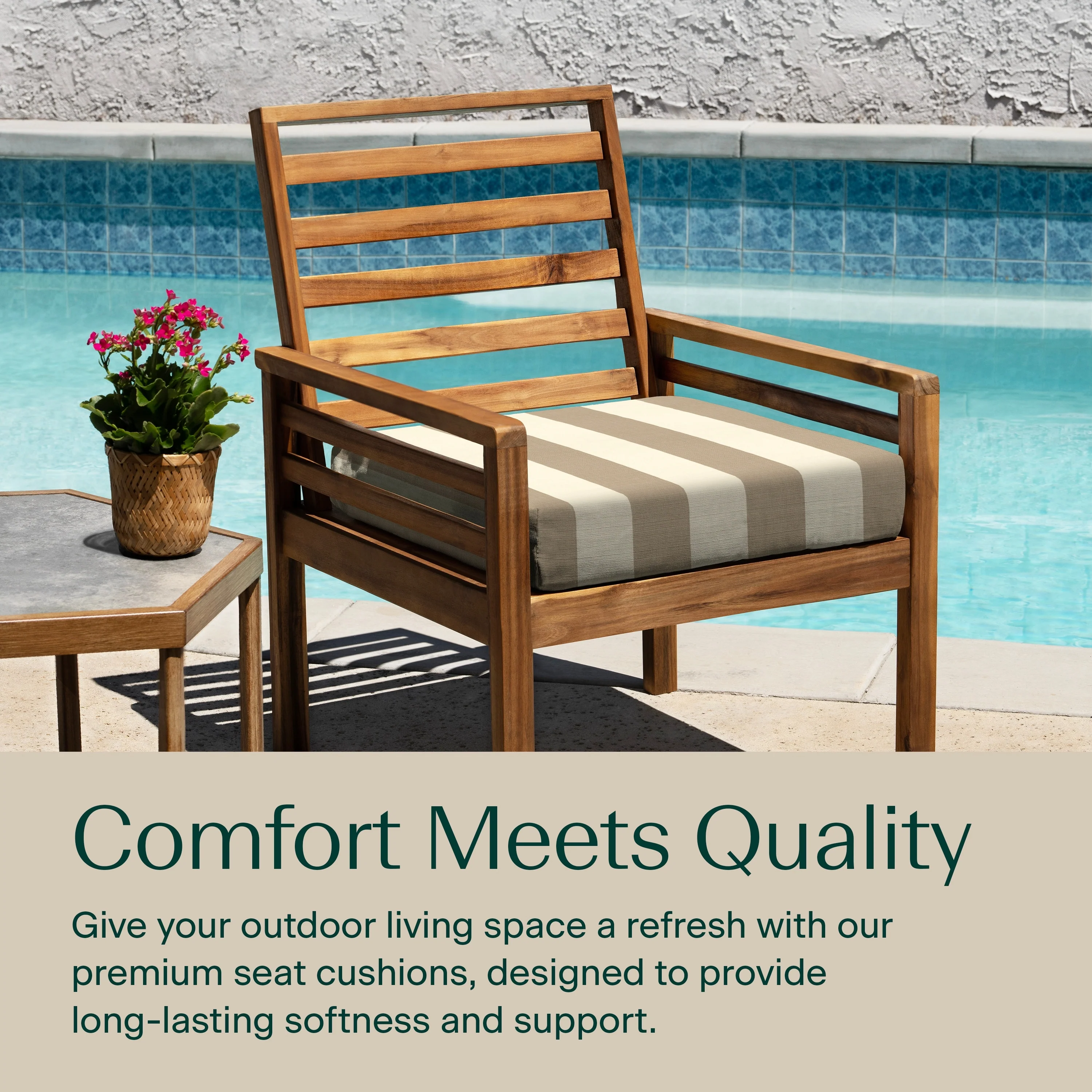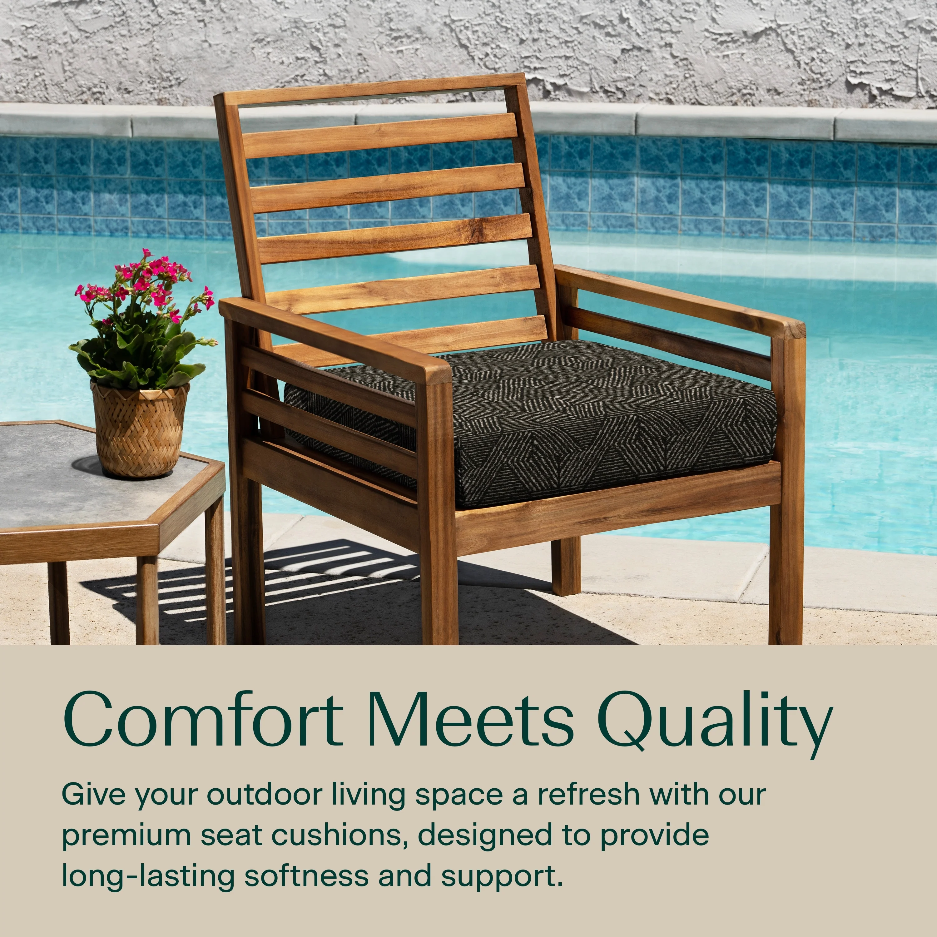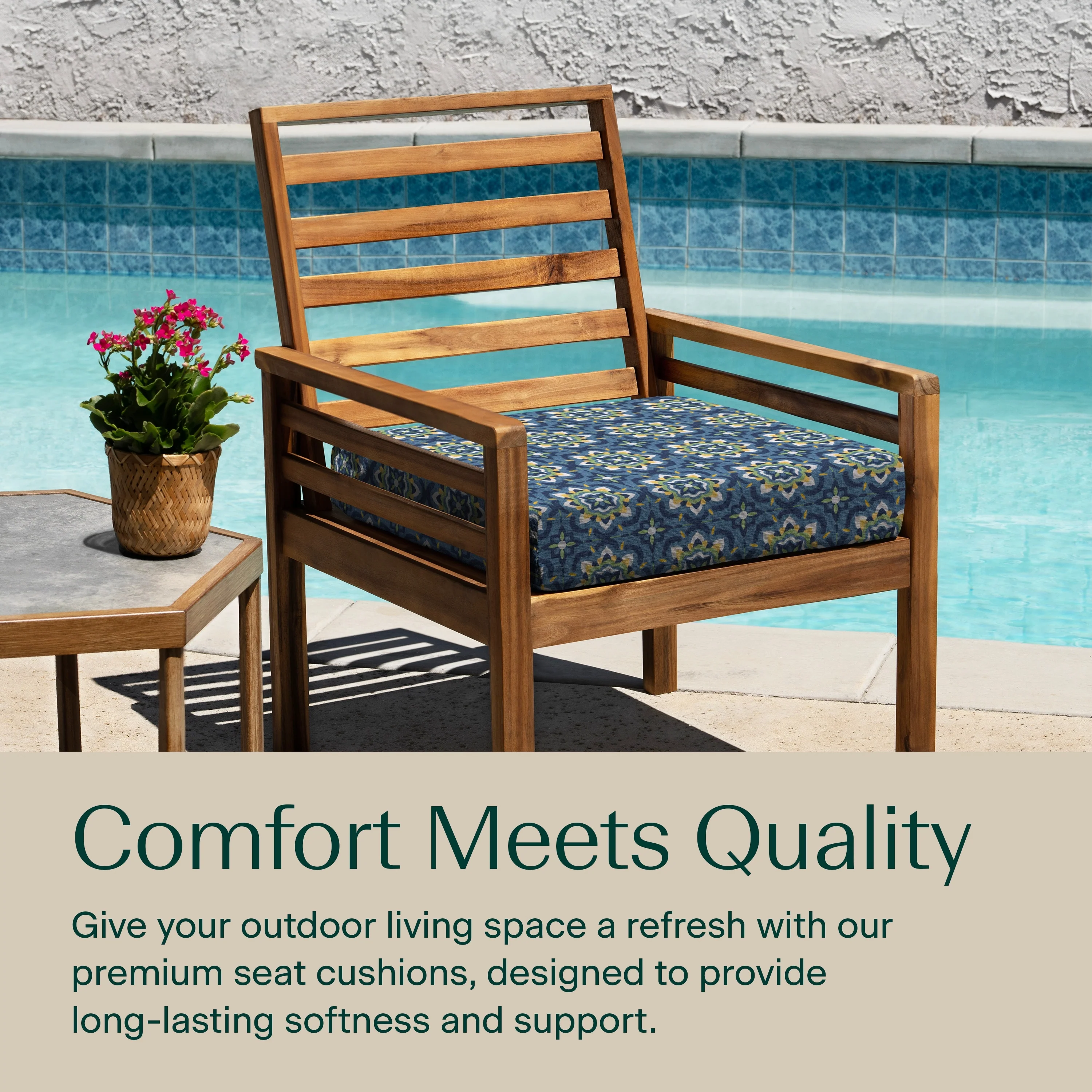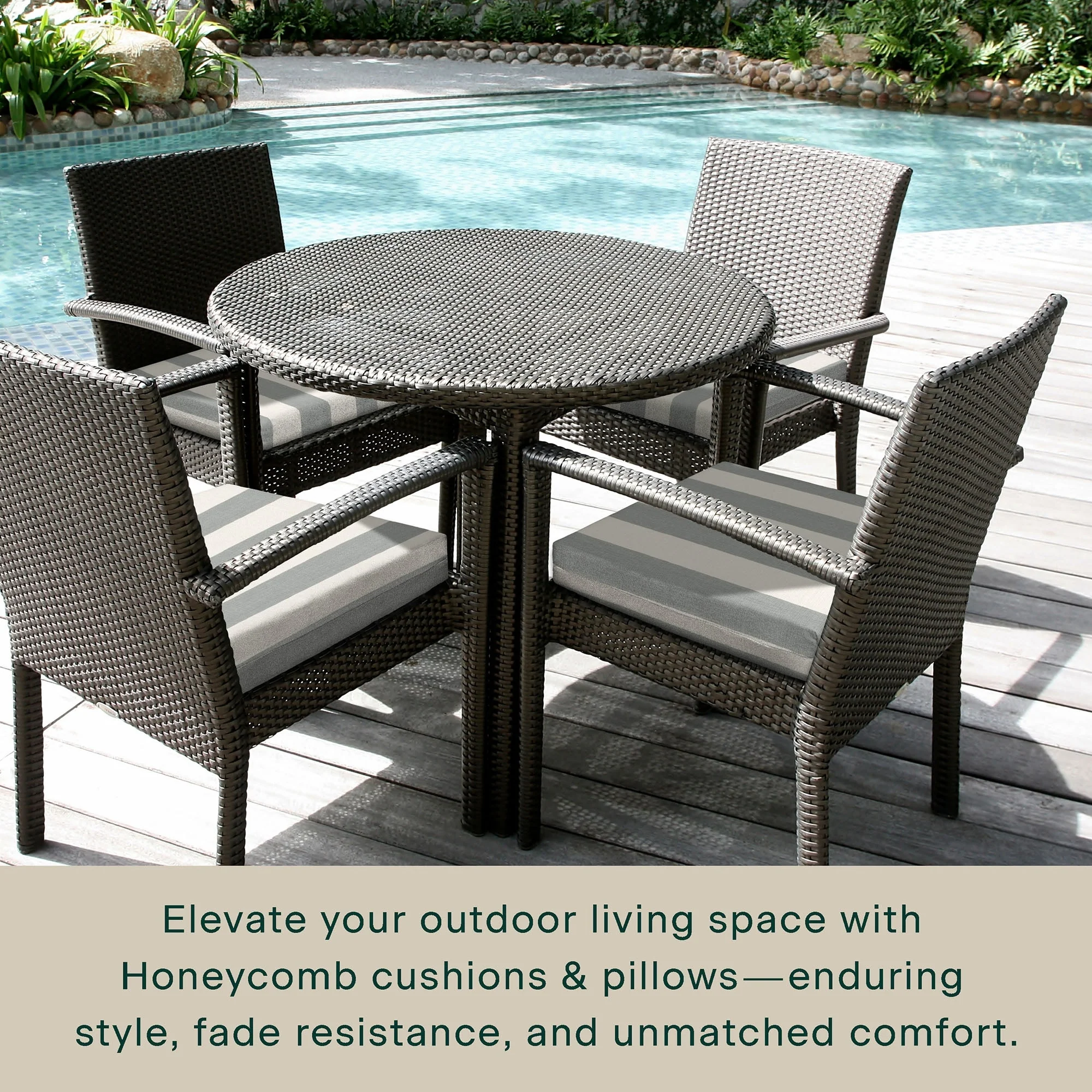 - Superior Look + Feel - Revive your outdoor furniture in comfort and style with our premium dining seat cushion from Honeycomb. With durable outdoor fabric and 4-inch-thick polyester fiber filling you are guaranteed long-lasting softness and support.