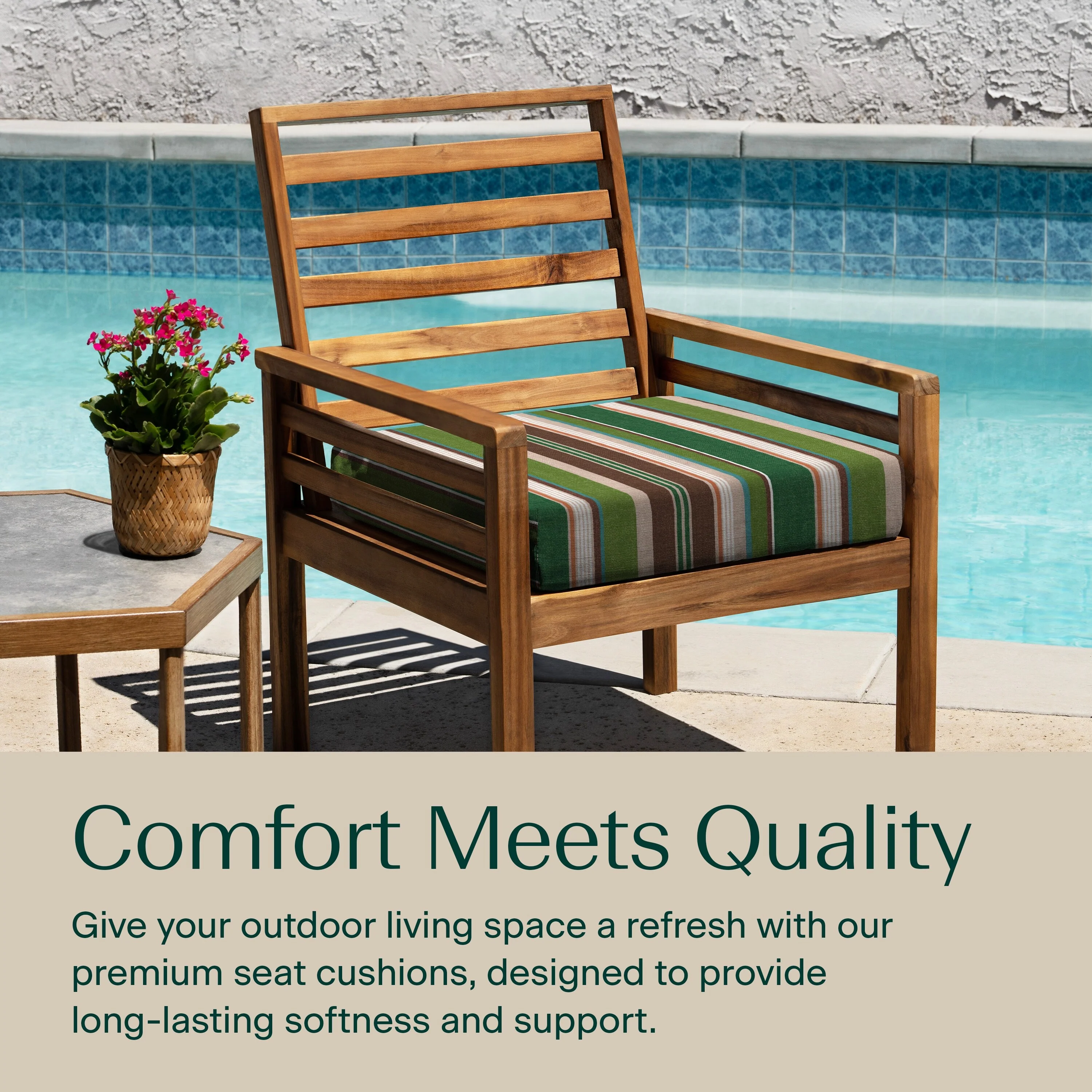 - Environmentally Friendly - Take a greener approach to your poolside, patio furniture, and home decor. Each 2-pack of premium dining seat cushions contains fiberfill made from 22 recycled plastic bottles. Our cushions are designed, filled and finished in the US.