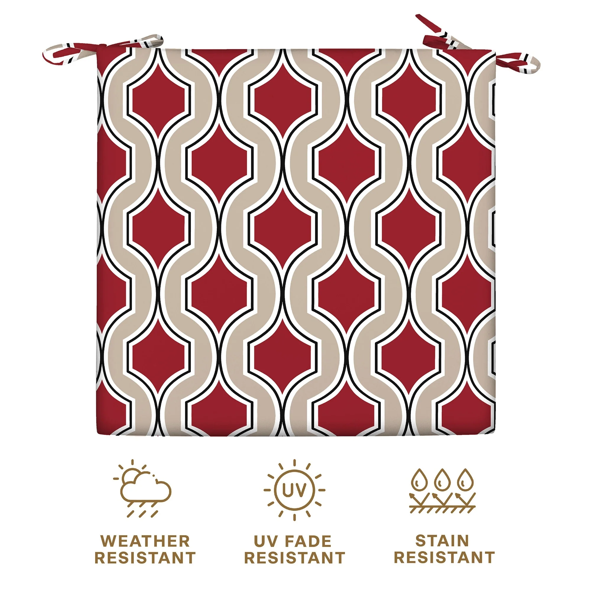- Universal Fit - Made to order with universal style to fit most indoor or outdoor chairs. Two corner ties secure cushion to chair and reversible design allows for use on either side. Cushions may vary up to a half-inch larger or smaller than listed.