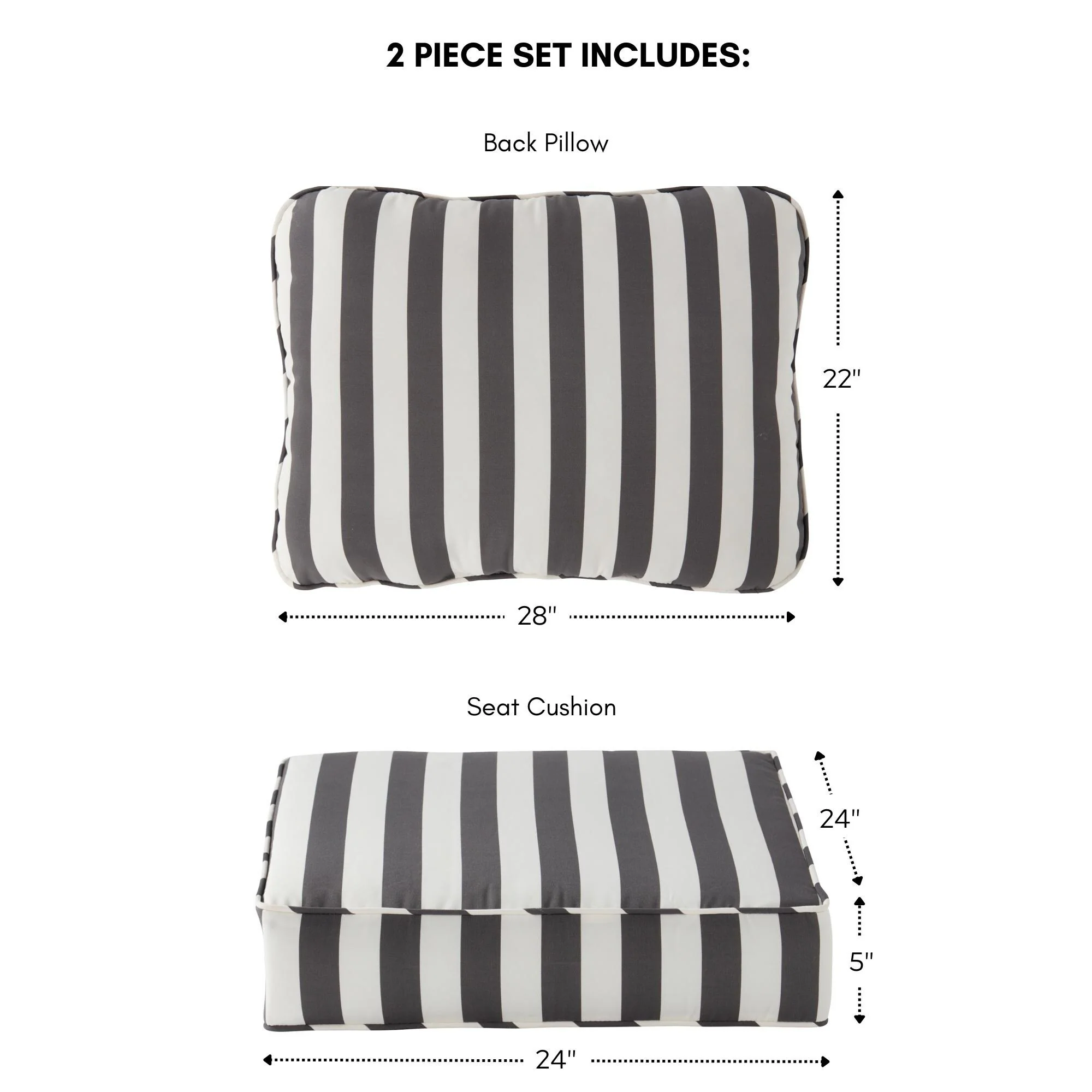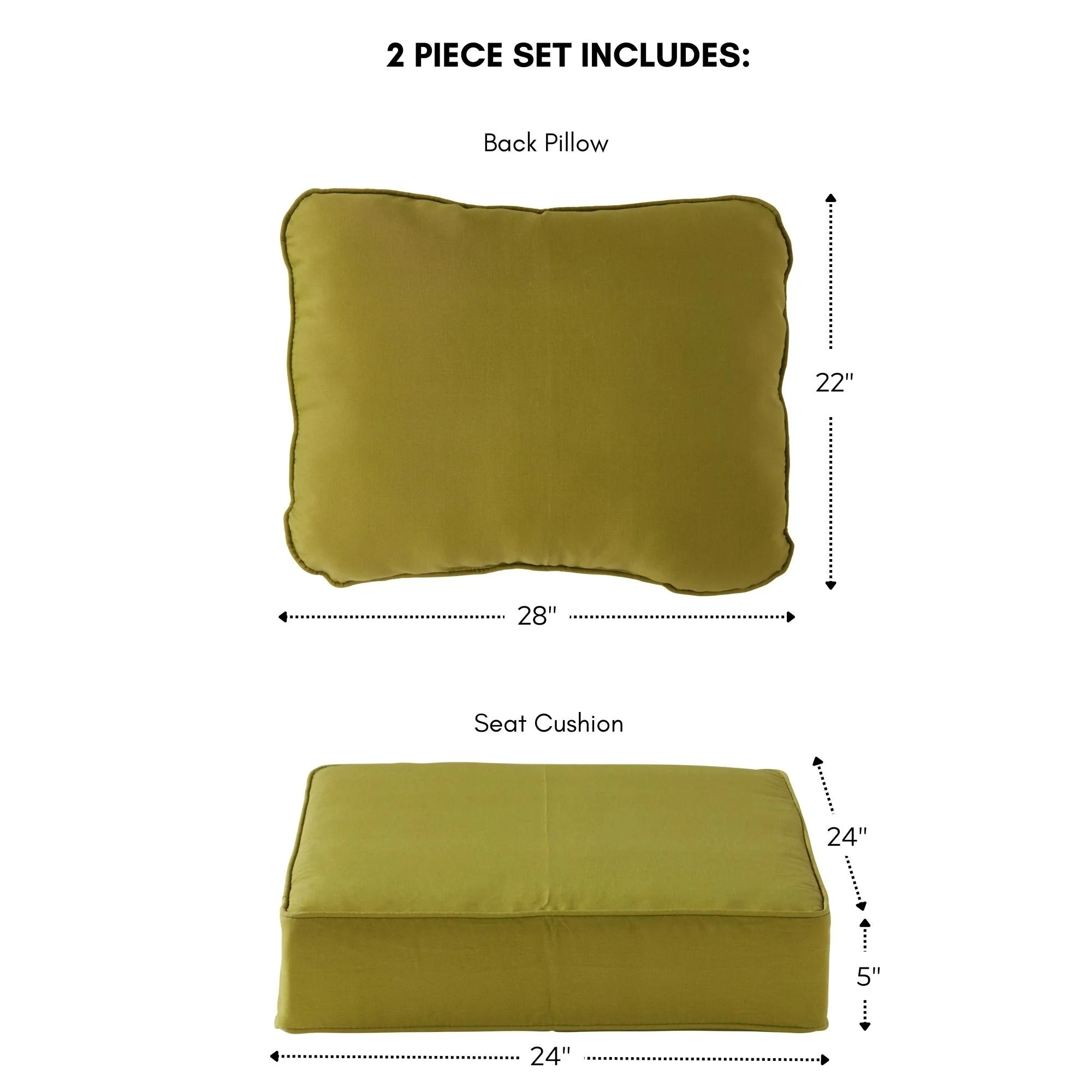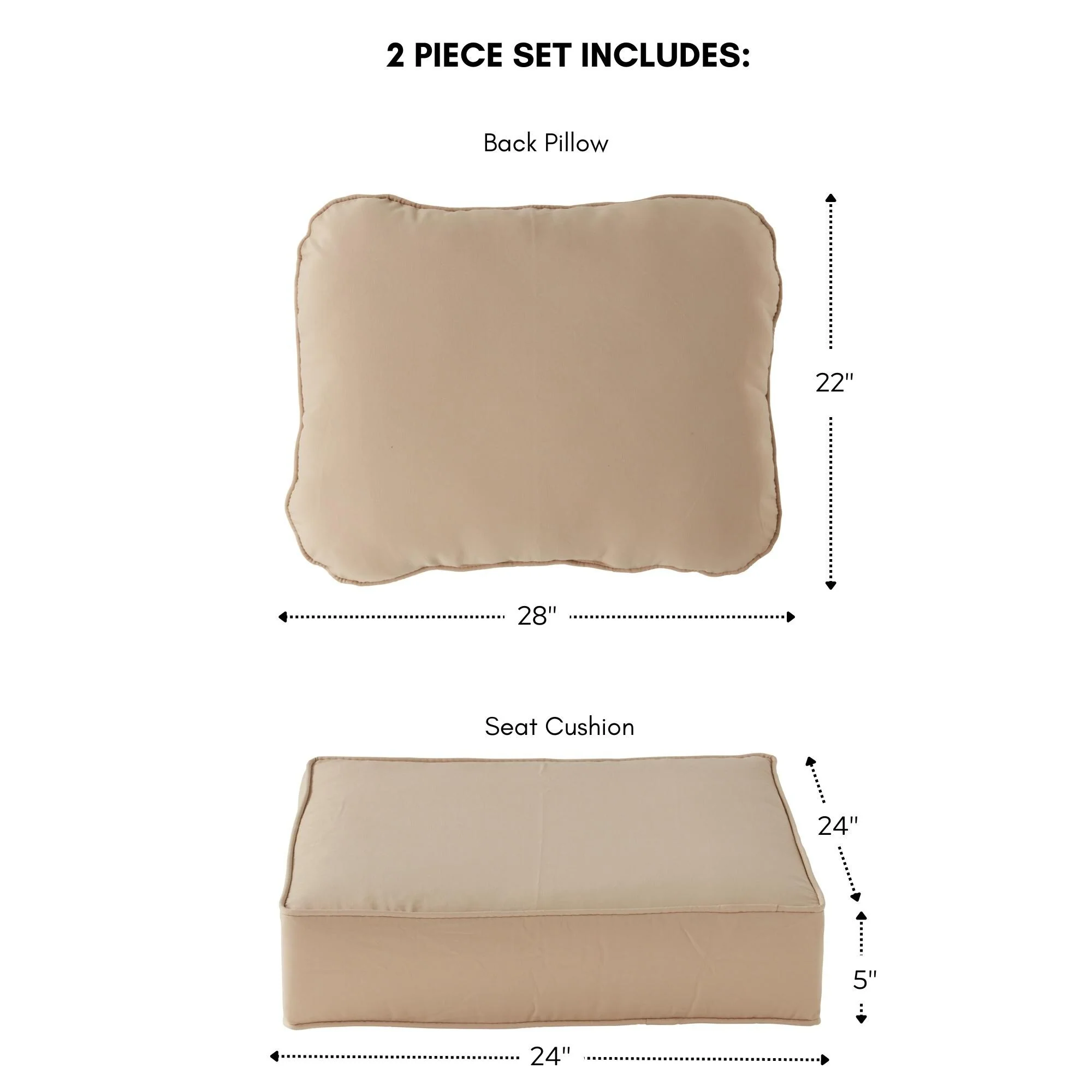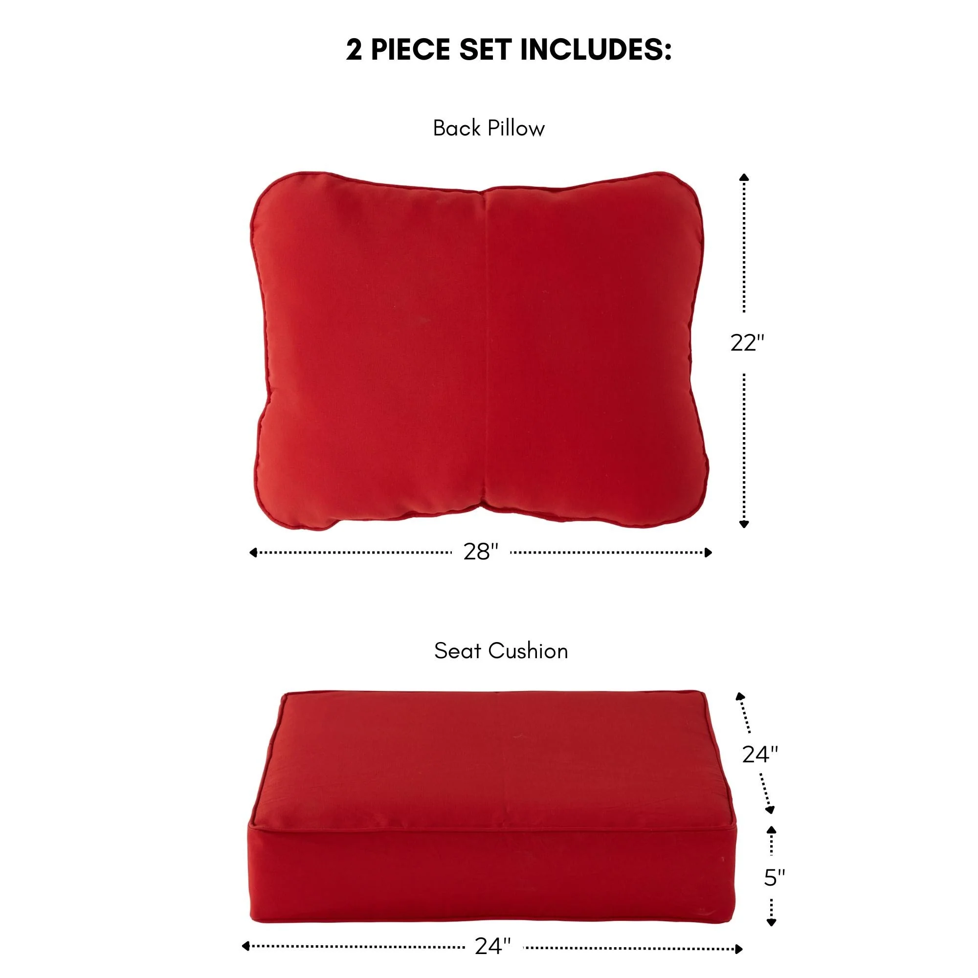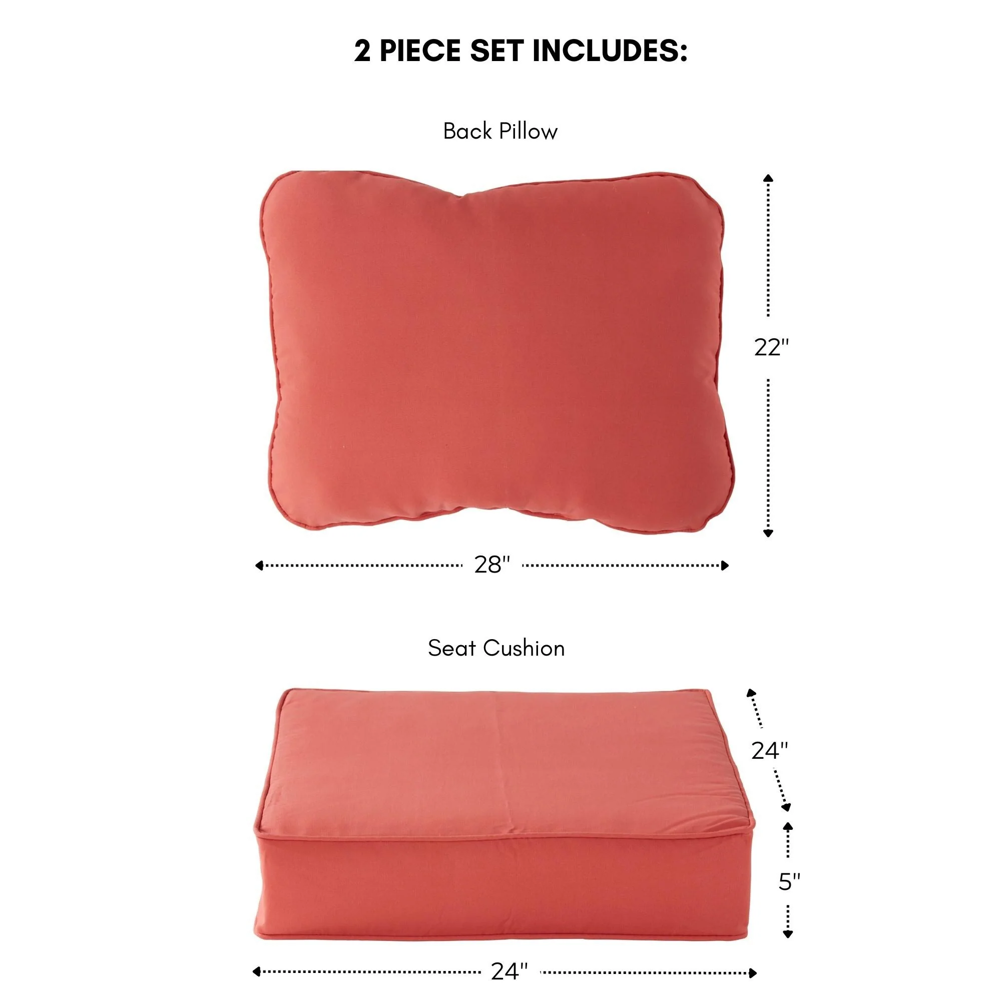 - Back Cushion: 22 inches high x 28 inches wide x 5 inches thick
