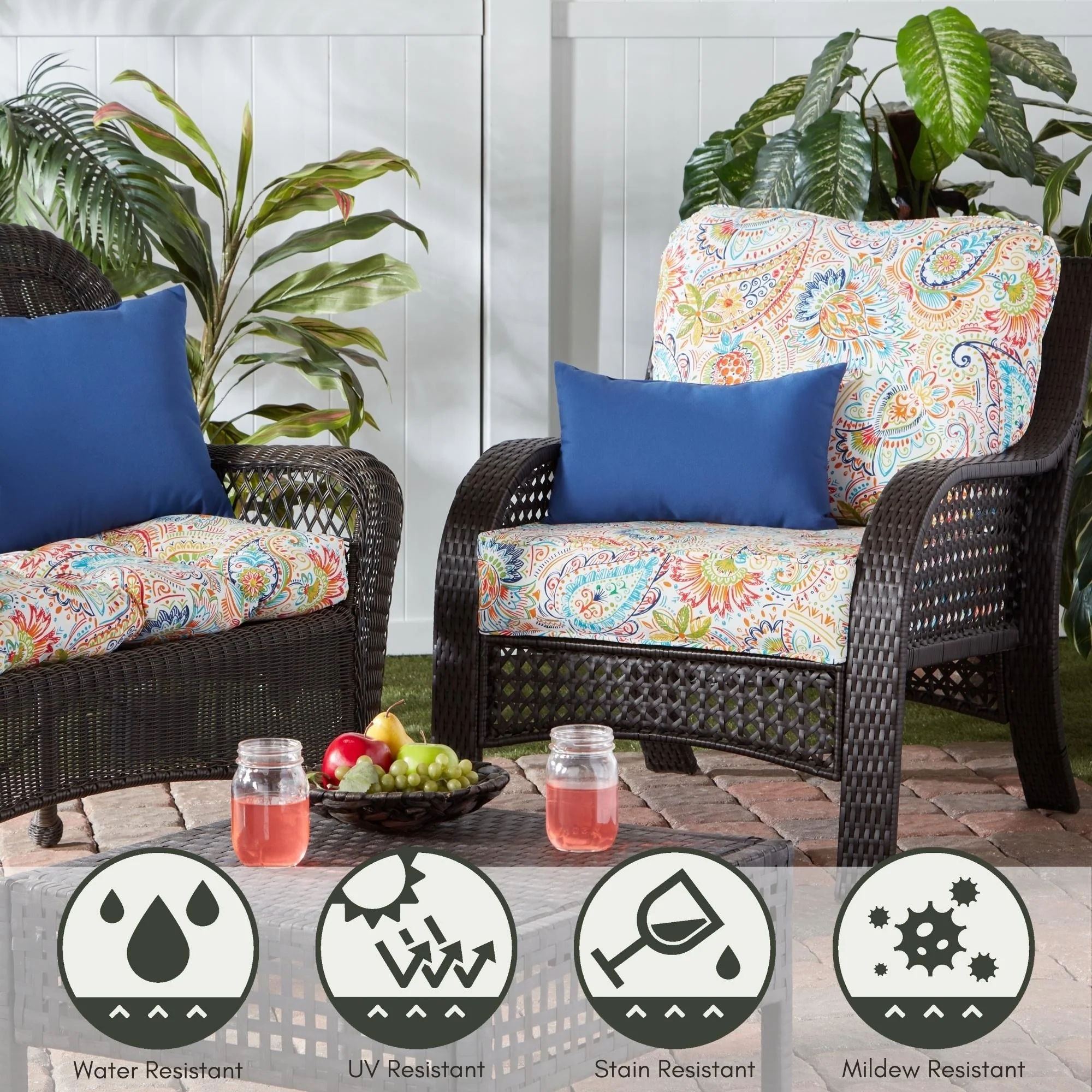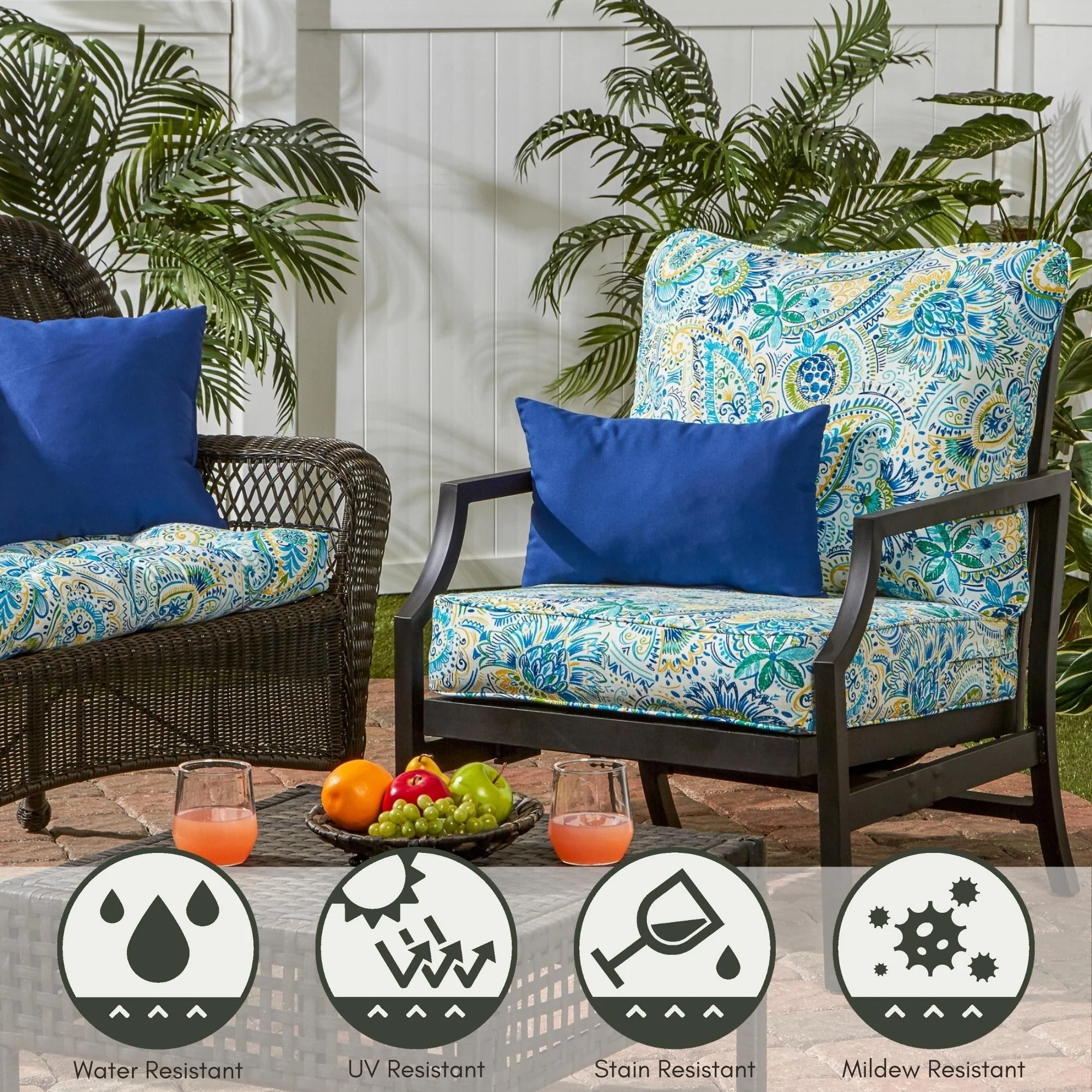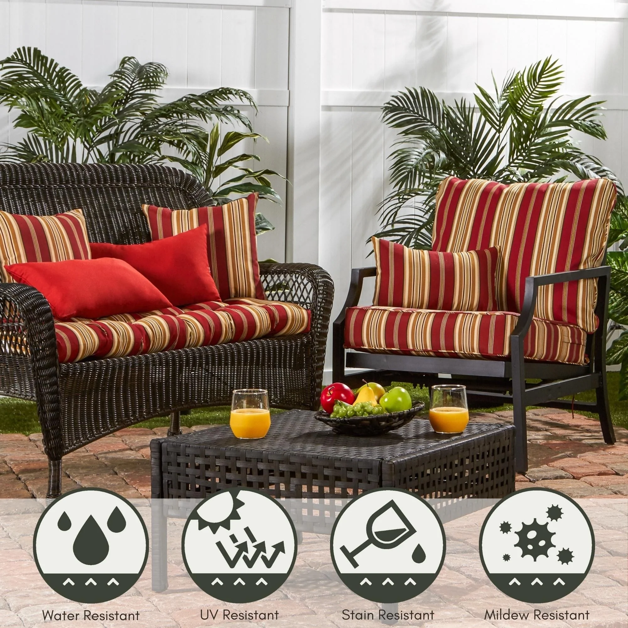 Elevate your outdoor decor and comfort with the Premium Deep Seat Outdoor Cushion Set by Greendale Home Fashions. Featuring water and UV-resistant patterns, these cushions are padded with eco-friendly recycled plastic bottle fill and covered in durable polyester. Upgrade your outdoor seating and enjoy eco-friendly support.