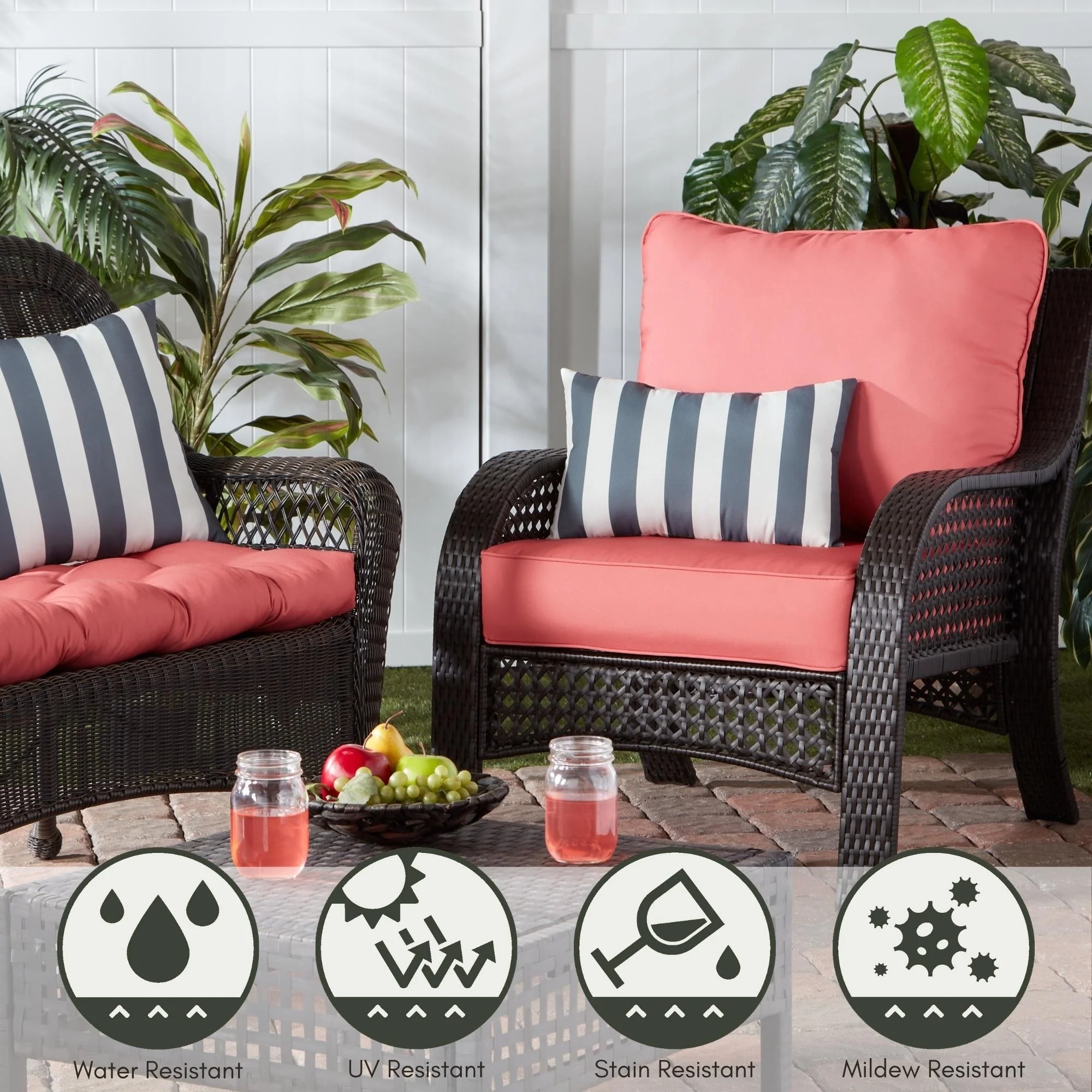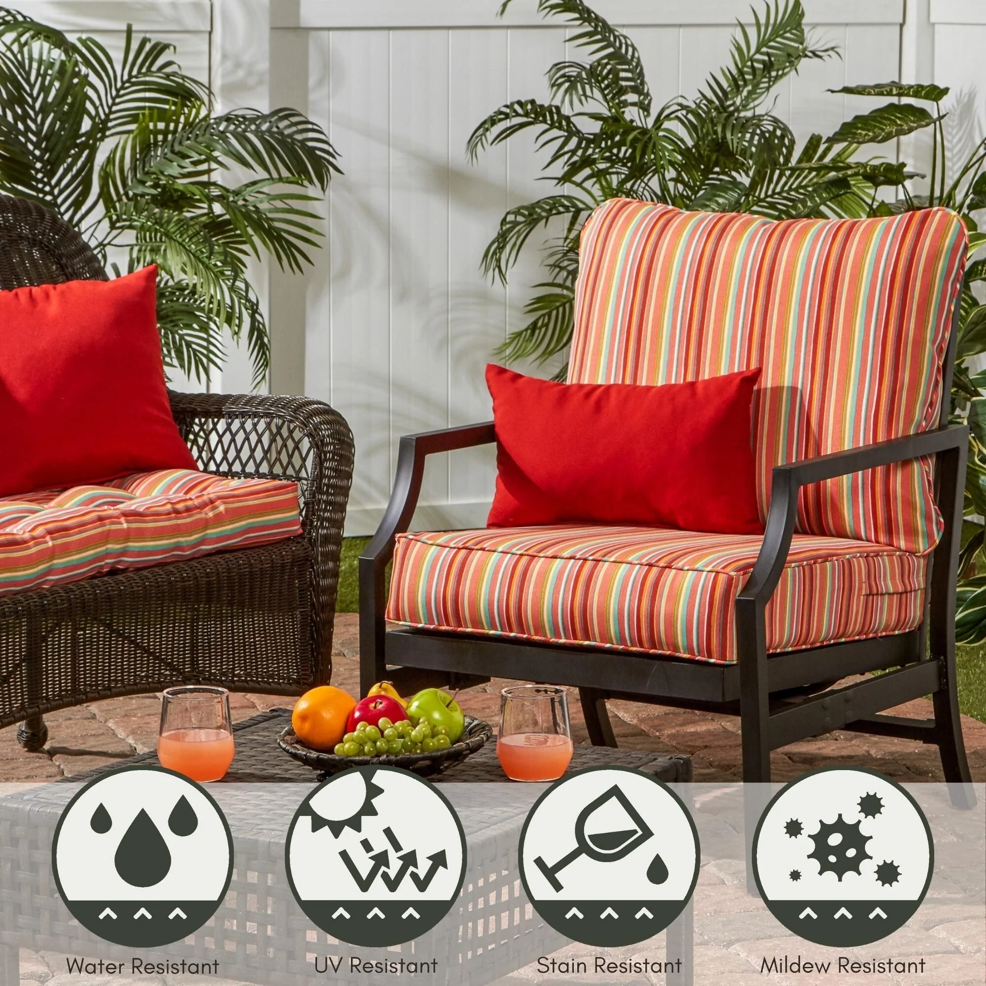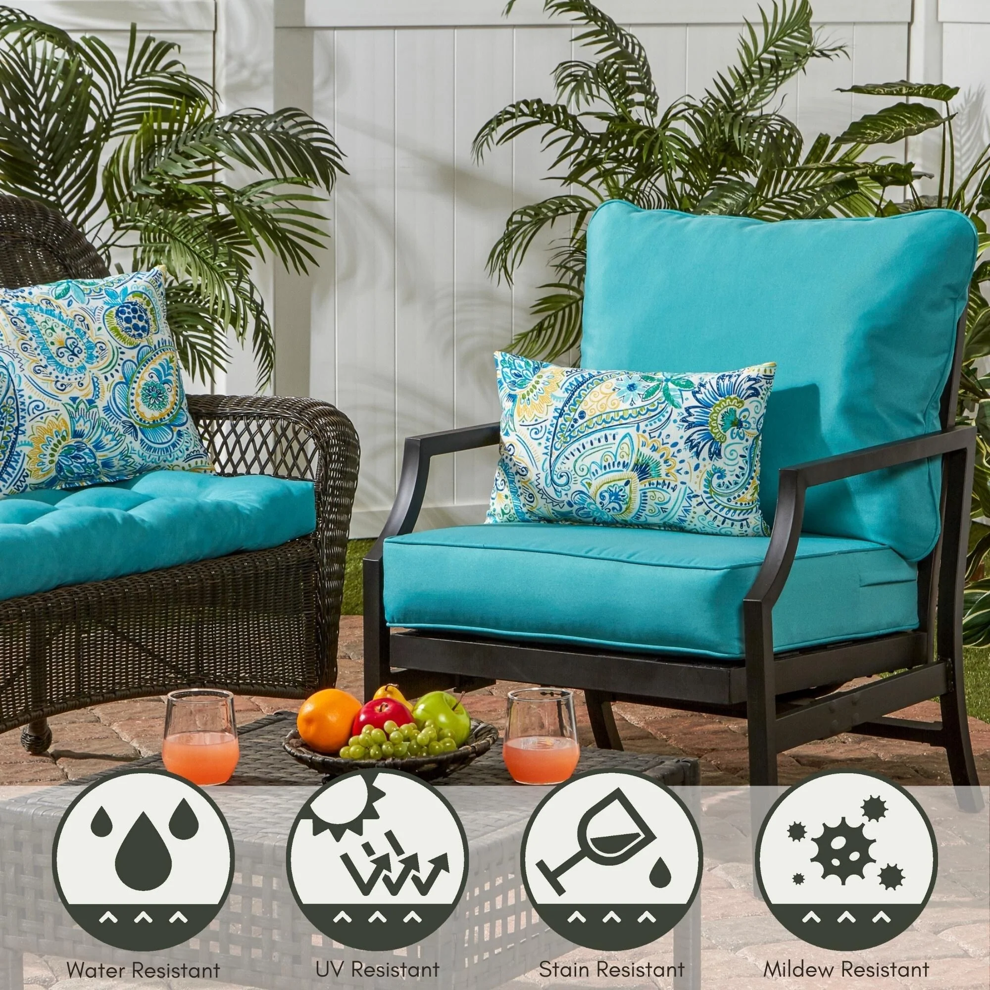Elevate your outdoor decor and comfort with the Premium Deep Seat Outdoor Cushion Set by Greendale Home Fashions. Featuring water and UV-resistant patterns, these cushions are padded with eco-friendly recycled plastic bottle fill and covered in durable polyester. Upgrade your outdoor seating and enjoy eco-friendly support.