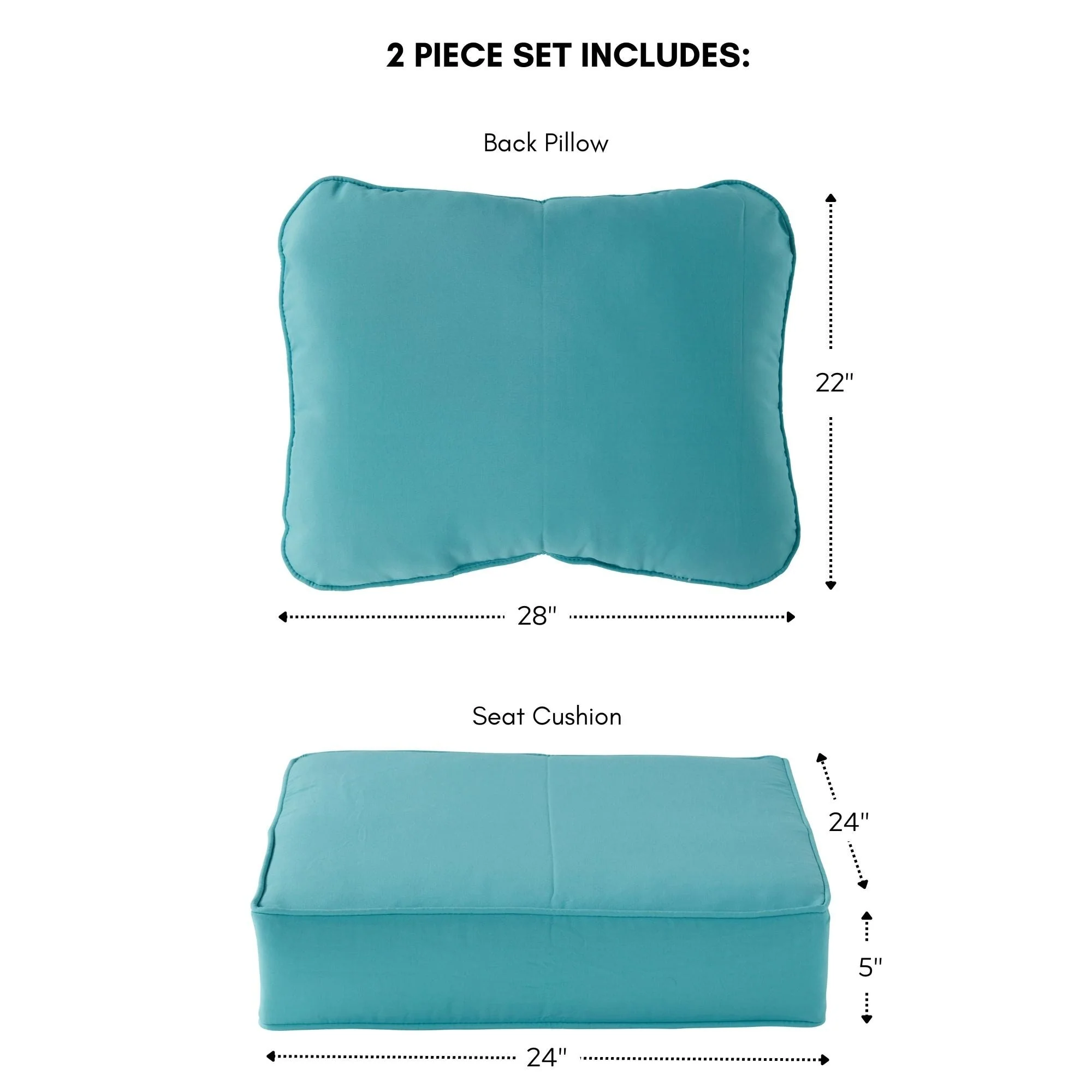 - Seat Cushion: 24 inches wide x 24 inches deep x 5 inches thick