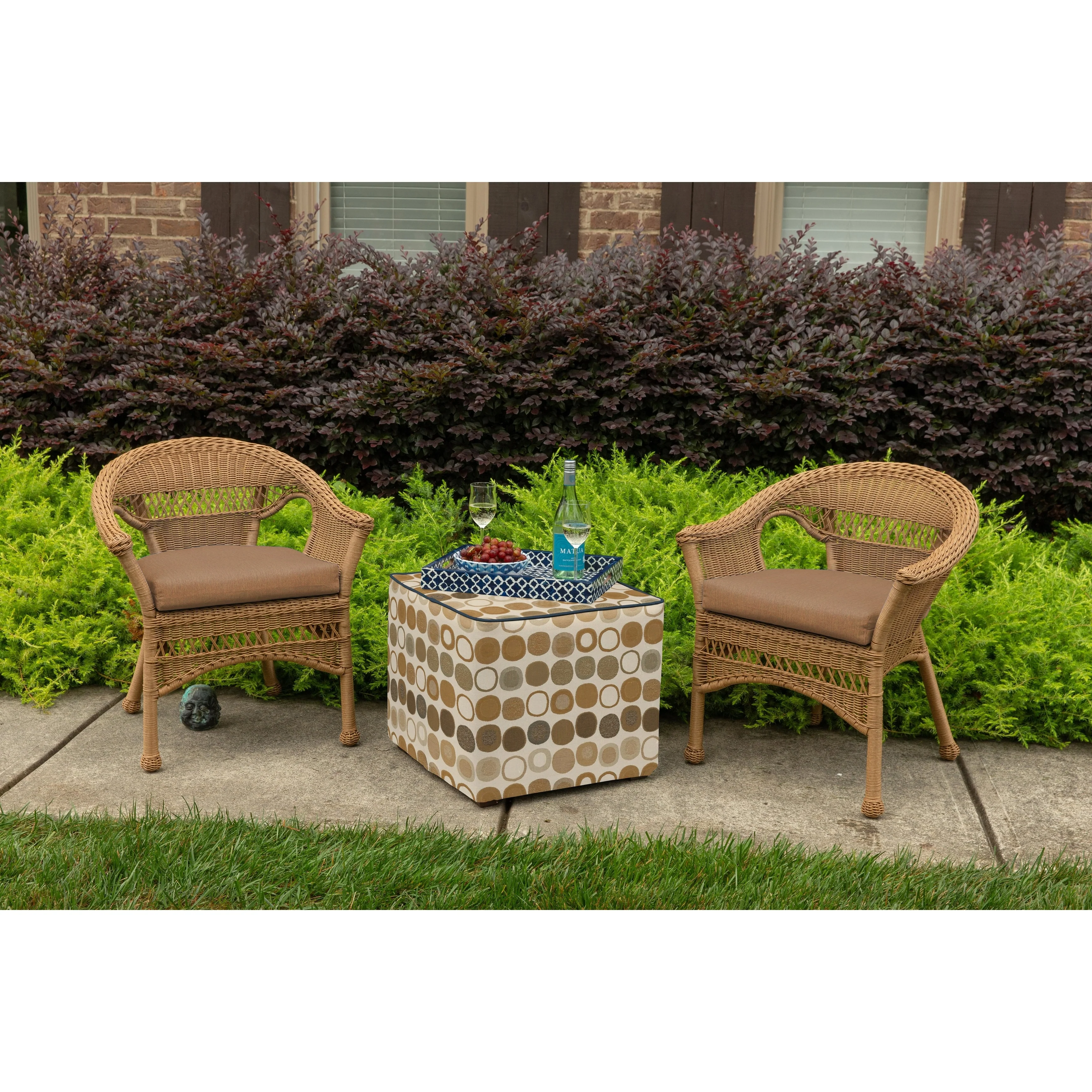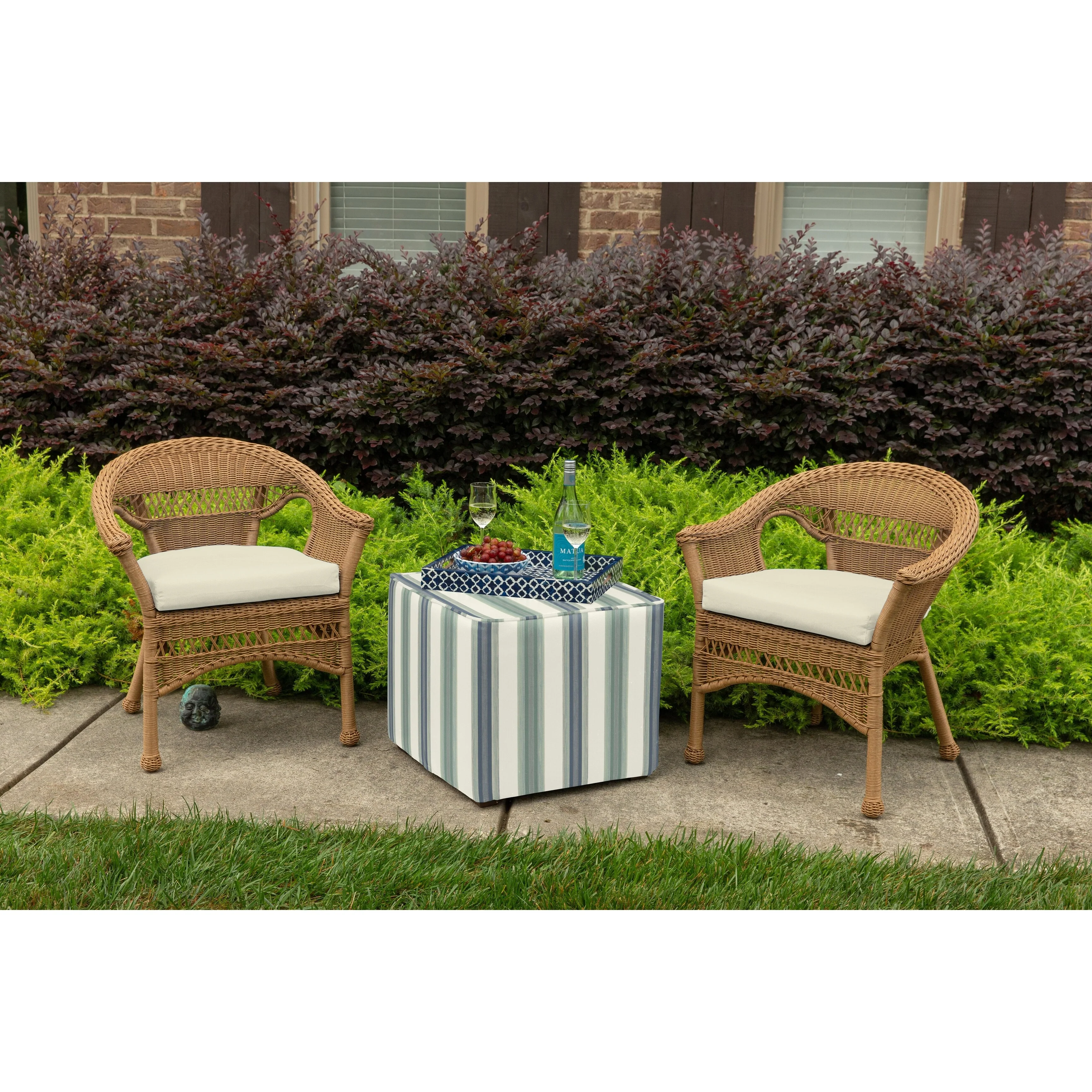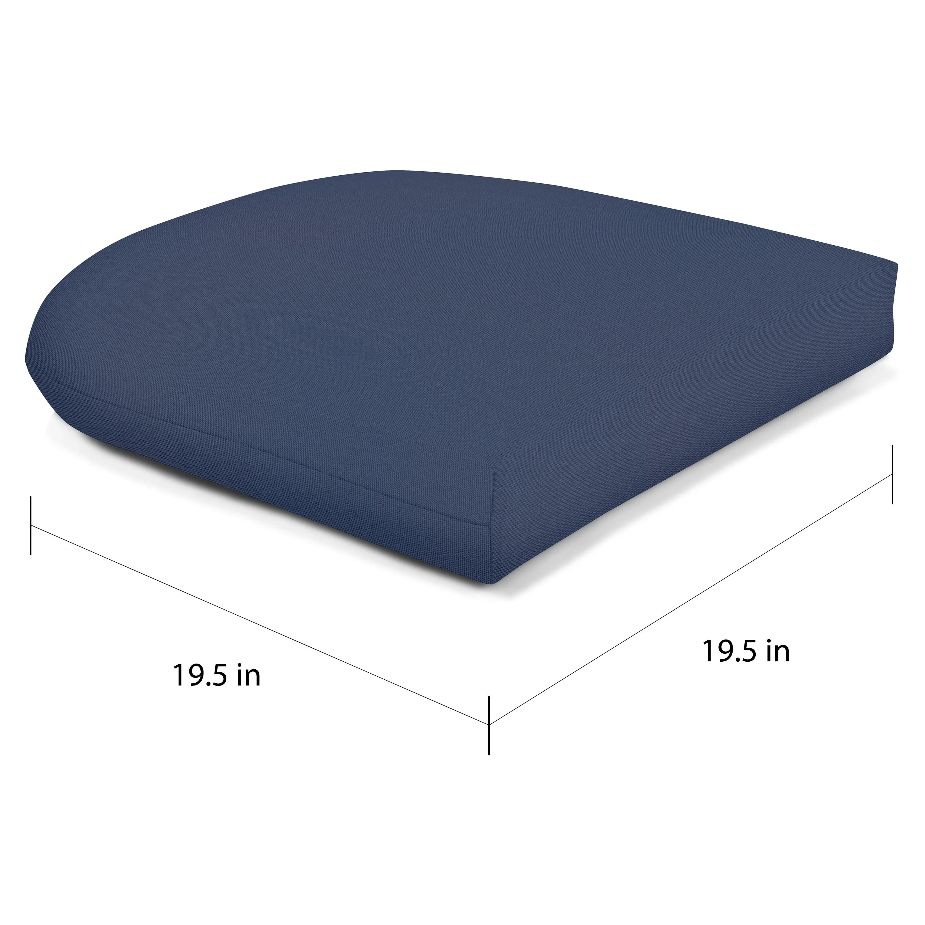 This outdoor wicker seat cushion in Sunbrella™ fabric is made for comfort and durability. The cushion is mold and mildew resistant. With a rounded back.