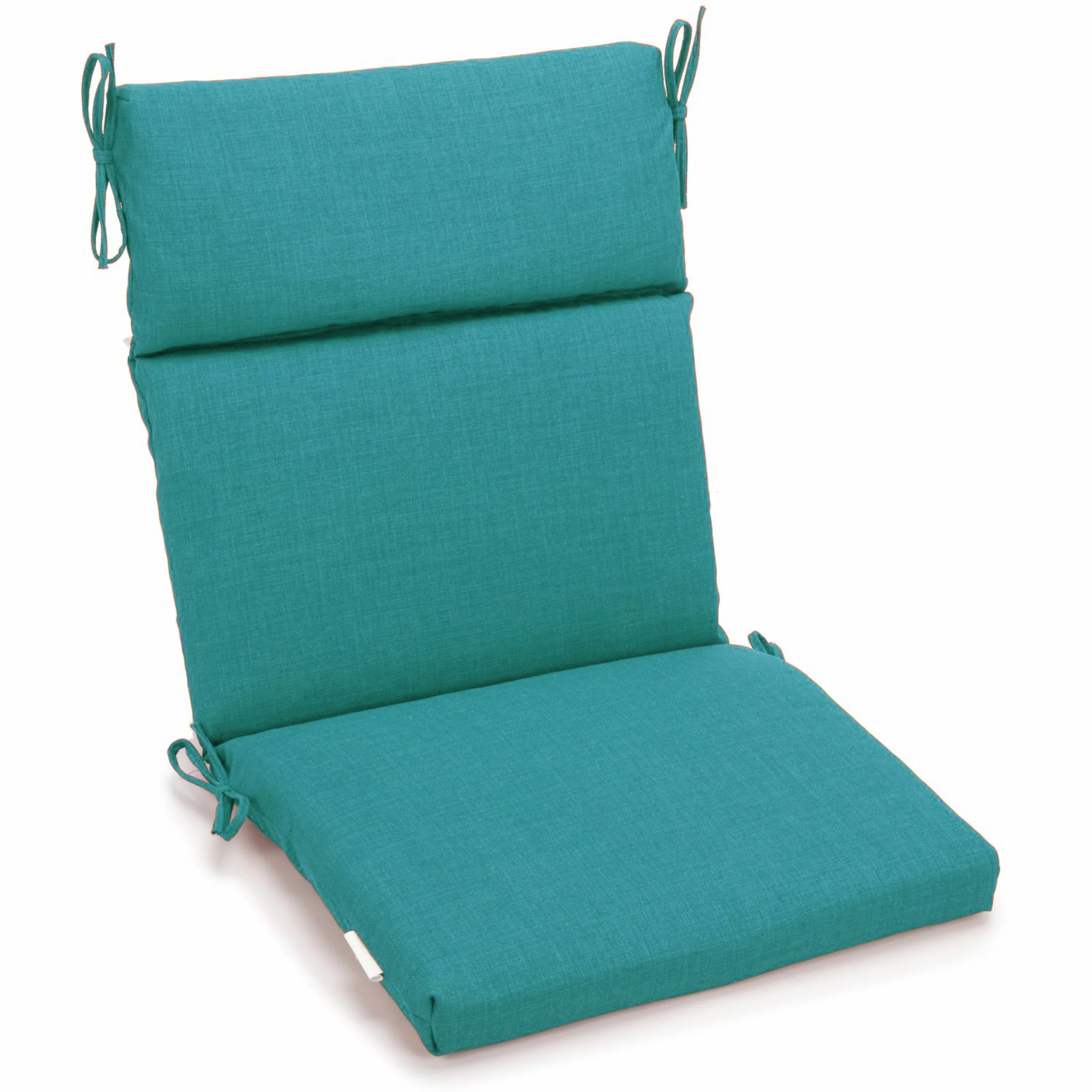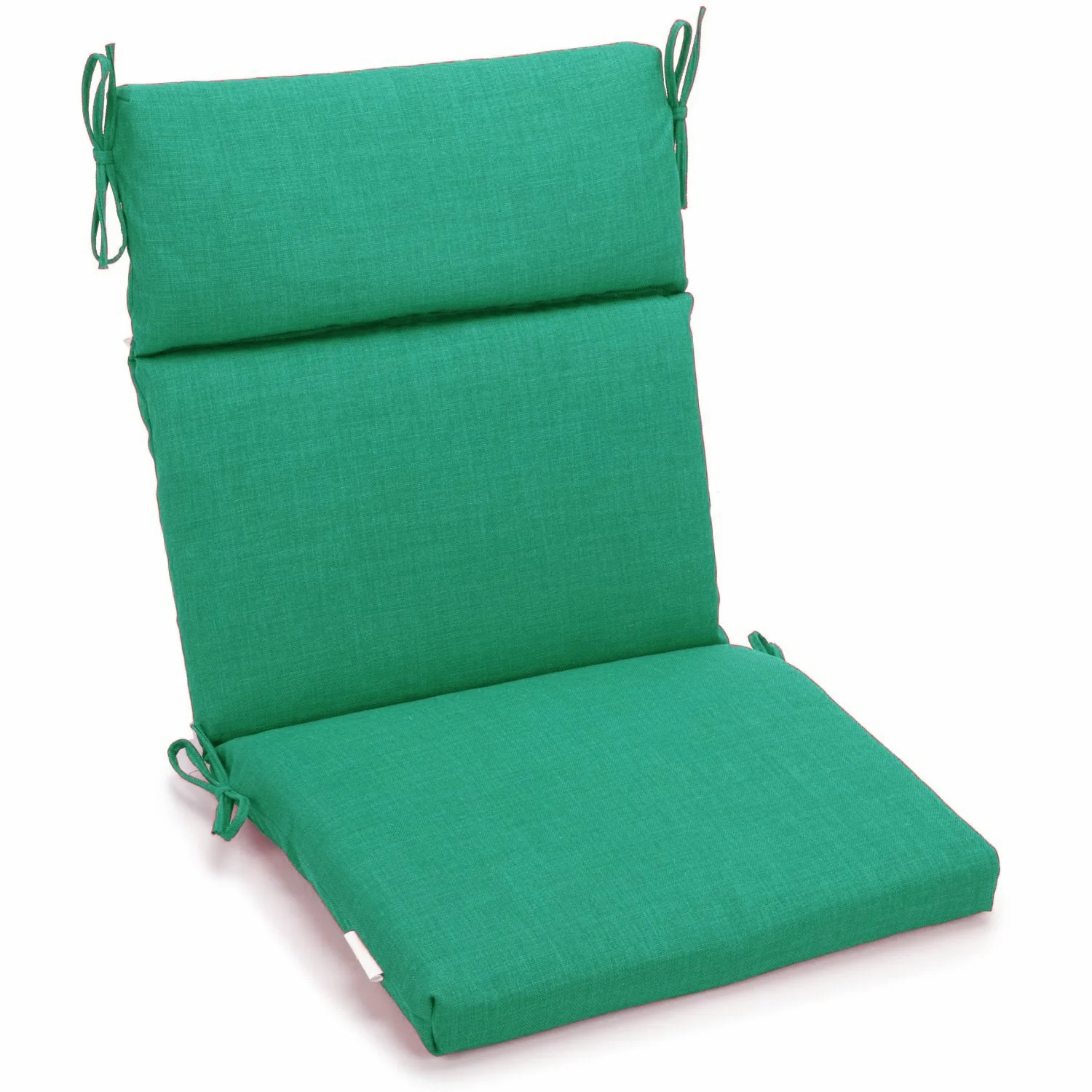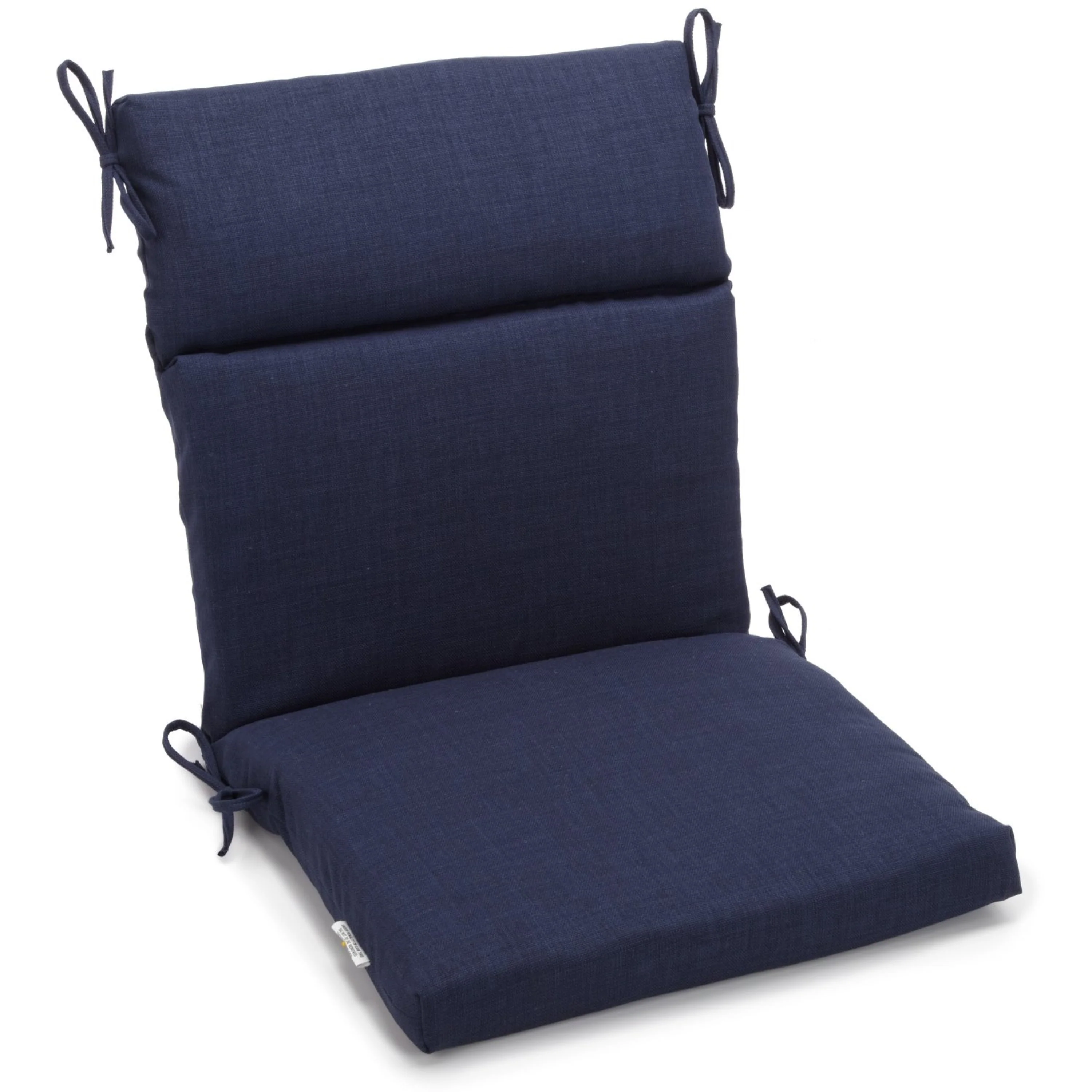 Add a touch of comfort and style to your outdoor seating with the Blazing Needles Three-section Outdoor Seat/Back Chair Cushion. This cushion features a classic fiber padded three-section design that provides maximum cushioned comfort to your chairs. Made with durable, UV-resistant, and fade-resistant 100% spun polyester outdoor fabric, this cushion can withstand outdoor elements. The attached fabric ties make it easy to secure to your chairs, and the zipper closure allows for easy cleaning. Choose from a wide range of color options to match your patio style.