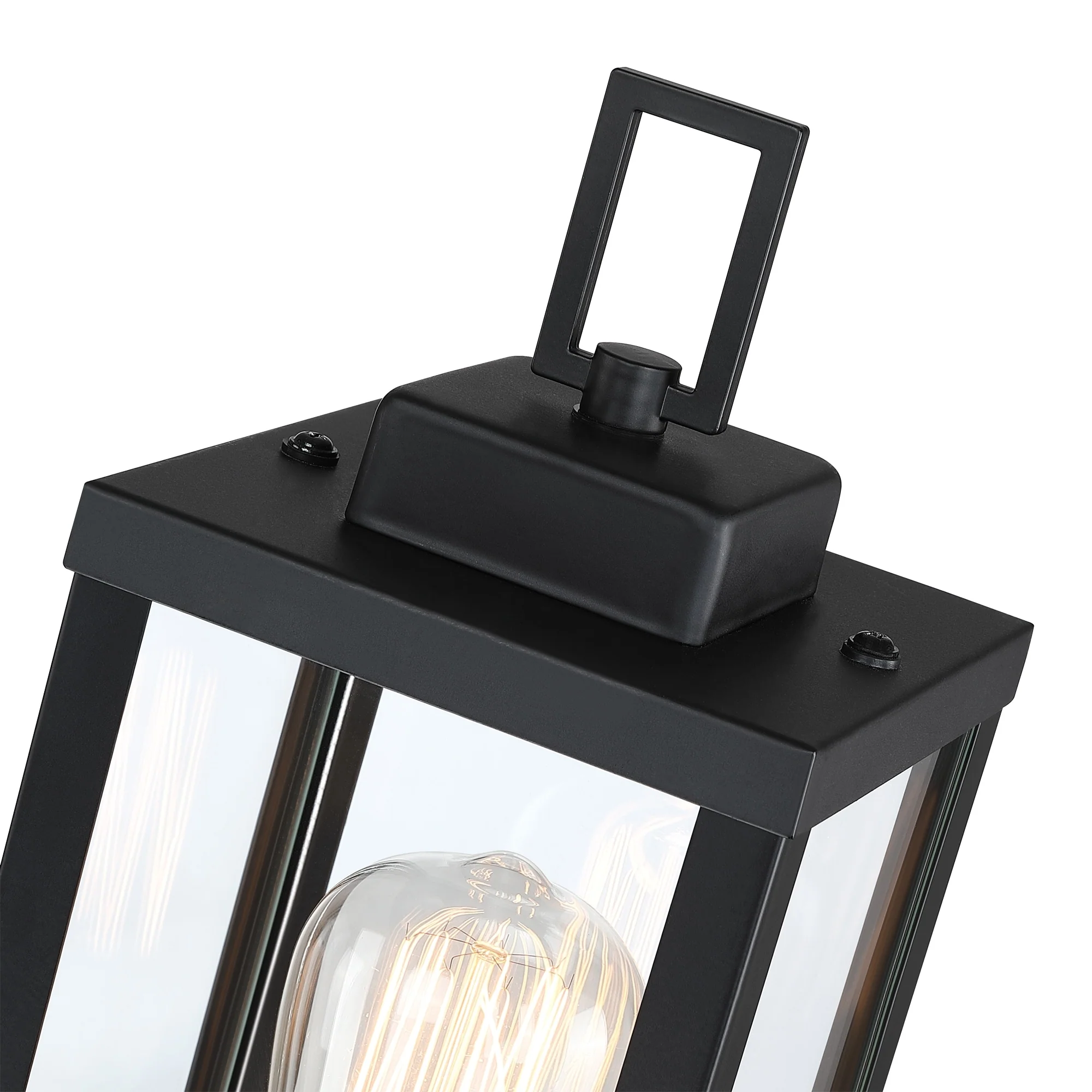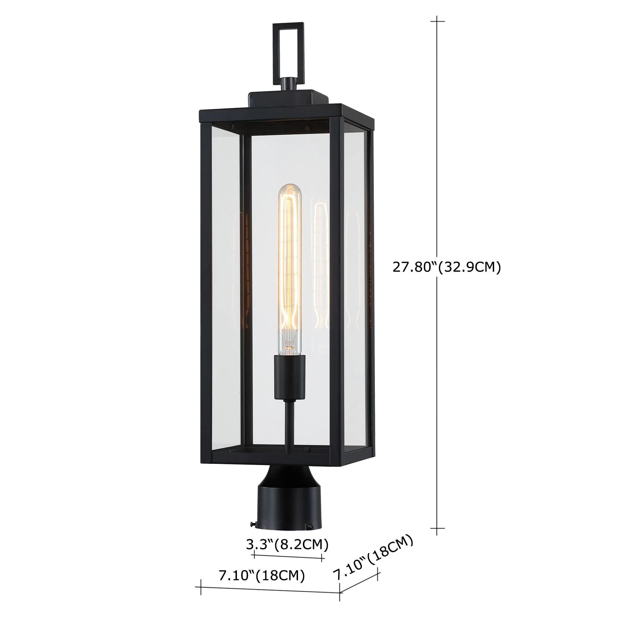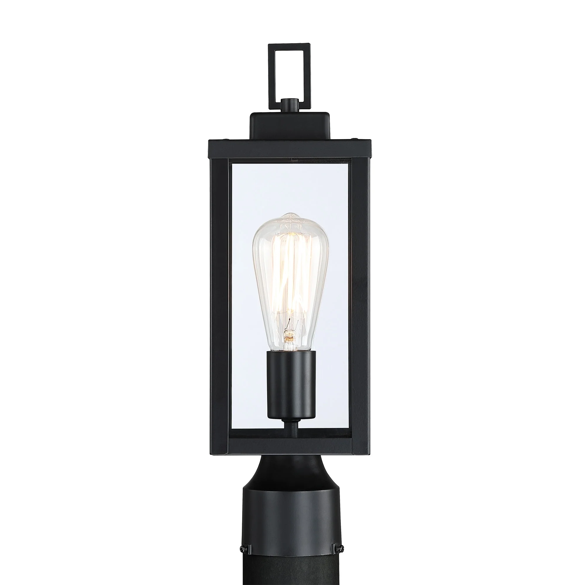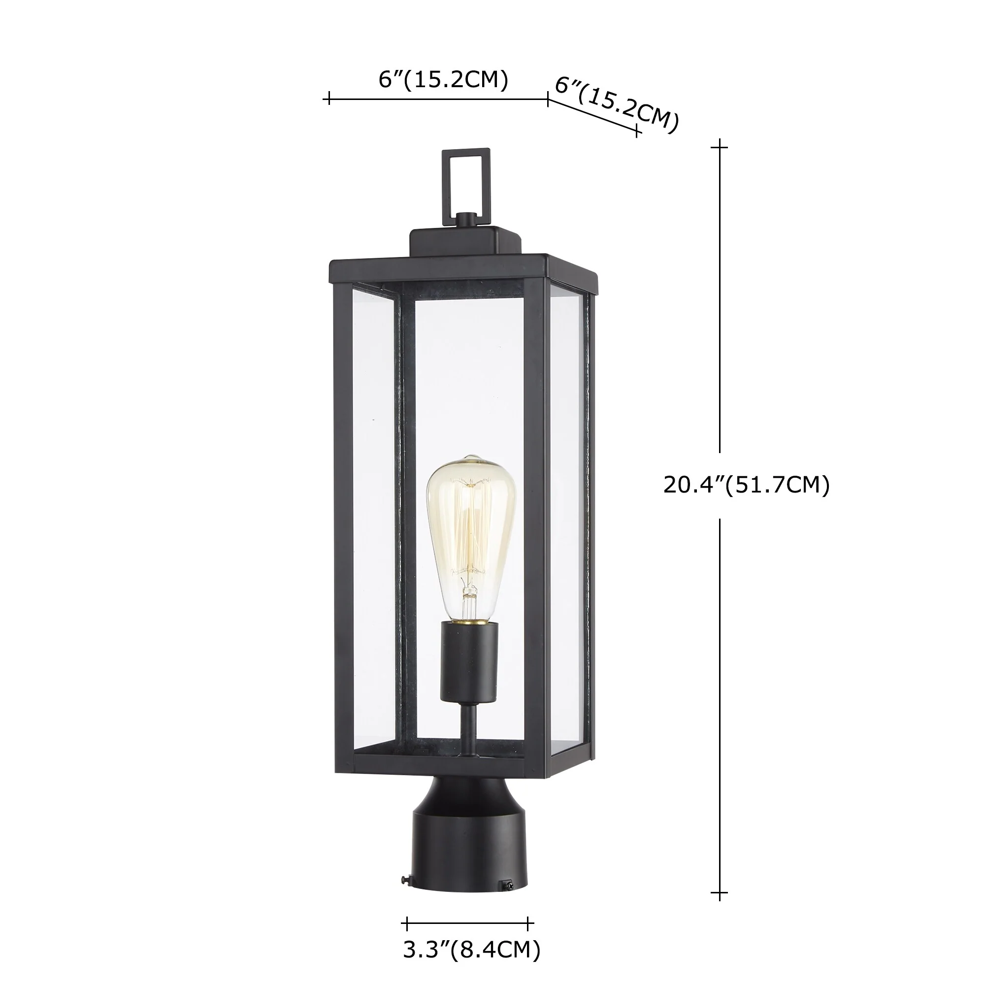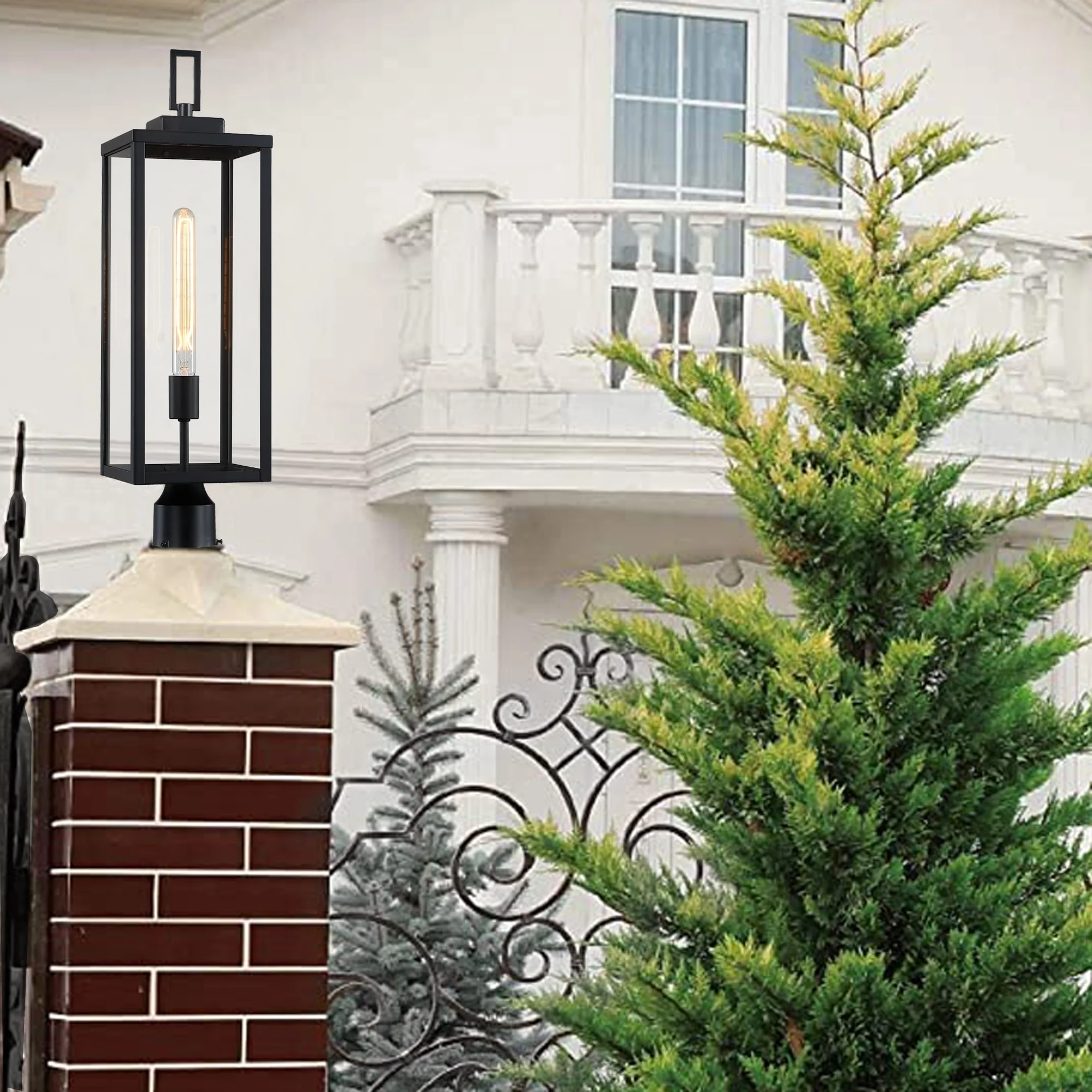 The beautiful modern lantern head(pier mount light) brightens up your landscaping, adding a warm touch for your entryway and driveway. The lantern head was fully crafted from metal with a clear glass shade and matte black finish, it showcases how a modern lantern head looks like. A single incandescent bulb of up to 60-Watt sits inside (Bulb and Pole are not included). It's perfect for installing in uncovered outdoor area and rated for weather resistance. Mount this luminary to the post of your choice.