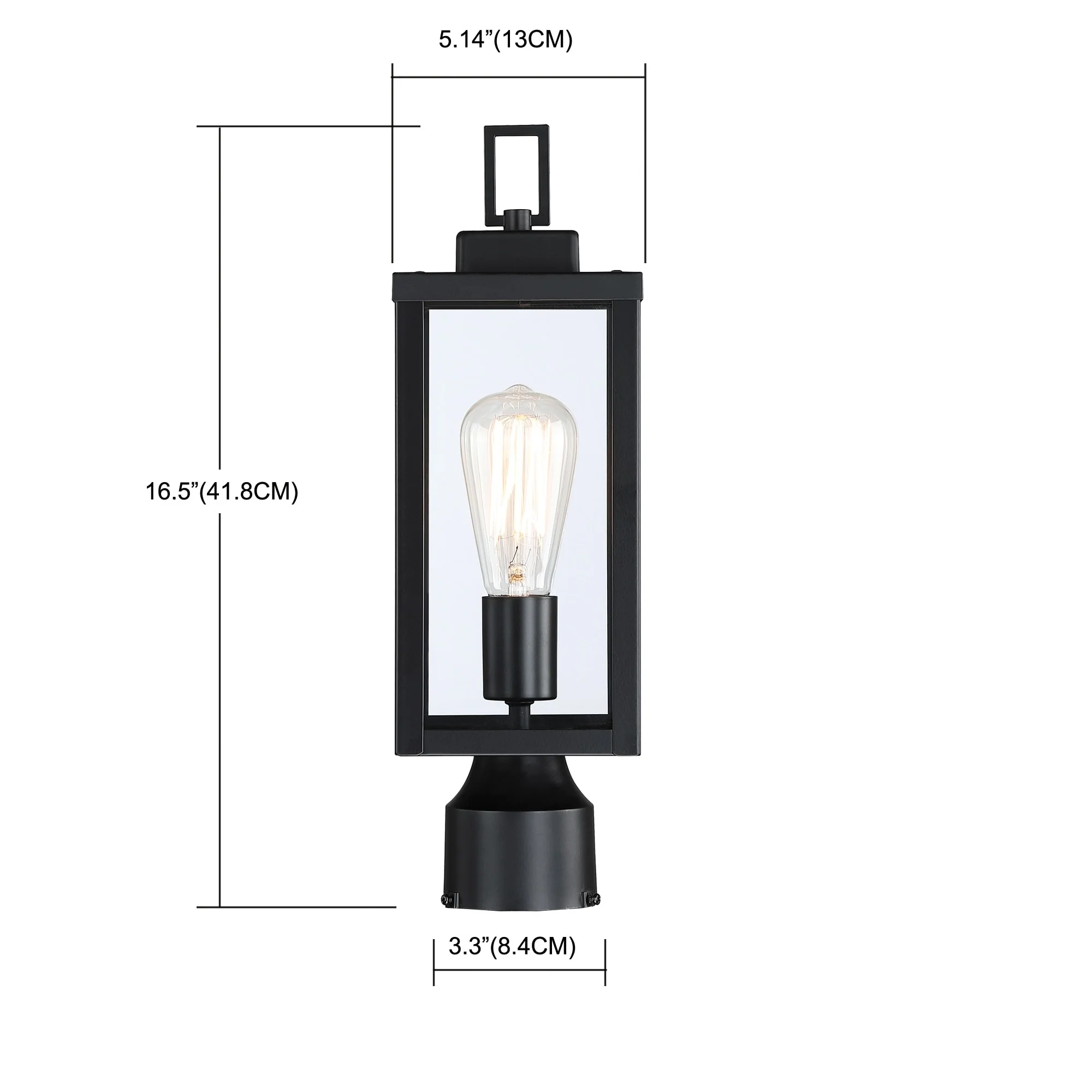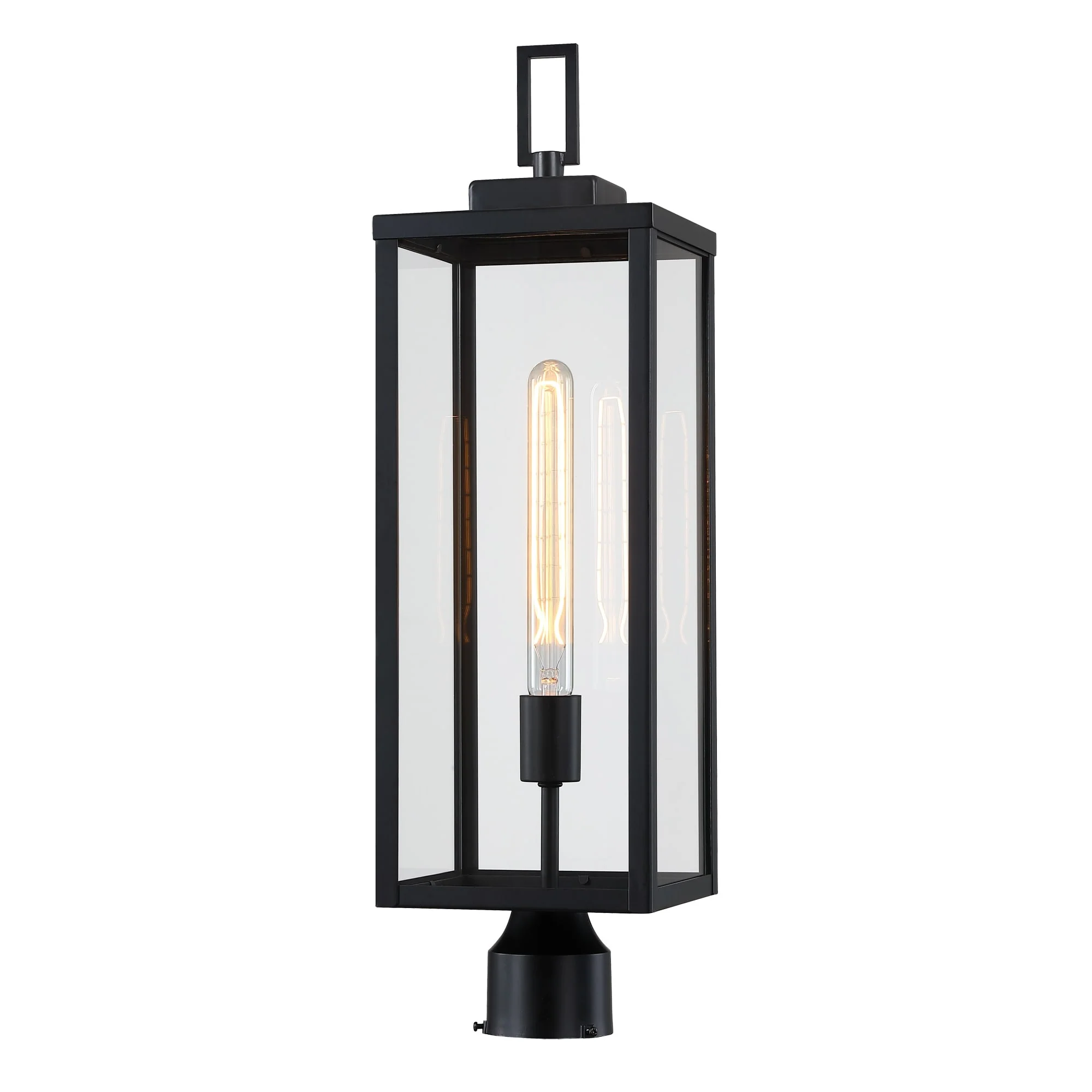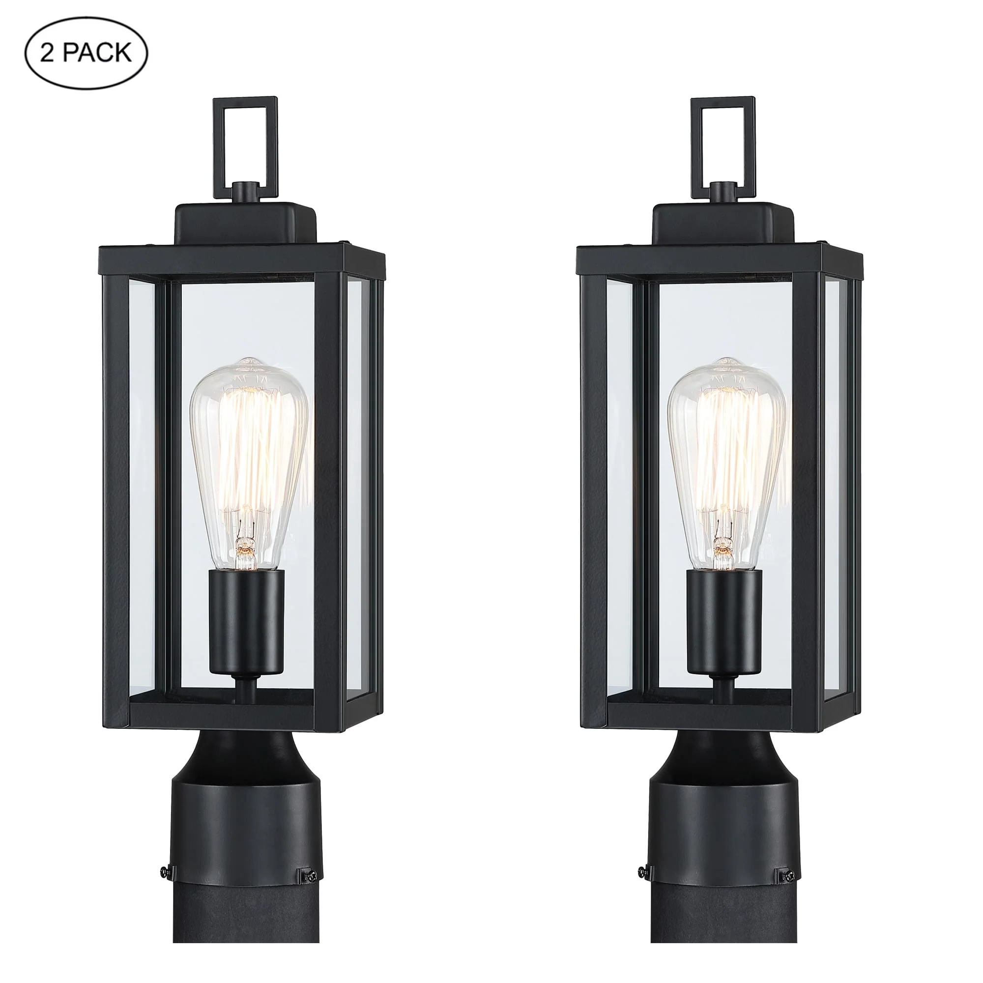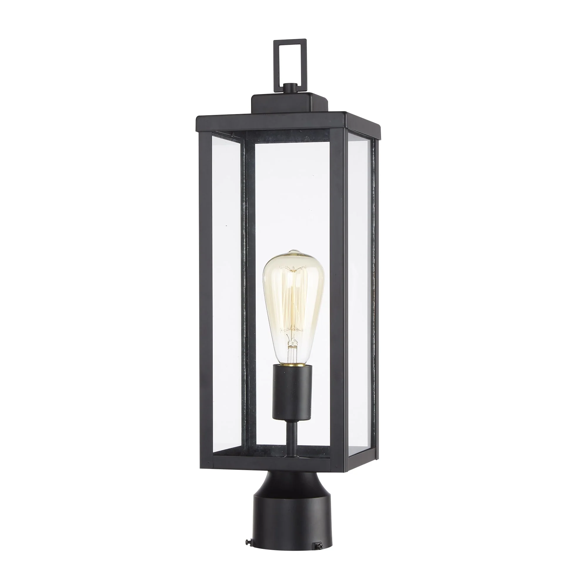 The beautiful modern lantern head(pier mount light) brightens up your landscaping, adding a warm touch for your entryway and driveway. The lantern head was fully crafted from metal with a clear glass shade and matte black finish, it showcases how a modern lantern head looks like. A single incandescent bulb of up to 60-Watt sits inside (Bulb and Pole are not included). It's perfect for installing in uncovered outdoor area and rated for weather resistance. Mount this luminary to the post of your choice.