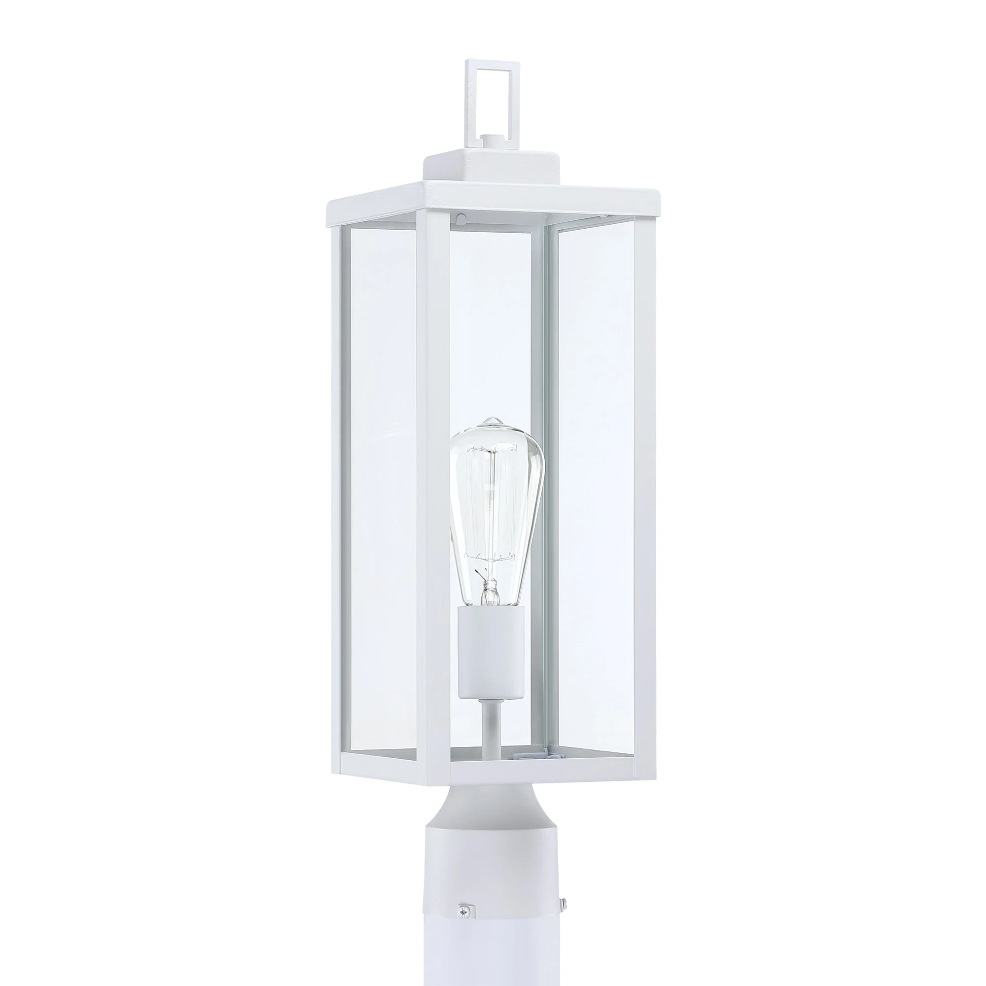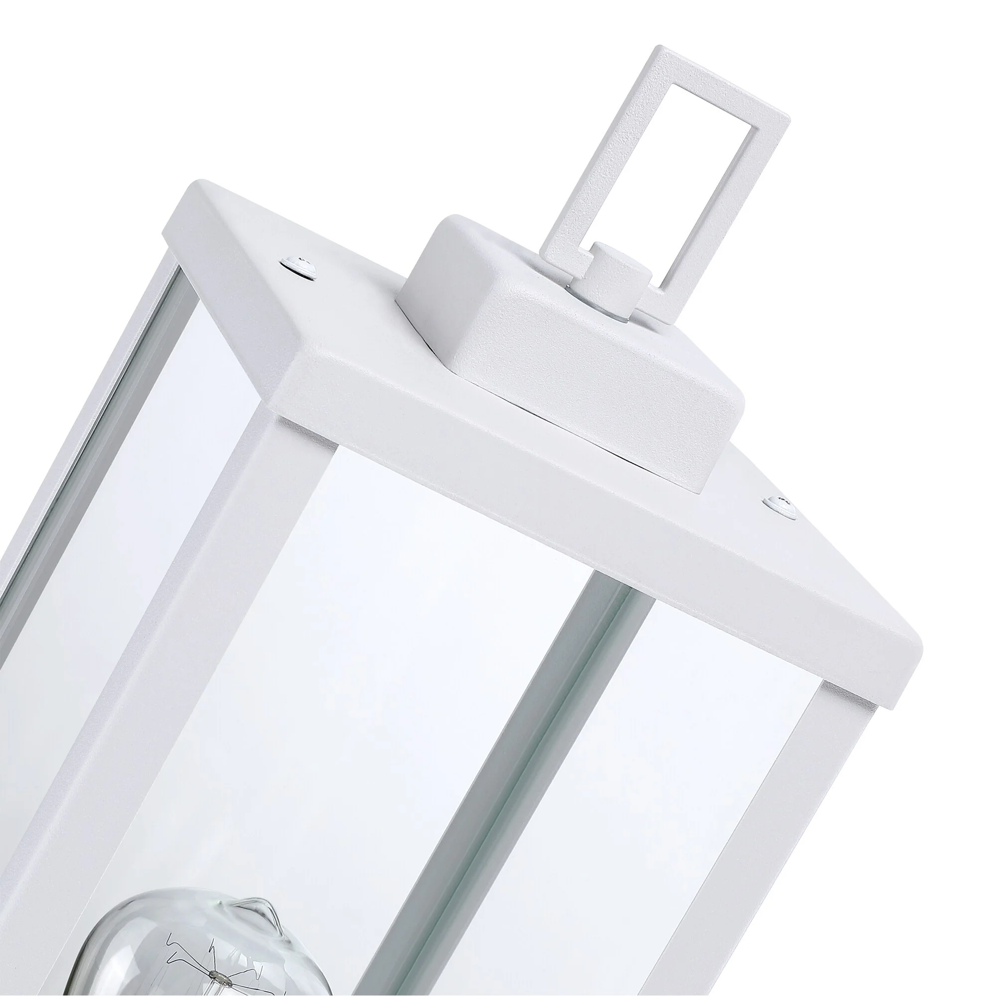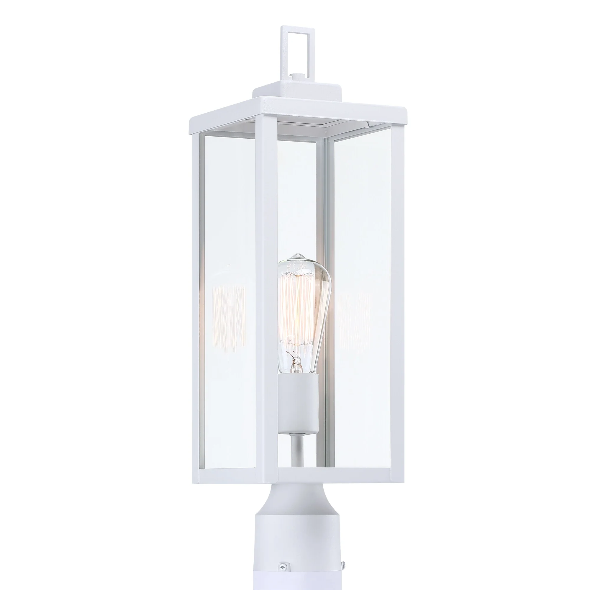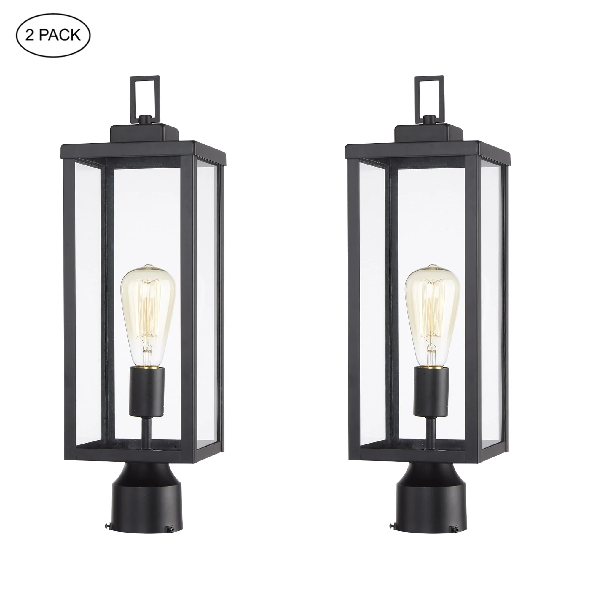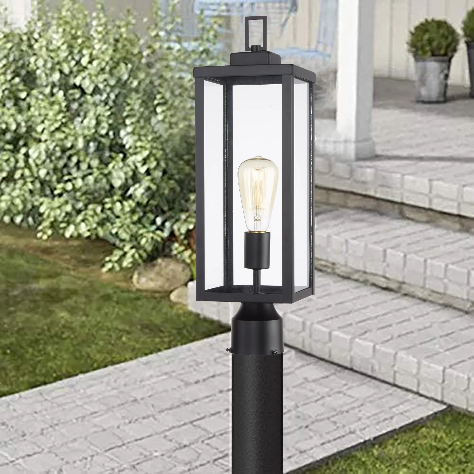 The beautiful modern lantern head(pier mount light) brightens up your landscaping, adding a warm touch for your entryway and driveway. The lantern head was fully crafted from metal with a clear glass shade and matte black finish, it showcases how a modern lantern head looks like. A single incandescent bulb of up to 60-Watt sits inside (Bulb and Pole are not included). It's perfect for installing in uncovered outdoor area and rated for weather resistance. Mount this luminary to the post of your choice.