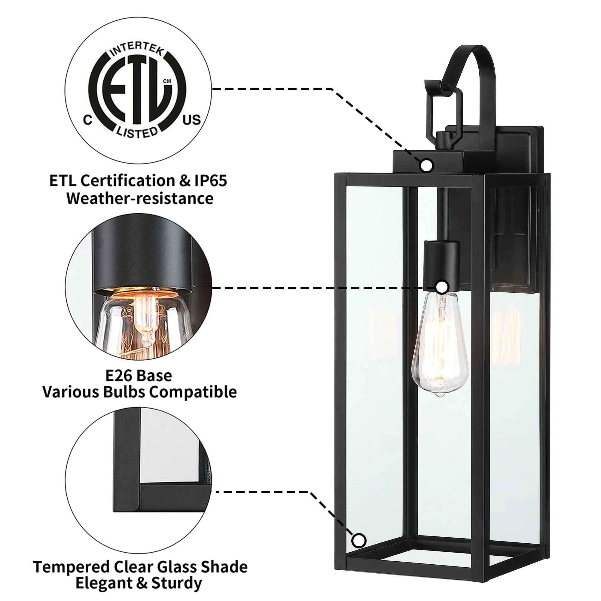Made of the heavy-duty die-cast aluminum alloy, this exterior light fixtures is high waterproof rated, seamless connection, anti-rust, and anti-corrosion. No matter rain or snow, ultra-high or low temperatures, this outdoor lighting can still keep stylish looking after years of using, no worries about the aging problem. Unlike other fragile and crispy glass panels, our outdoor wall light fixtures take the high quality glass, steady enough and highly durable. Besides, with the transparent appearance, it will help the wall light emits more soft and cozy light for your family, add a beautiful atmosphere outside your house.