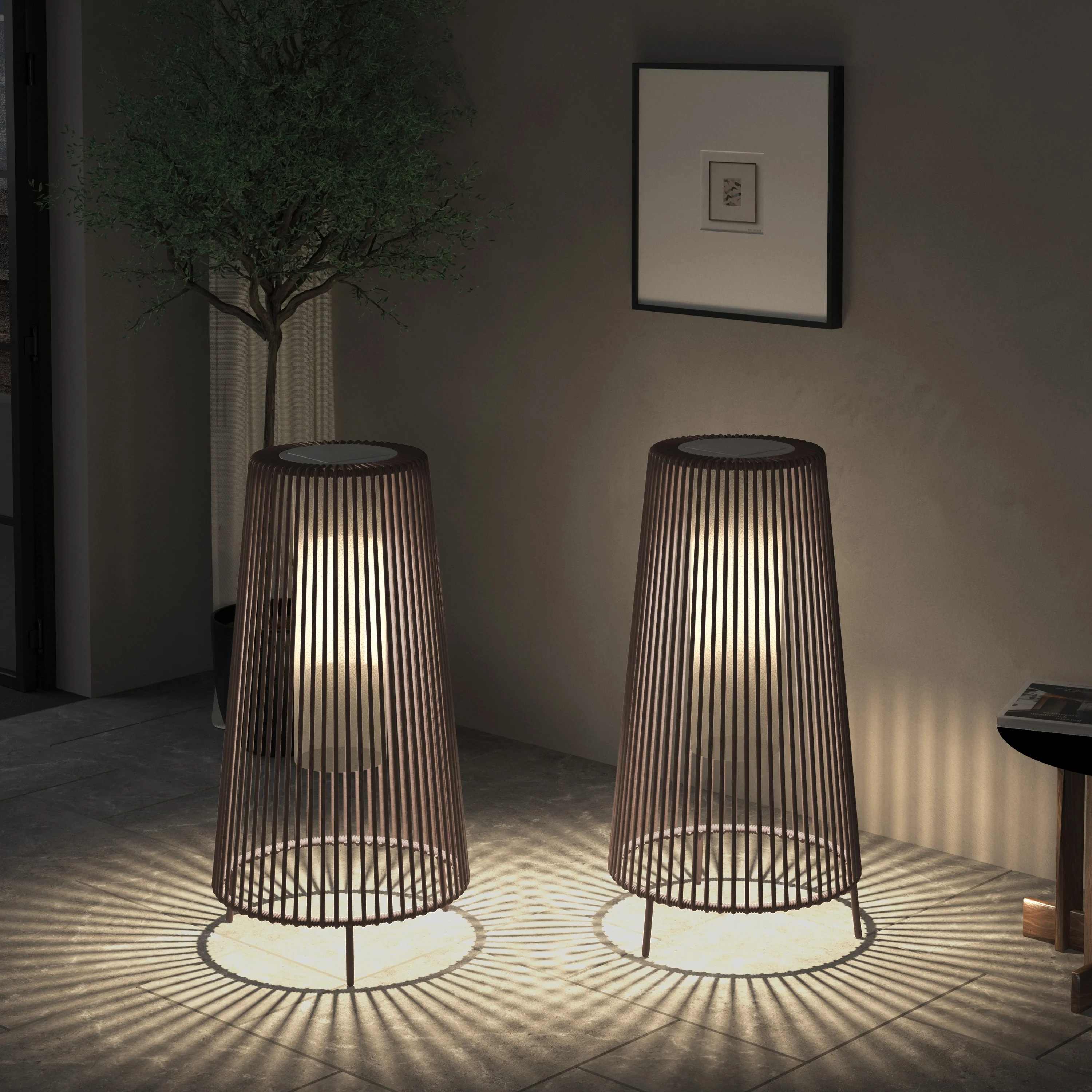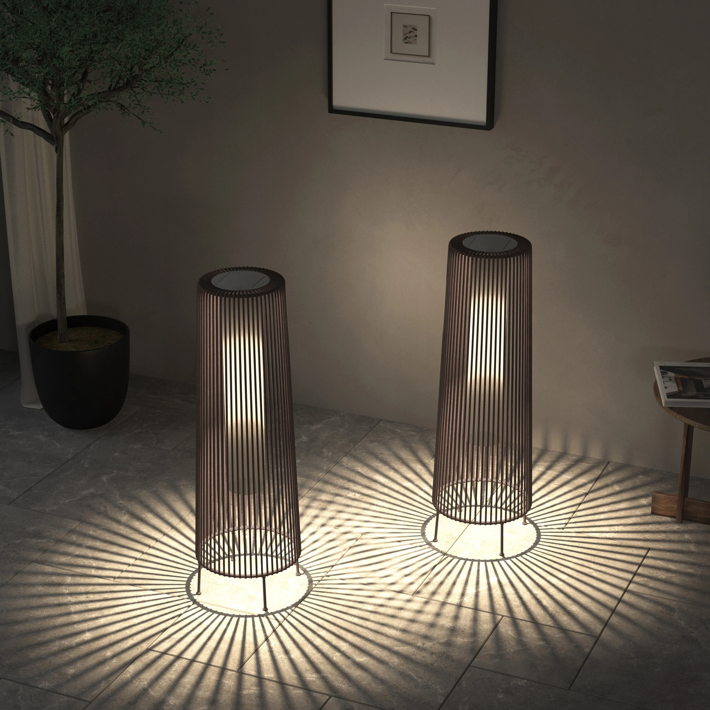 This floor lamp adopts beautiful open weave wicker pattern, creating unique landscape for your garden. Polycrystalline solar panel provide bright and soft glow, gives you a charming and romantic atmosphere for your patio, path, deck, garden at night. Our resin wicker handwoven on the e-coating and powder coated steel frame, combined with IP65 rated waterproof design, providing more durability and extreme resistance to harsh outdoor conditions, such as UV rays, rain, and snow. With 8-12 hours of charging in direct sunlight, your garden lights will shine for 6-12 hours (specific time charging efficiency to decide). the built-in sensor can turn the light on automatically at dusk, offering you a warmer and brighter glow well into the night. This solar lantern height 27 inches, the large size fulfills your demand. It can be used as an exquisite night lighting decoration lamp, also perfect as a gift for your family and friends.
