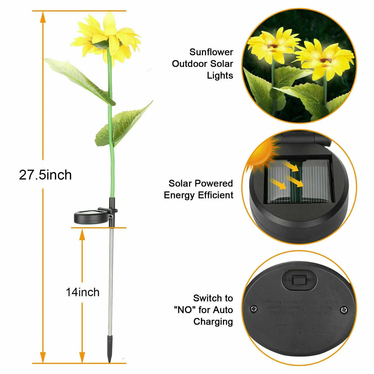 - \xe3\x80\x90Perfect Gift\xe3\x80\x91Sunflower outdoor solar garden stake light includes 2 packs of flower lights. Perfect path lights and ground lights for gardens, trees, flowers, flower beds, fences, sidewalks, this garden solar light can do it all and is also a perfect gift for your family or friends. Sunflower solar stand lights are professionally tested, no need to worry about the quality.