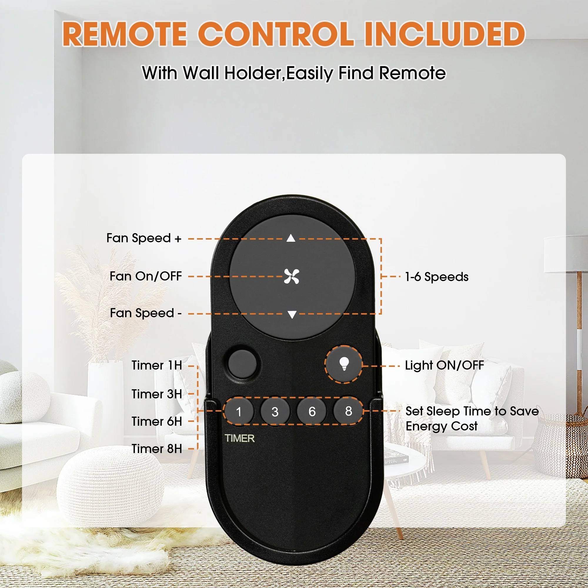 - 52' ceiling fan for living rooms, bedrooms, dining rooms, kitchens, and patio areas up to 400 square feet
