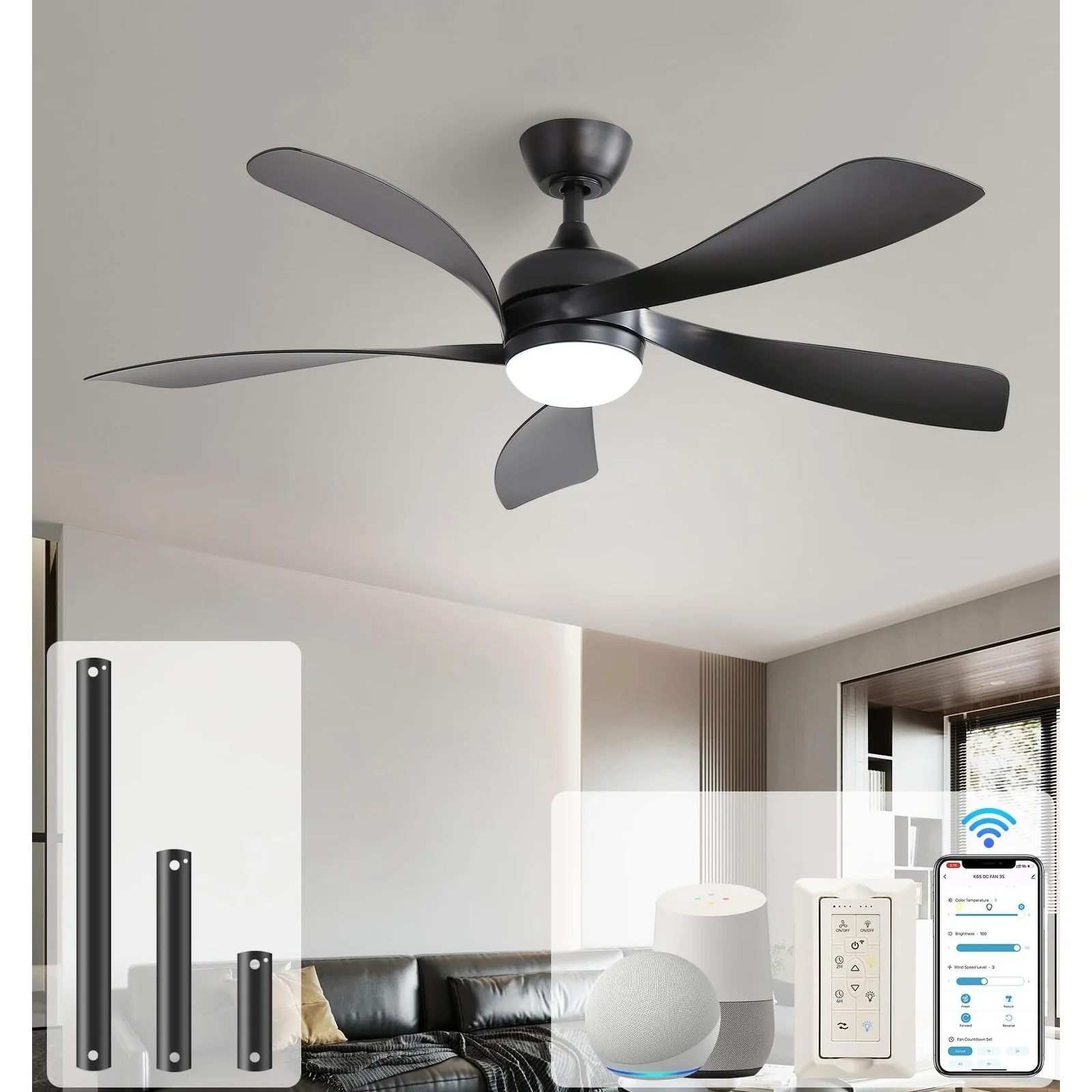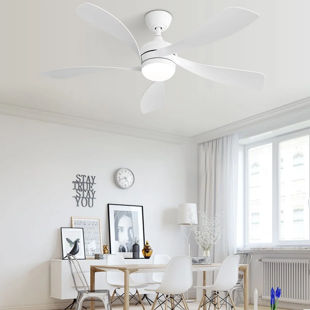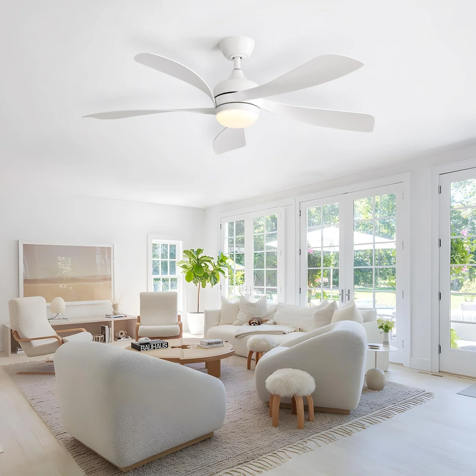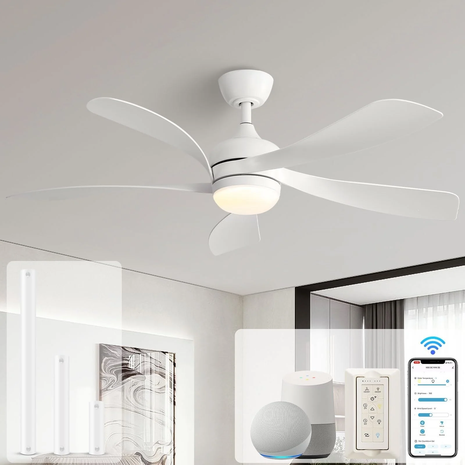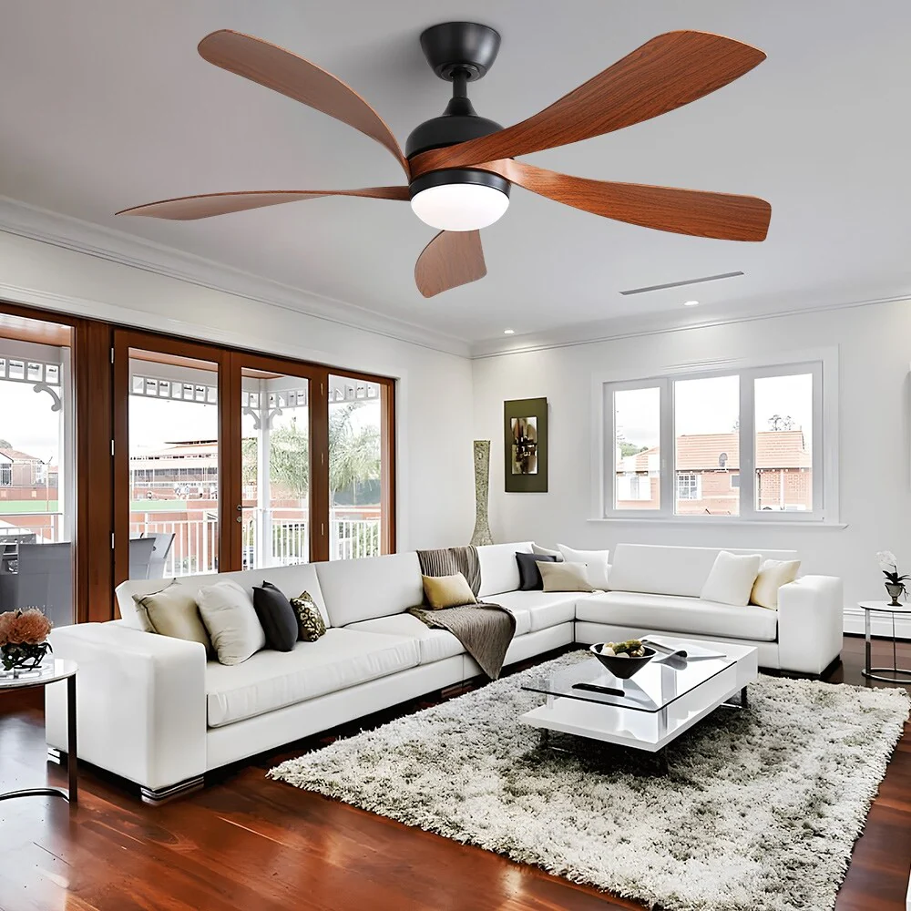 The modern 52' ceiling fan features a clean and simple line, creating a classic and permanency home style for your home. This fan delivers high airflow velocity while maintaining quiet. High-performance reverse function, let your home enjoy cool air in summer and warm air in winter. You can control the fan with the included remote control, voice control or smart app on your smart device. Perfect for indoor setting, its energy-efficient design offers both aesthetic appeal and durability. With You can also upgrade your home indoor or outdoor patio experience with this 52' Ceiling Fan - where style meets superior performance.
