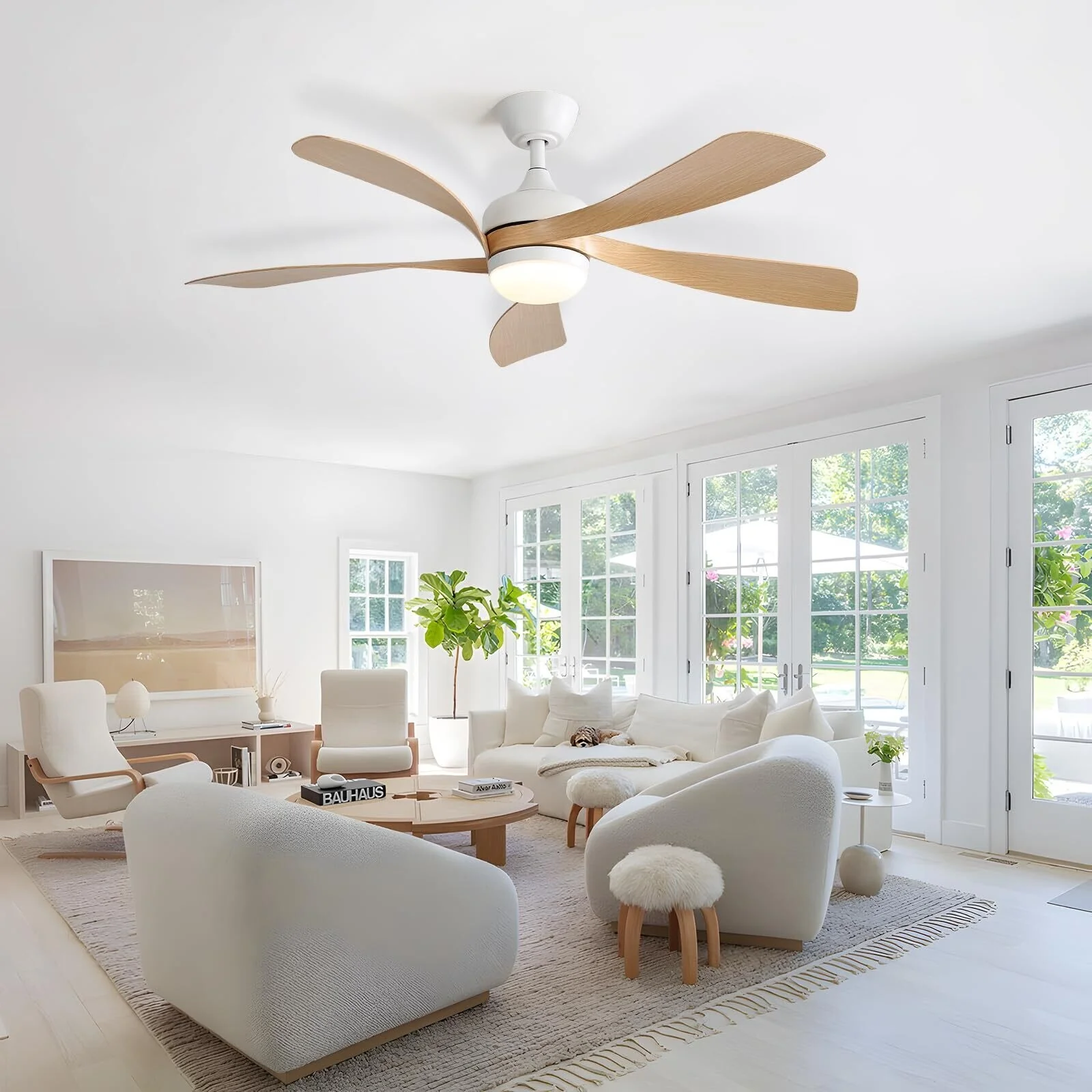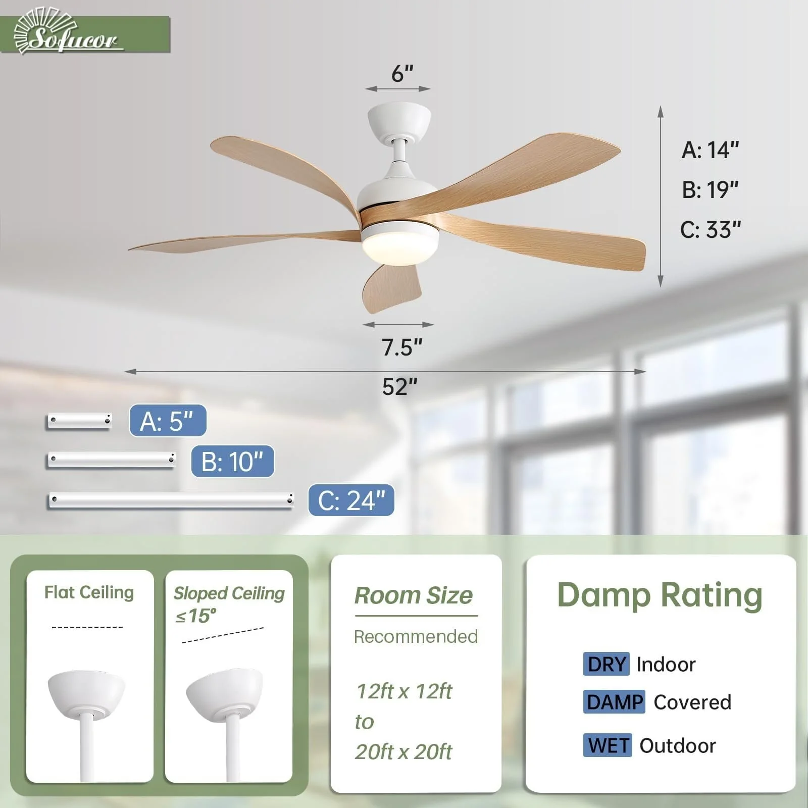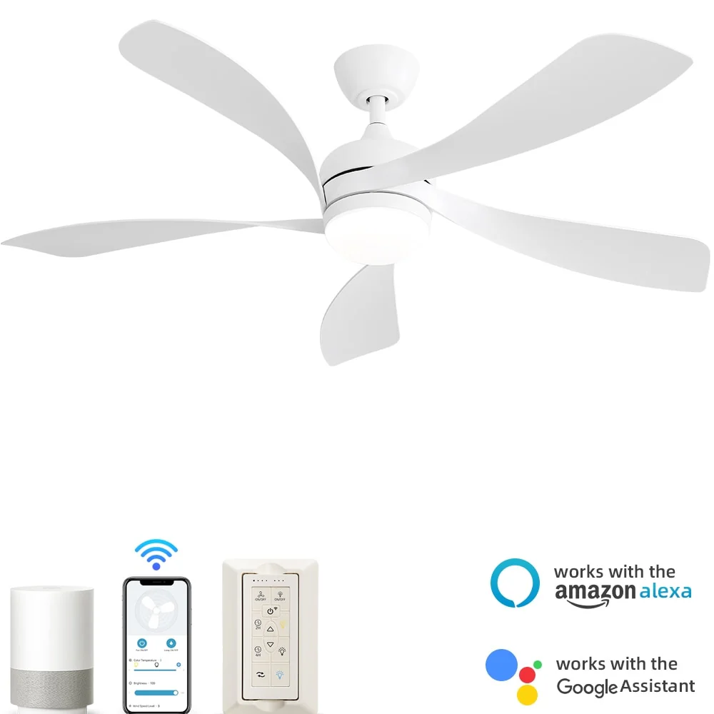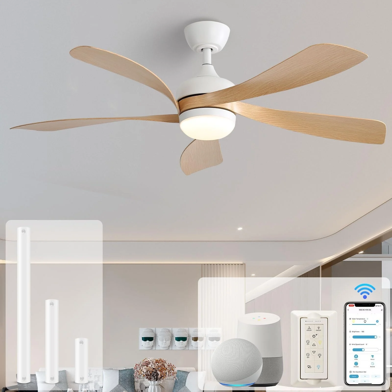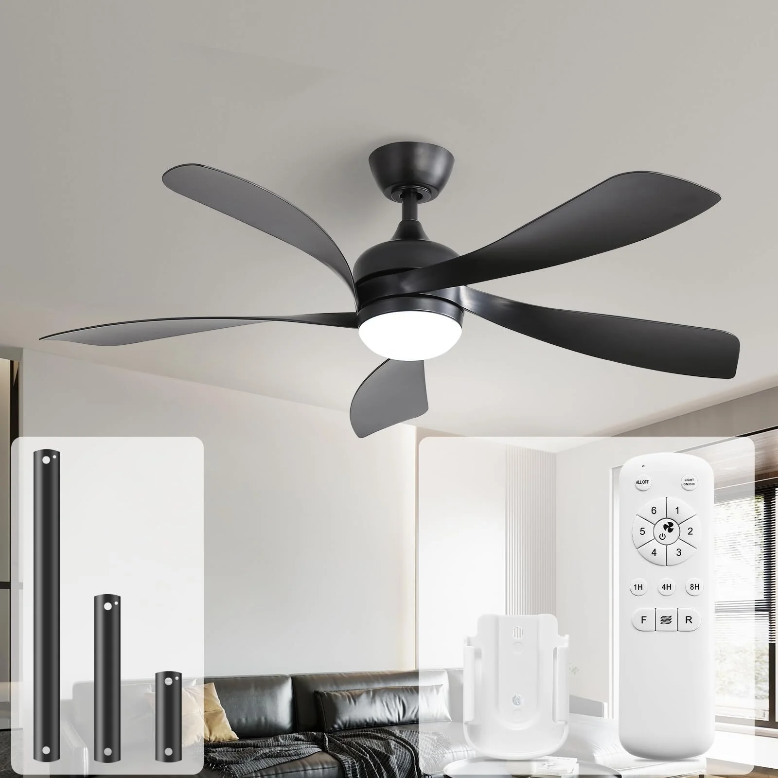 The modern 52' ceiling fan features a clean and simple line, creating a classic and permanency home style for your home. This fan delivers high airflow velocity while maintaining quiet. High-performance reverse function, let your home enjoy cool air in summer and warm air in winter. You can control the fan with the included remote control, voice control or smart app on your smart device. Perfect for indoor setting, its energy-efficient design offers both aesthetic appeal and durability. With You can also upgrade your home indoor or outdoor patio experience with this 52' Ceiling Fan - where style meets superior performance.