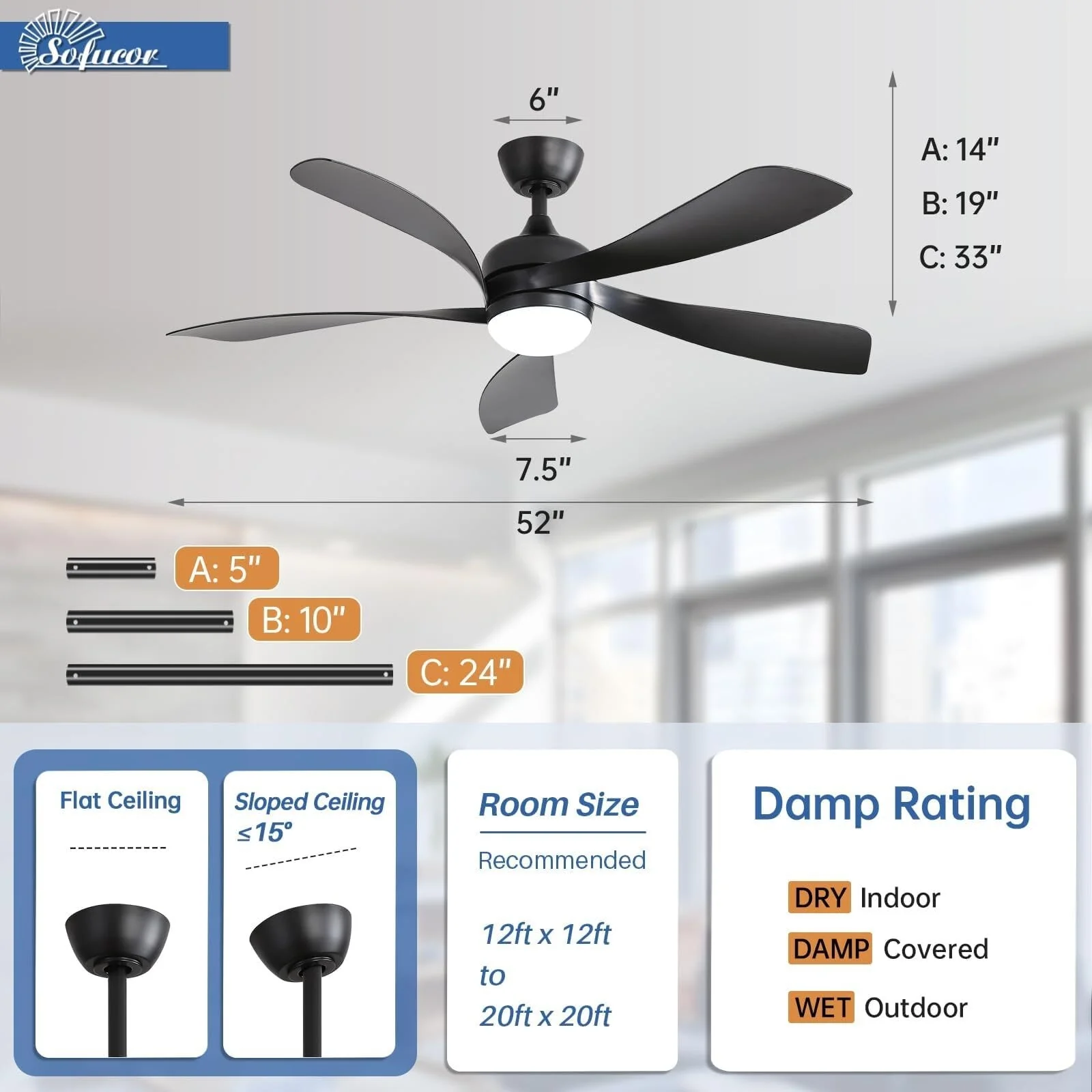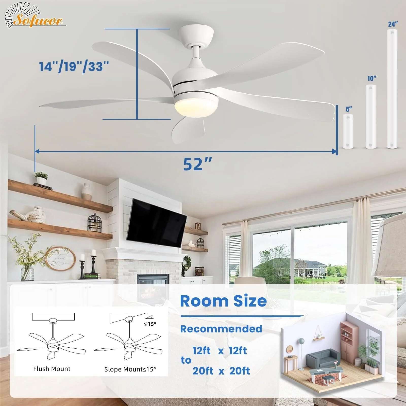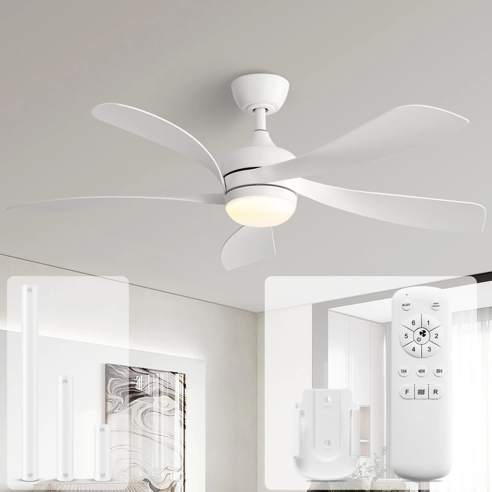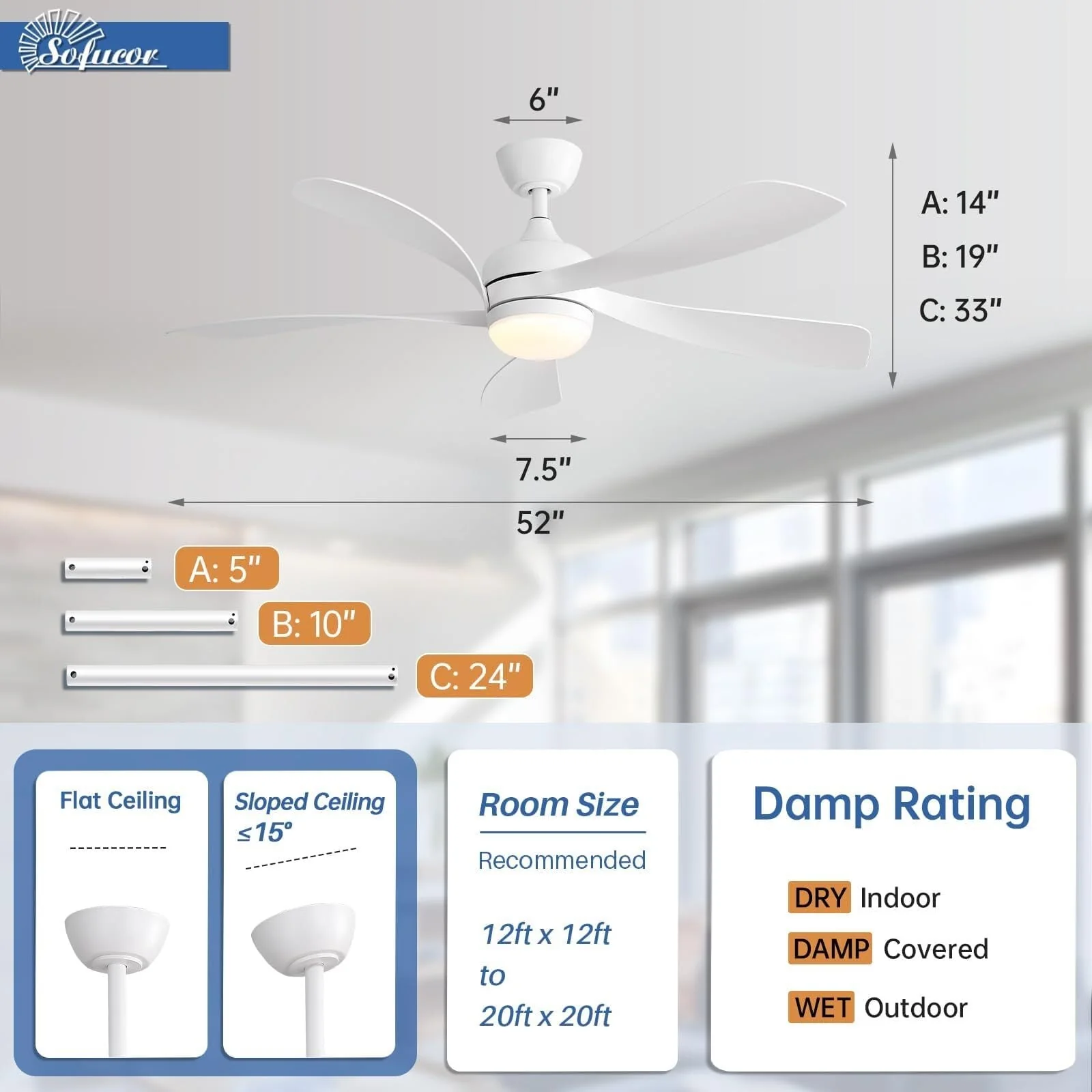 The modern 52' ceiling fan features a clean and simple line, creating a classic and permanency home style for your home. This fan delivers high airflow velocity while maintaining quiet. High-performance reverse function, let your home enjoy cool air in summer and warm air in winter. You can control the fan with the included remote control, voice control or smart app on your smart device. Perfect for indoor setting, its energy-efficient design offers both aesthetic appeal and durability. With You can also upgrade your home indoor or outdoor patio experience with this 52' Ceiling Fan - where style meets superior performance.