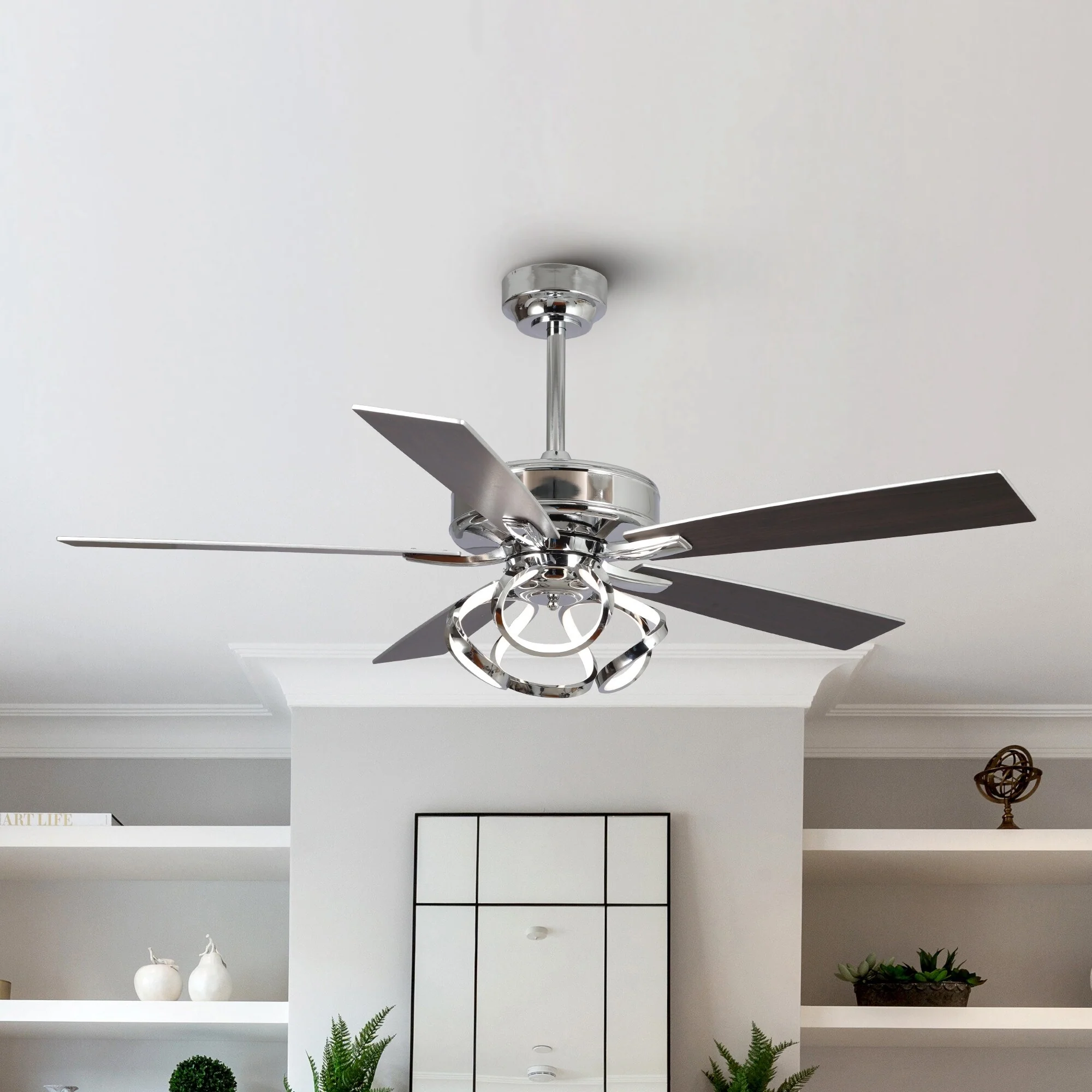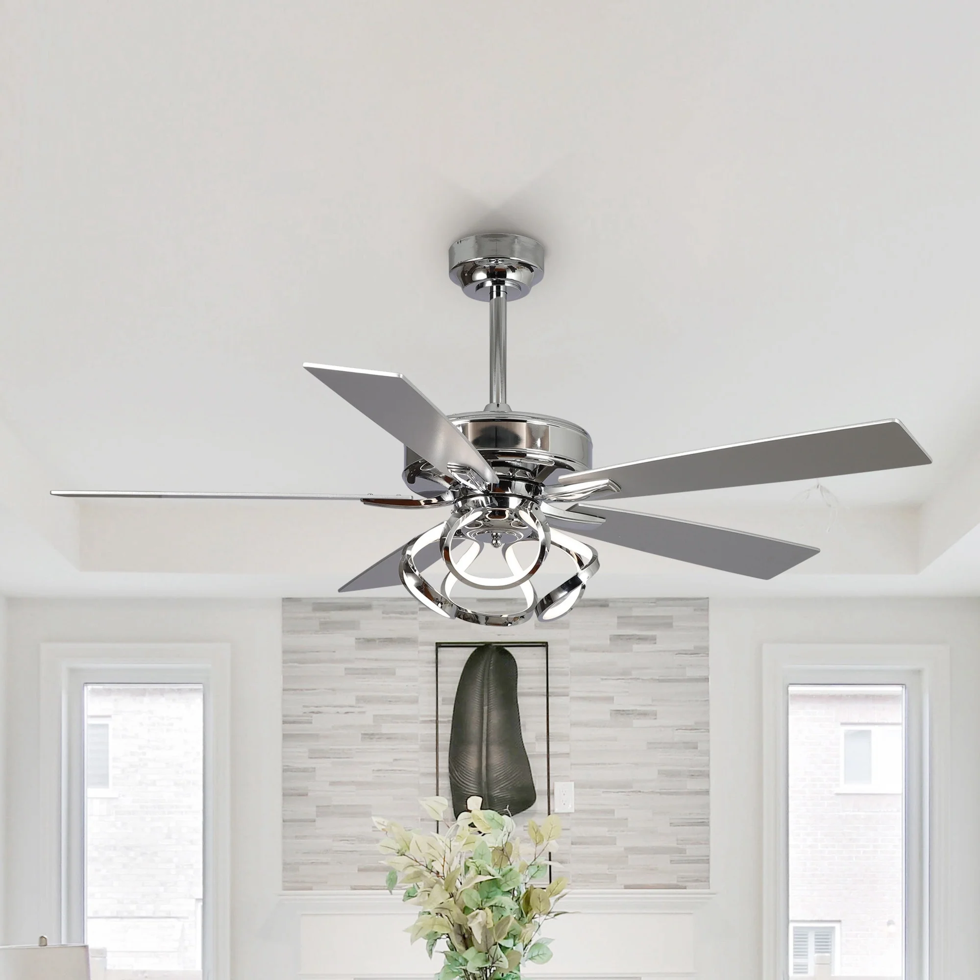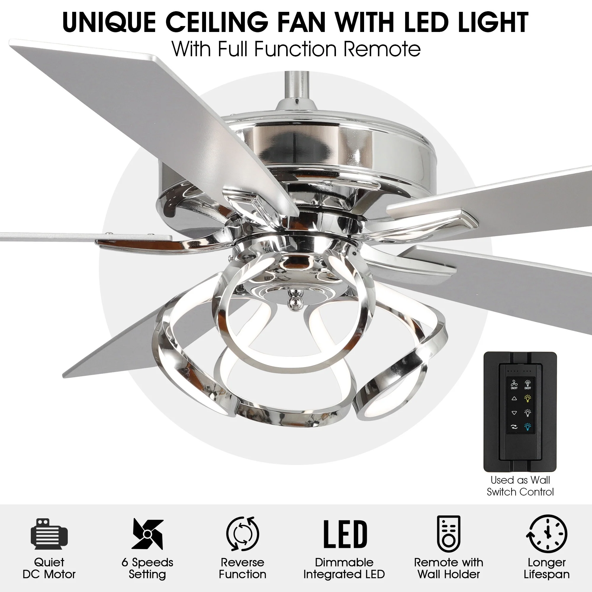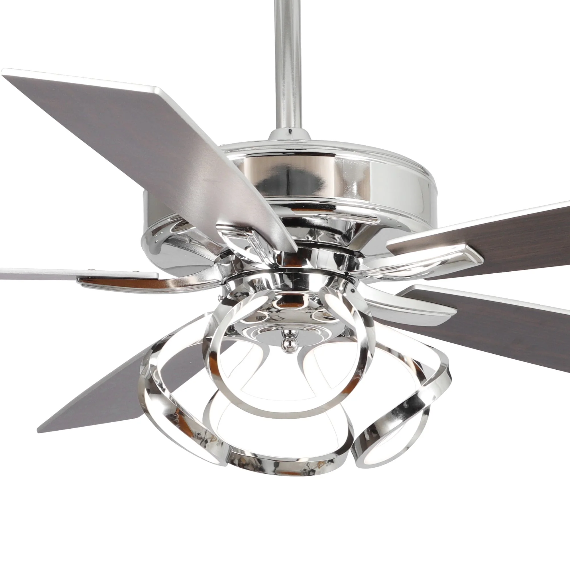 Twists and turns appear as subtle design elements, boosting the vibe of this modern, unique ceiling fan with light. A clean look takes a few turns in contoured silver and dark brown reversible blades with a 52-inch blade span. The comfortable air movement combines with brilliant illumination from the integrated LED module with 3 CCT and dimming, great for lighting up your living space. Hand-held remote control operation adds a convenience to this ceiling fan, which is used in all seasons.