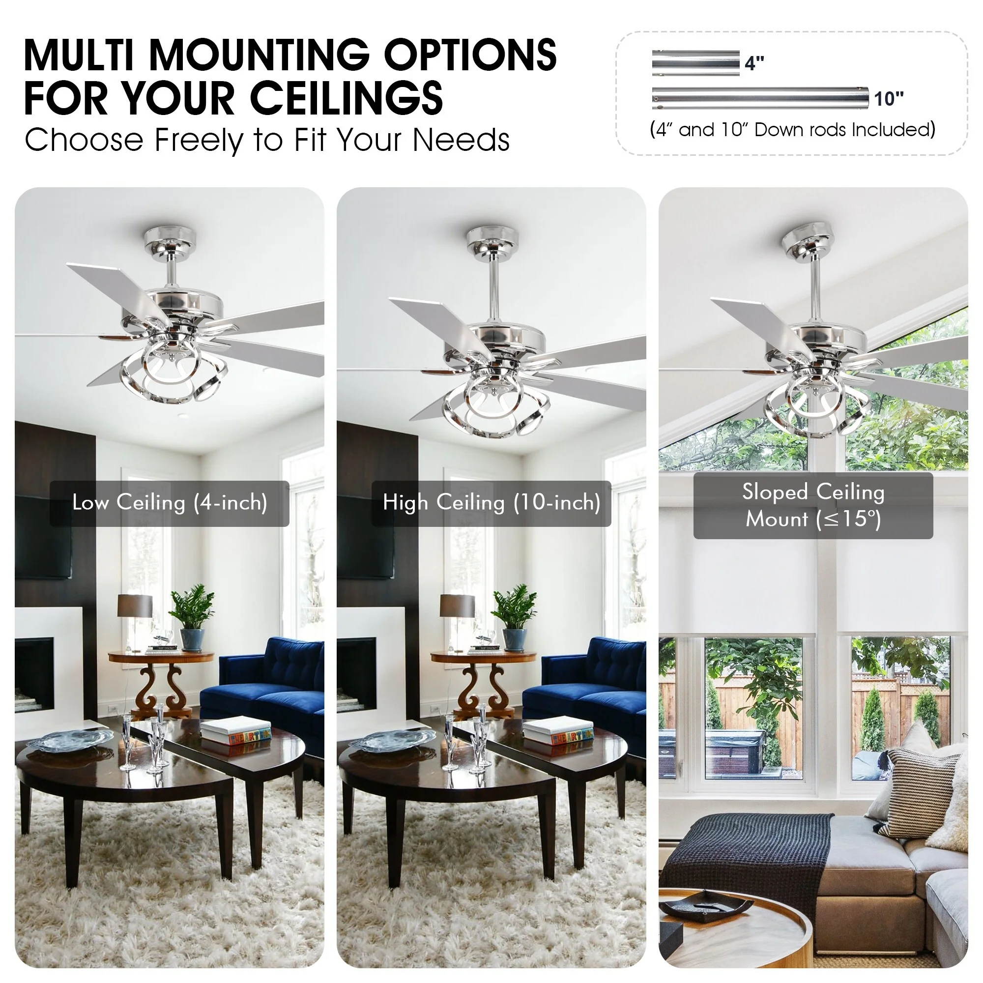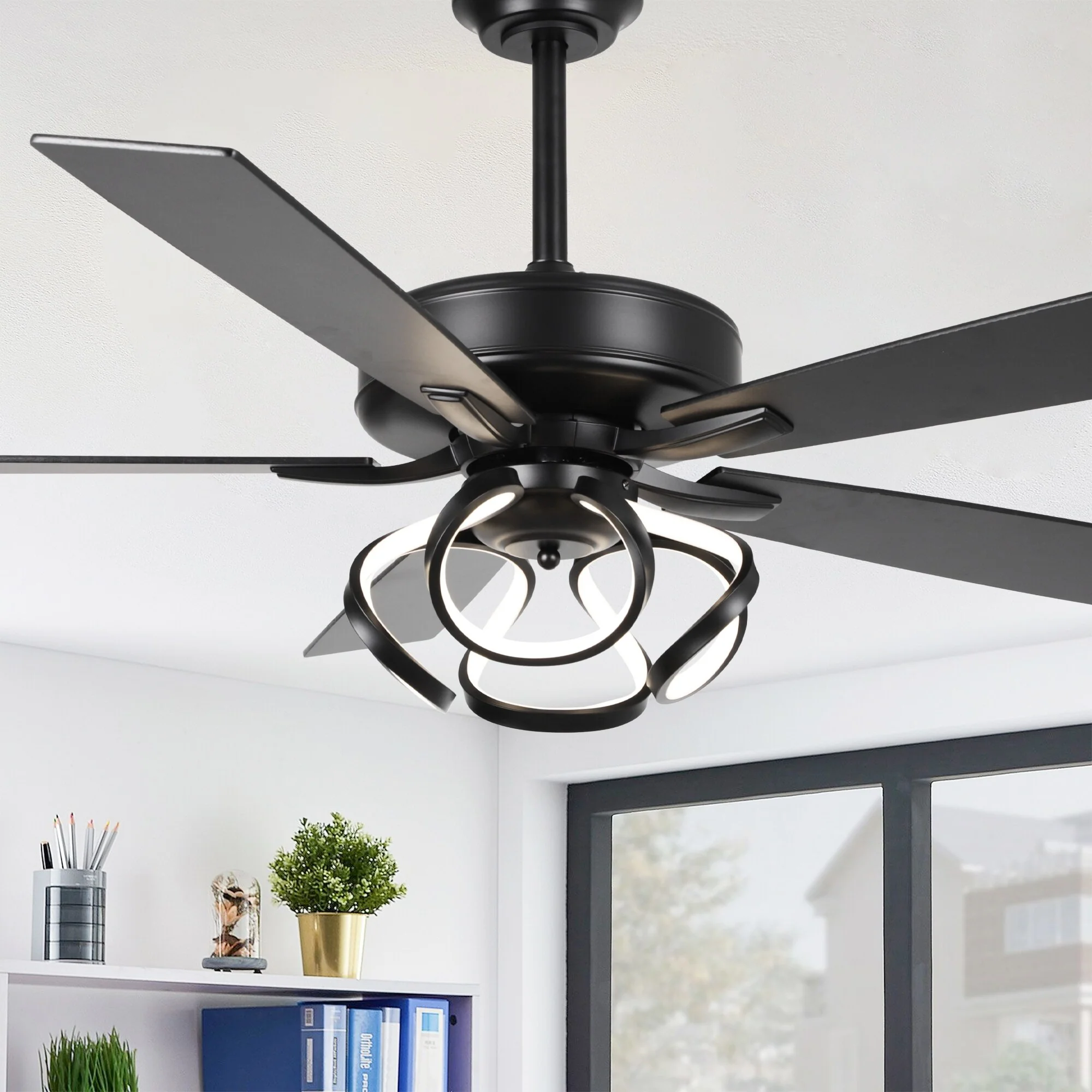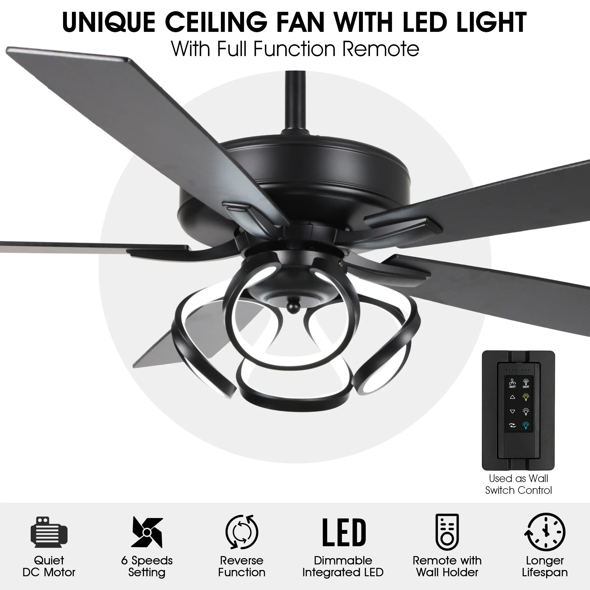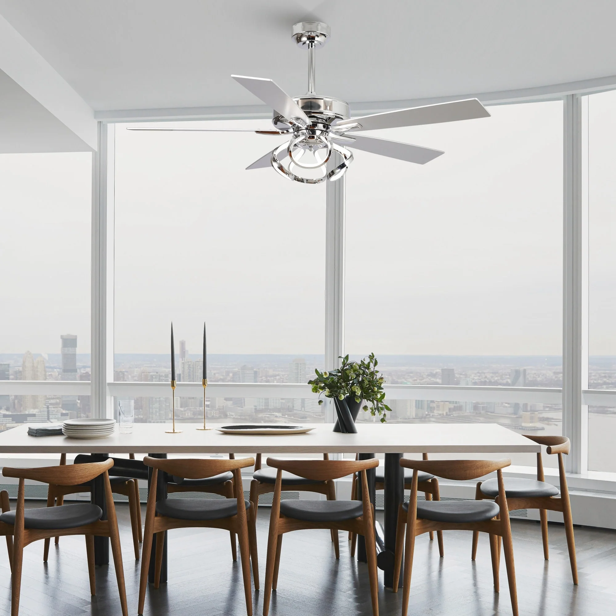 Twists and turns appear as subtle design elements, boosting the vibe of this modern, unique ceiling fan with light. A clean look takes a few turns in contoured silver and dark brown reversible blades with a 52-inch blade span. The comfortable air movement combines with brilliant illumination from the integrated LED module with 3 CCT and dimming, great for lighting up your living space. Hand-held remote control operation adds a convenience to this ceiling fan, which is used in all seasons.