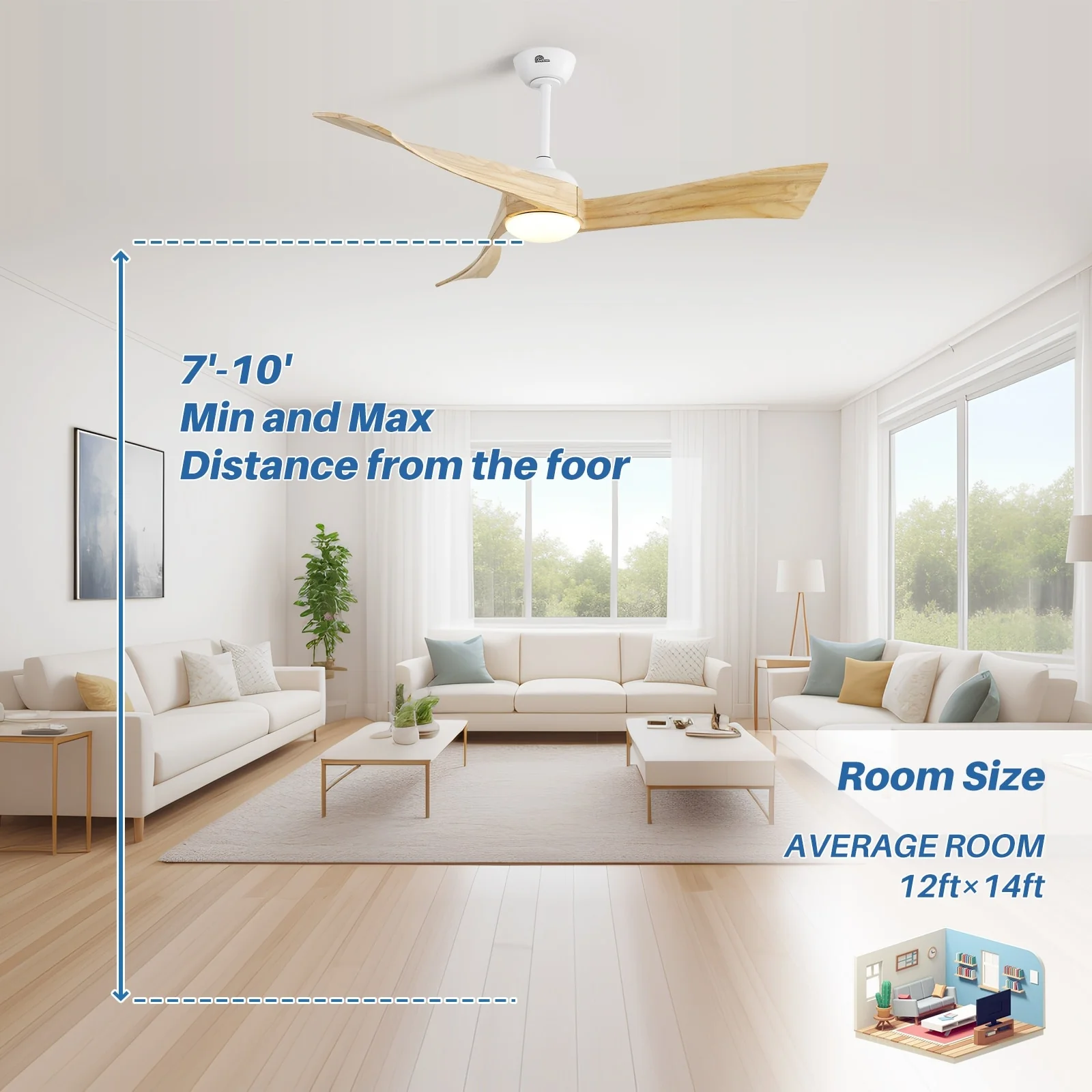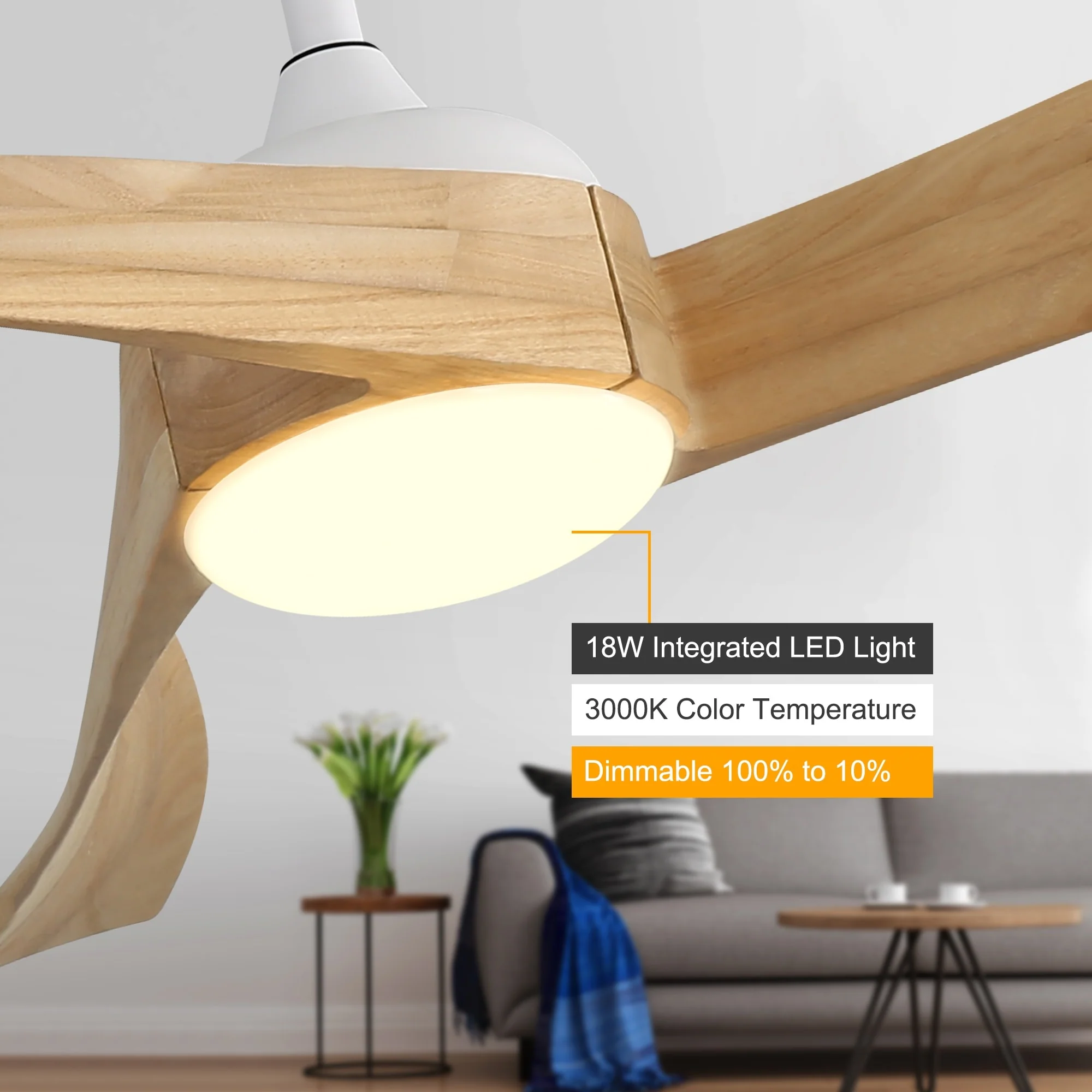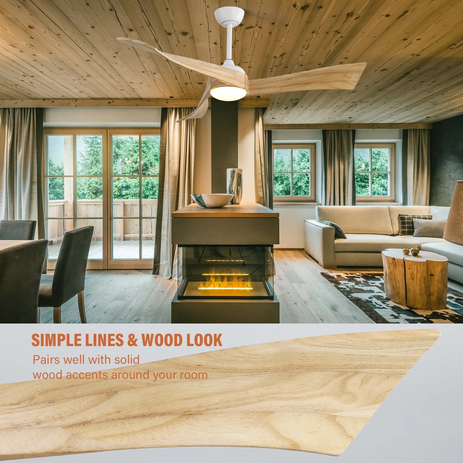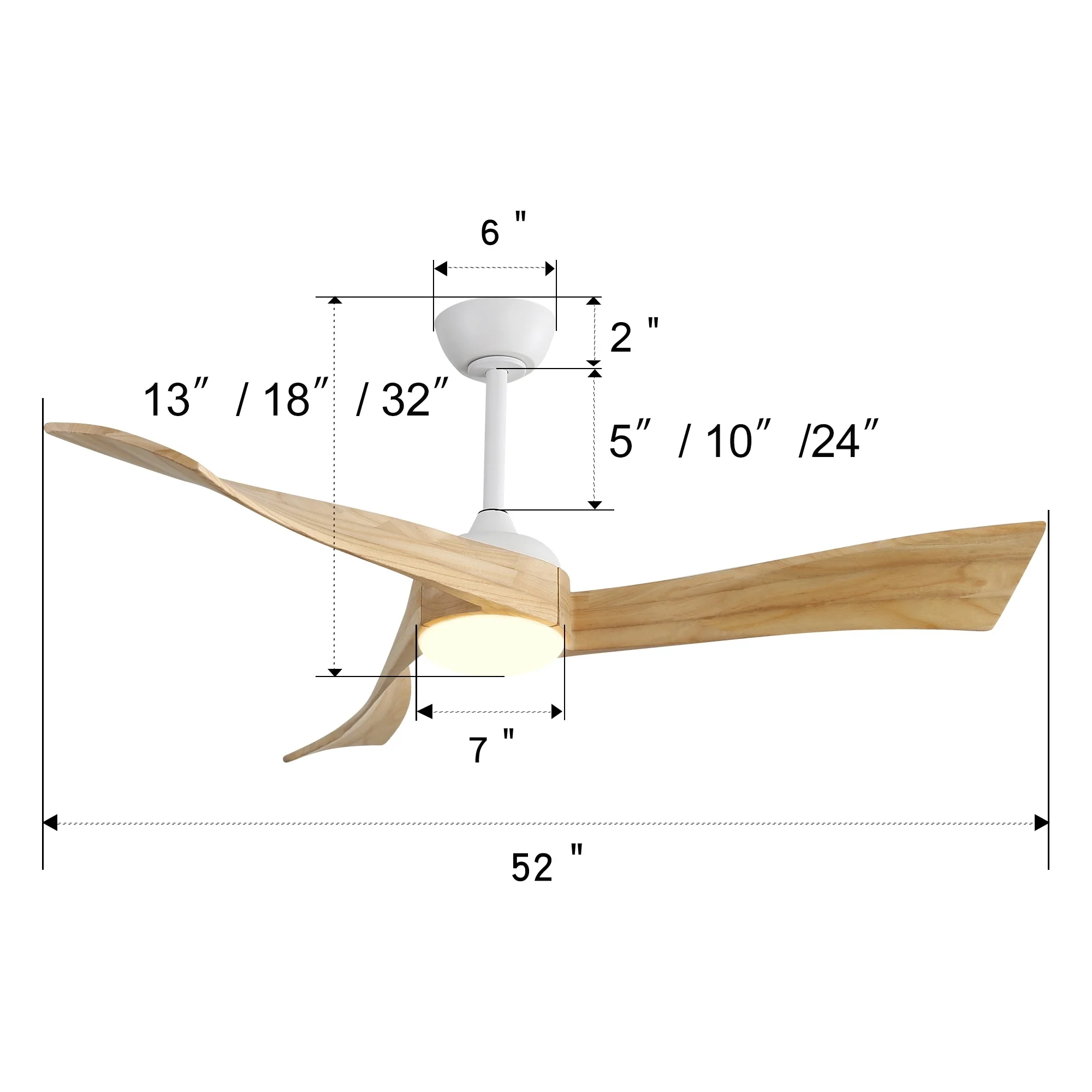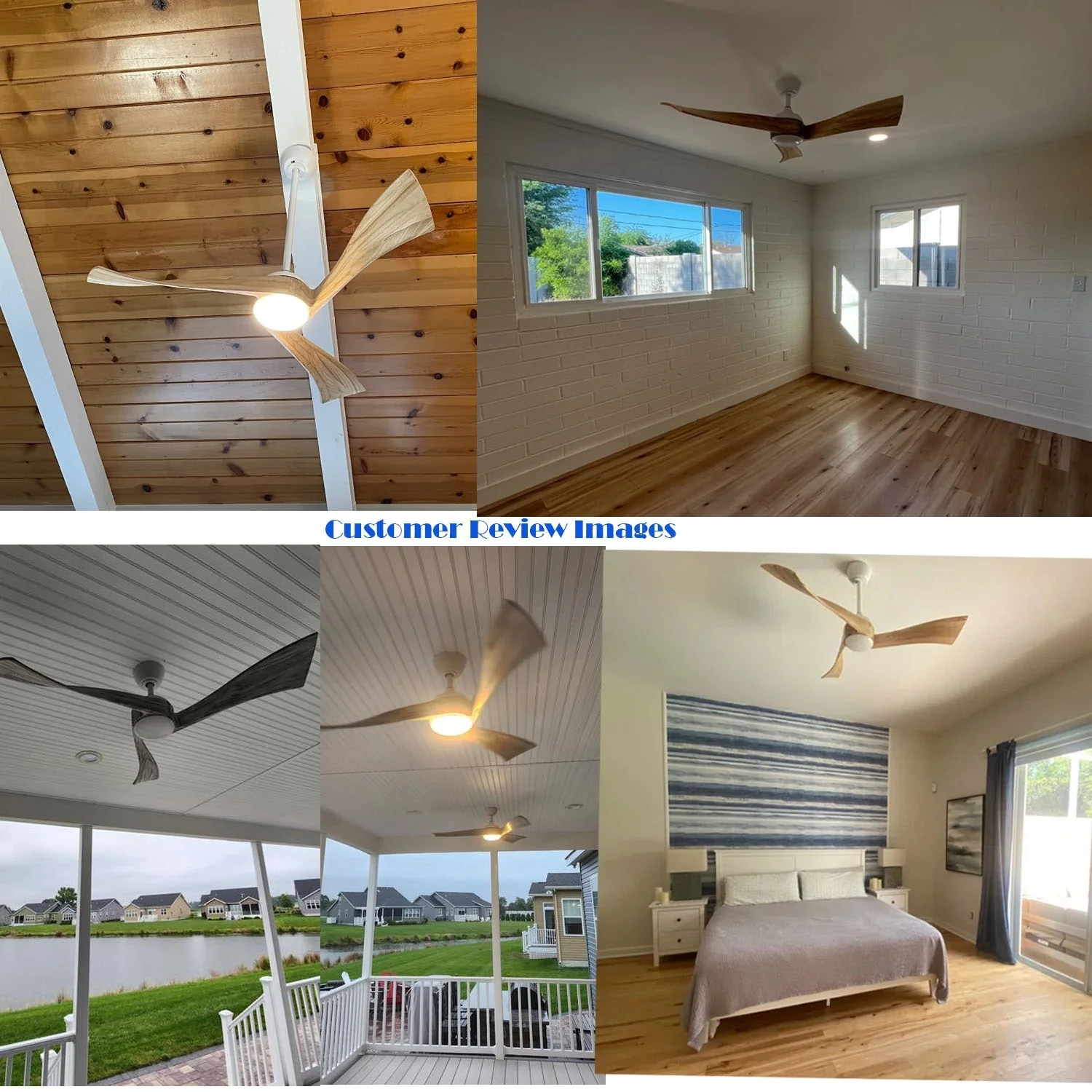 The 52-inch 3-blade ceiling fan with LED light and remote brings unique charm. Its design, inspired by ocean waves, combines modern and rustic styles. The minimalist look and lightweight wood blades suit various decors. Offering high-speed cooling, it creates the perfect ambiance for covered patios.