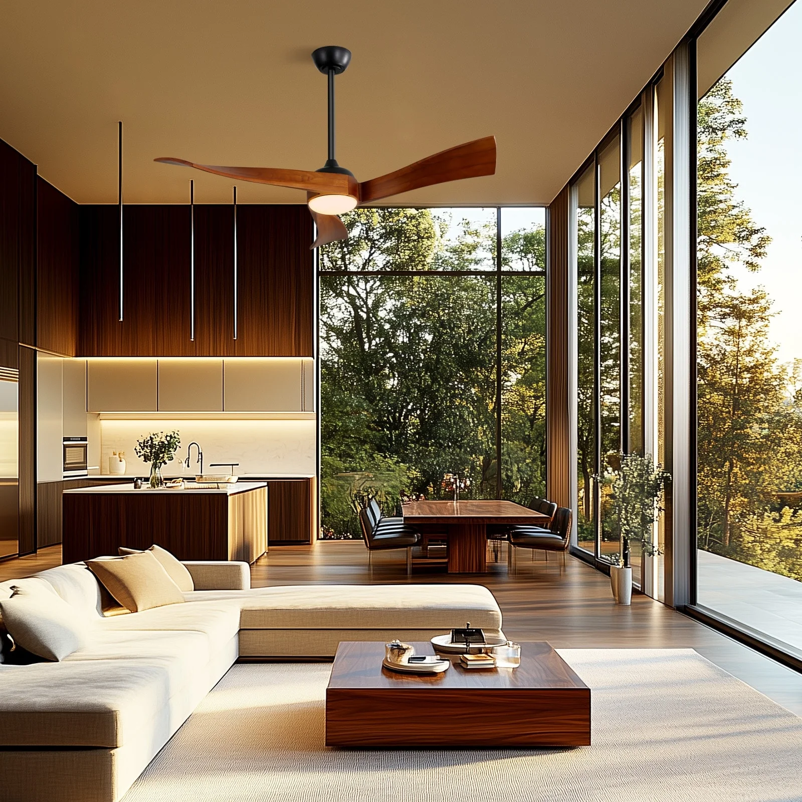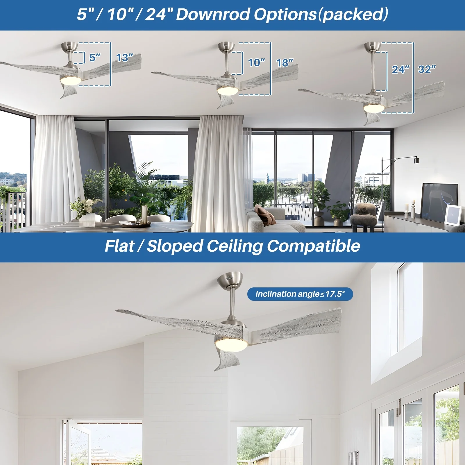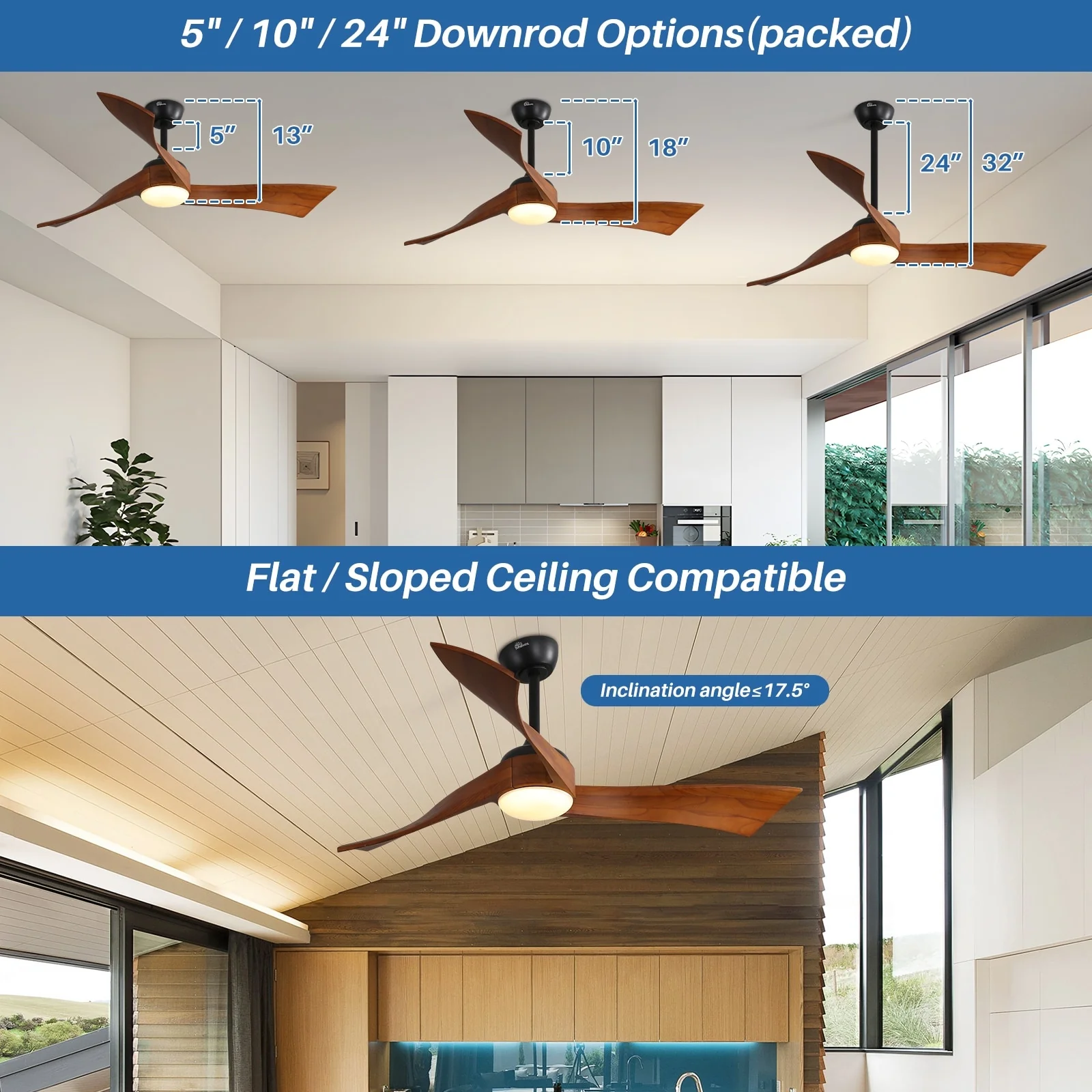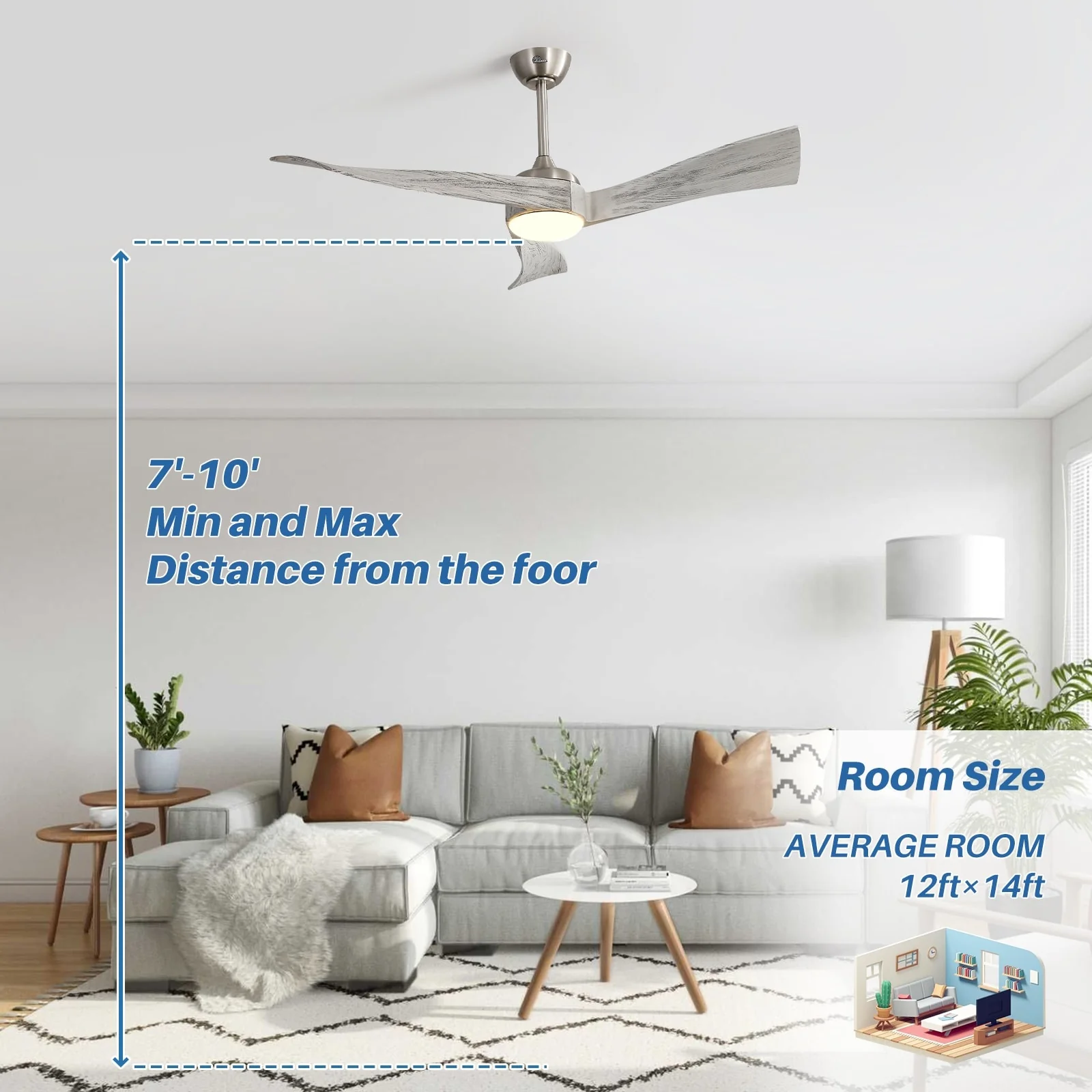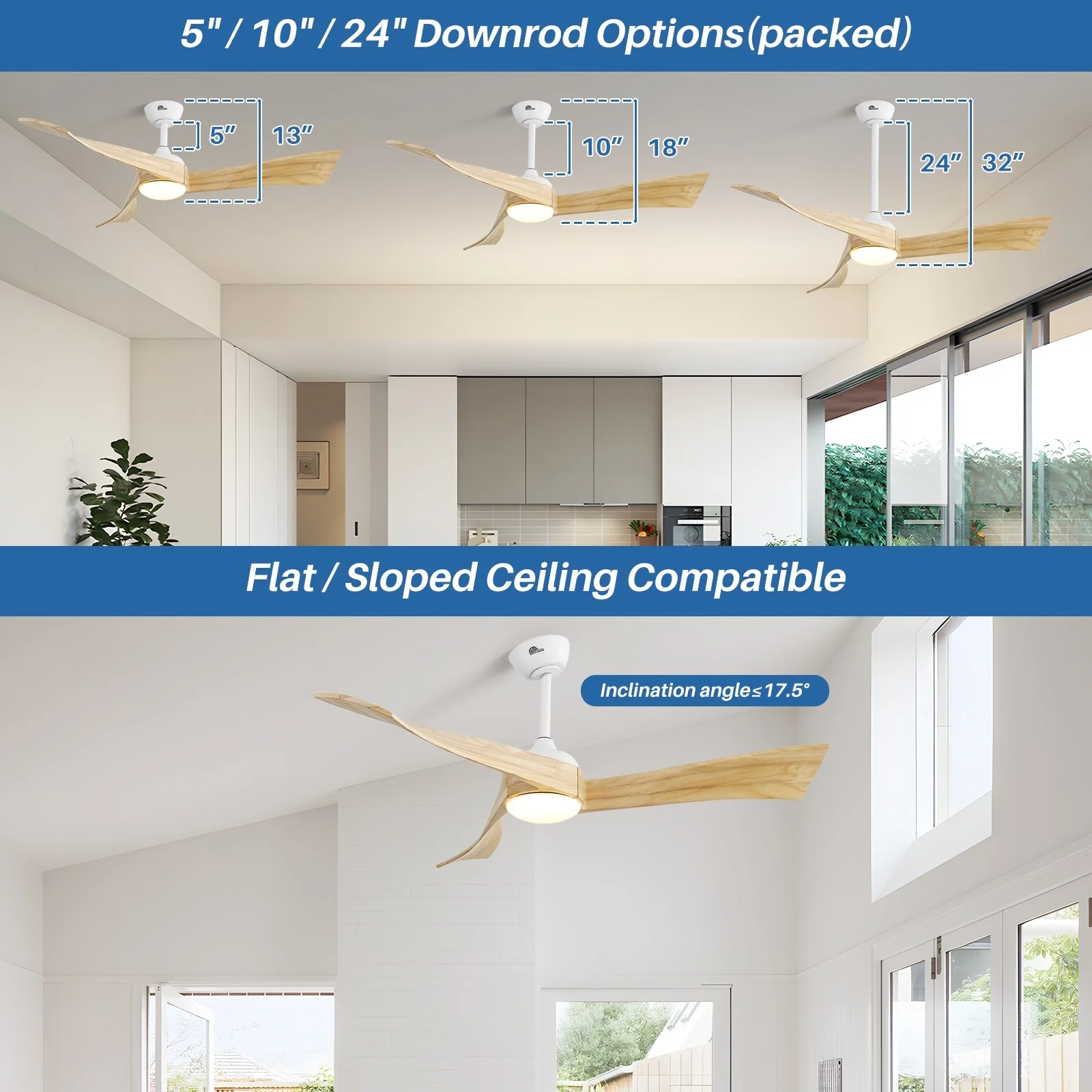 The 52-inch 3-blade ceiling fan with LED light and remote brings unique charm. Its design, inspired by ocean waves, combines modern and rustic styles. The minimalist look and lightweight wood blades suit various decors. Offering high-speed cooling, it creates the perfect ambiance for covered patios.