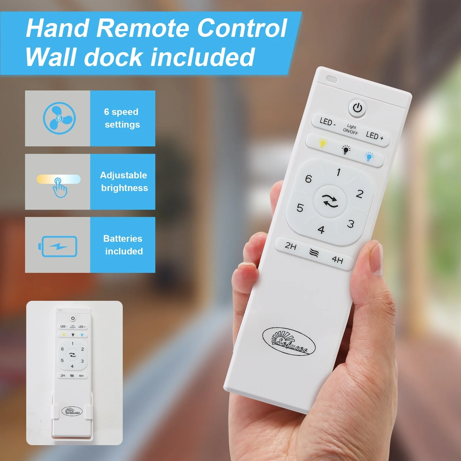 - PS(If you need a downrod longer than 24 inches, please purchase a rod with an extension cord or contact us.If the product has quality, please contact us. DC motor fans do not support wall control. Our fans are not suitable for universal wall control switches. If you need to use wall control, you can only connect the on/off wall control. The switch can only turn on or off the lighting, and then you must use the remote control to control it. Fan speed. So we recommend using a remote control.)