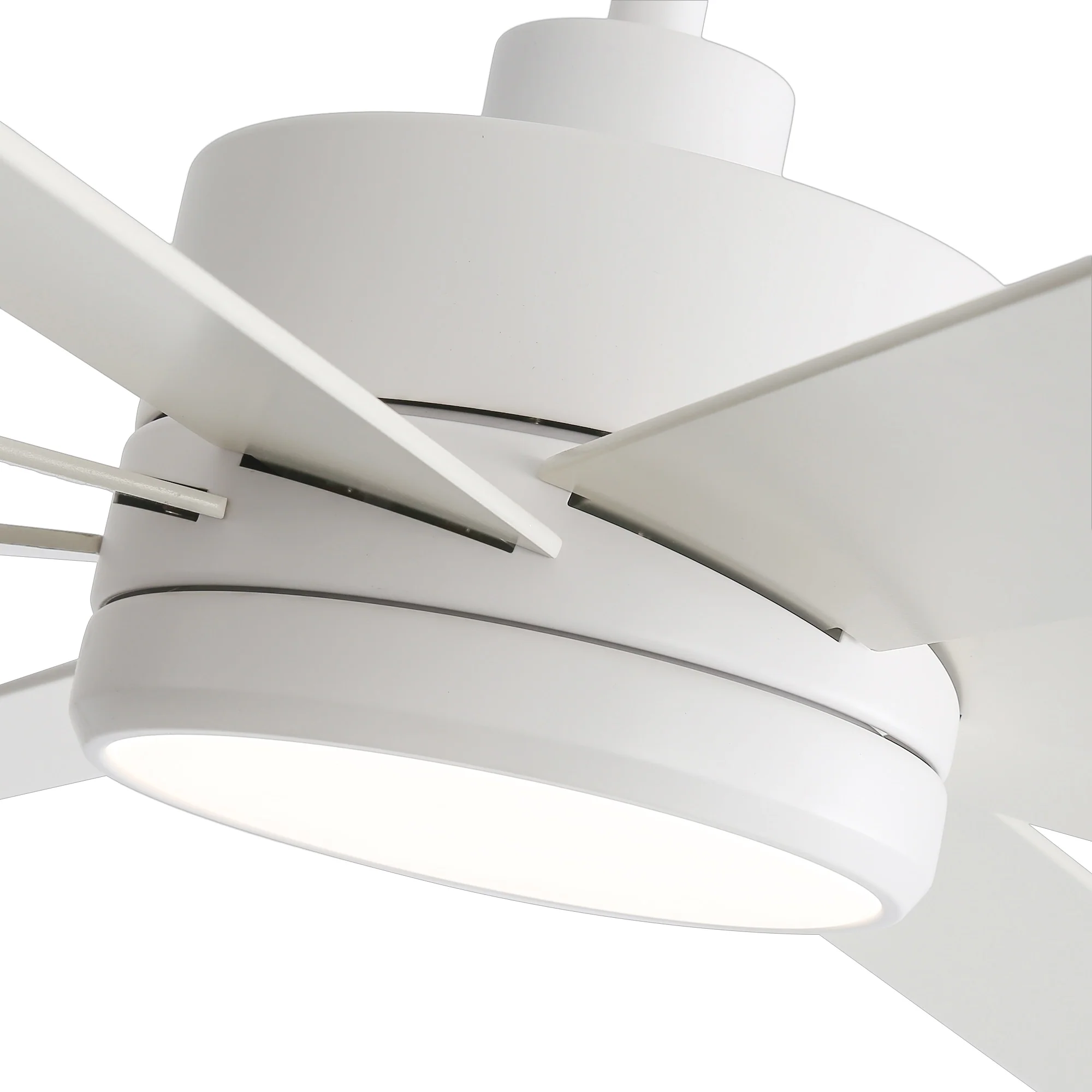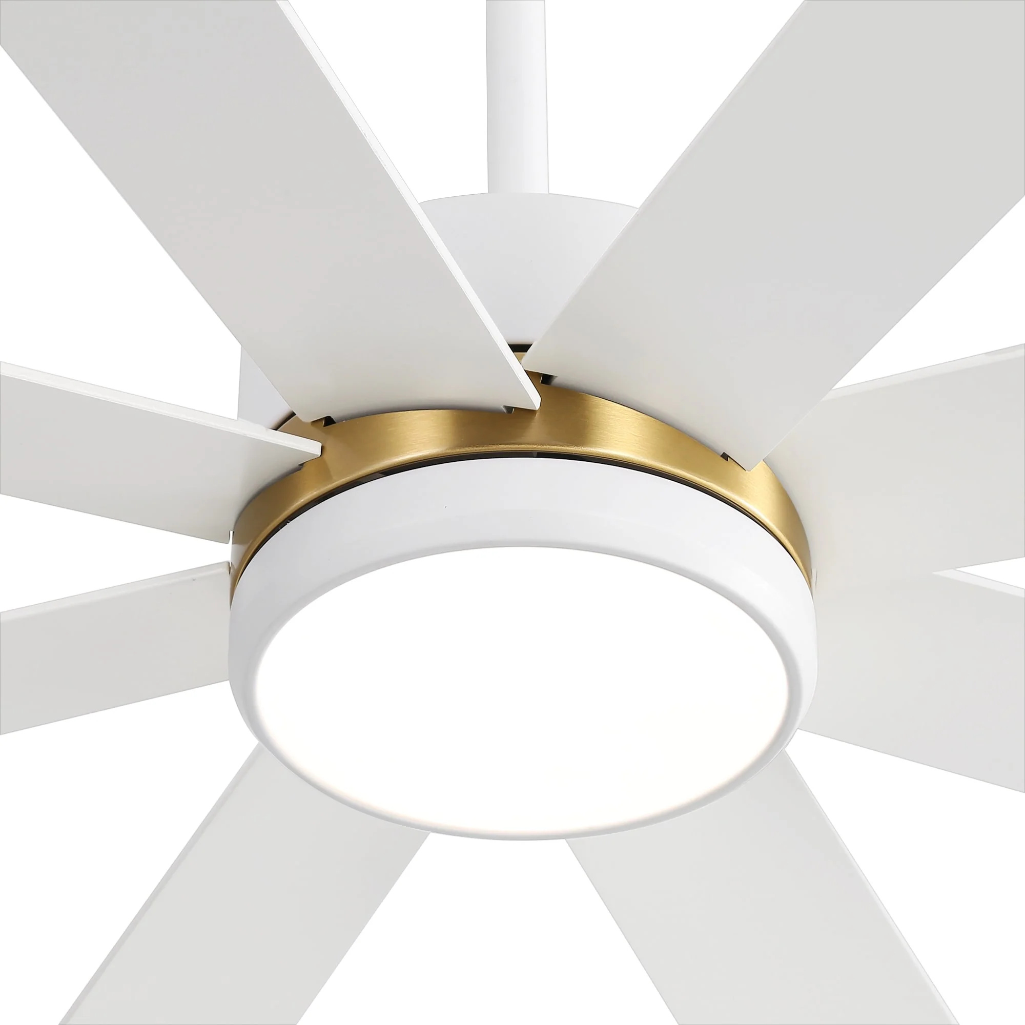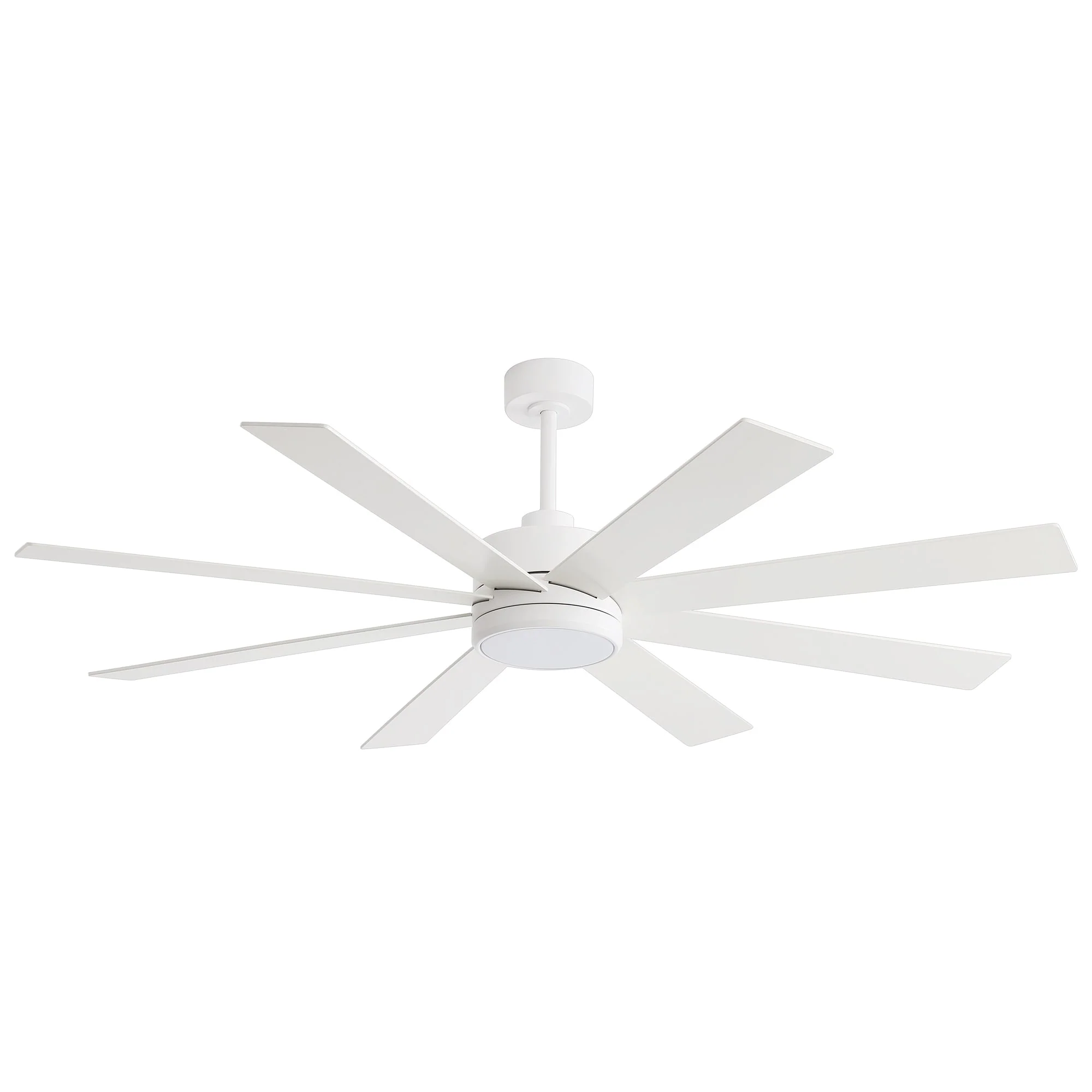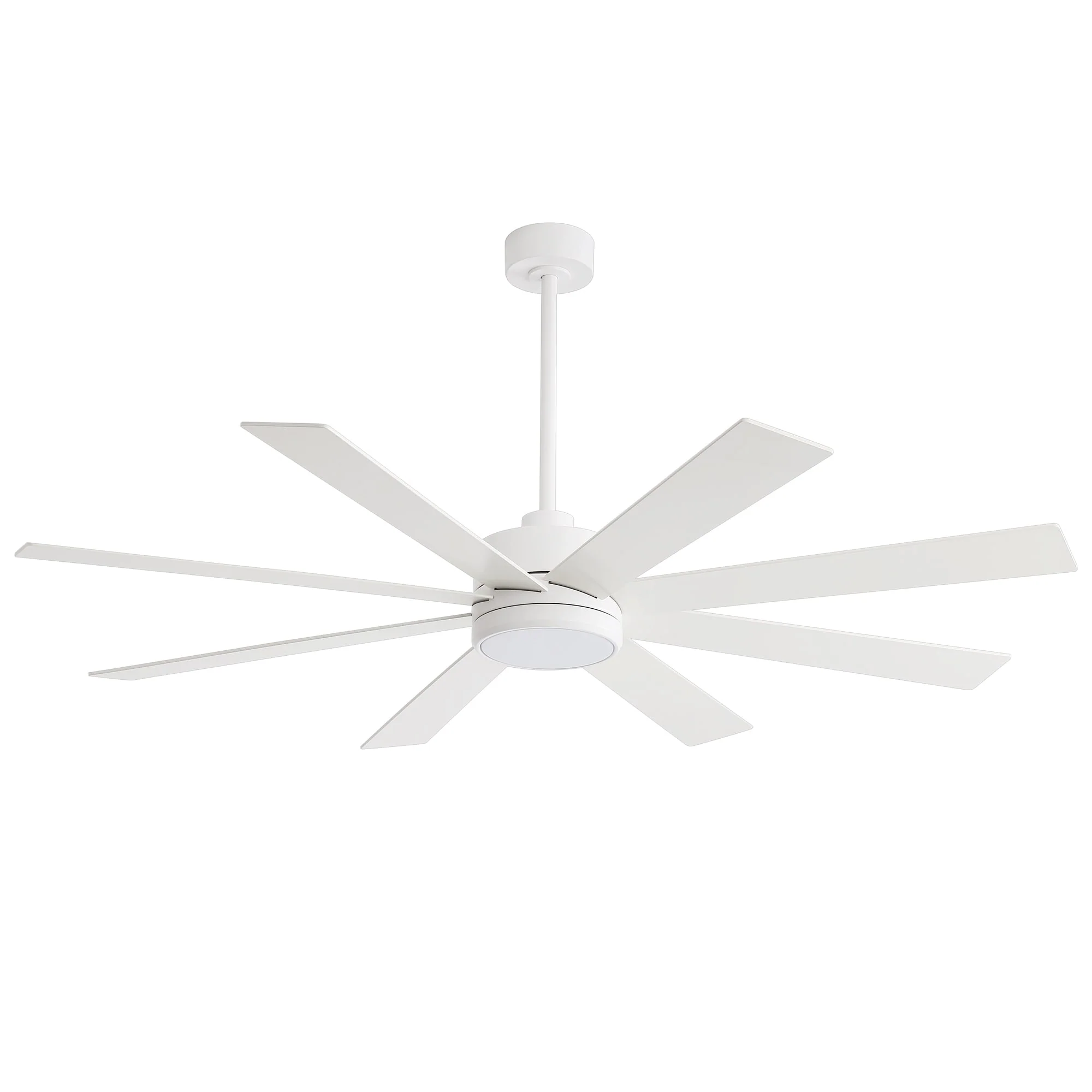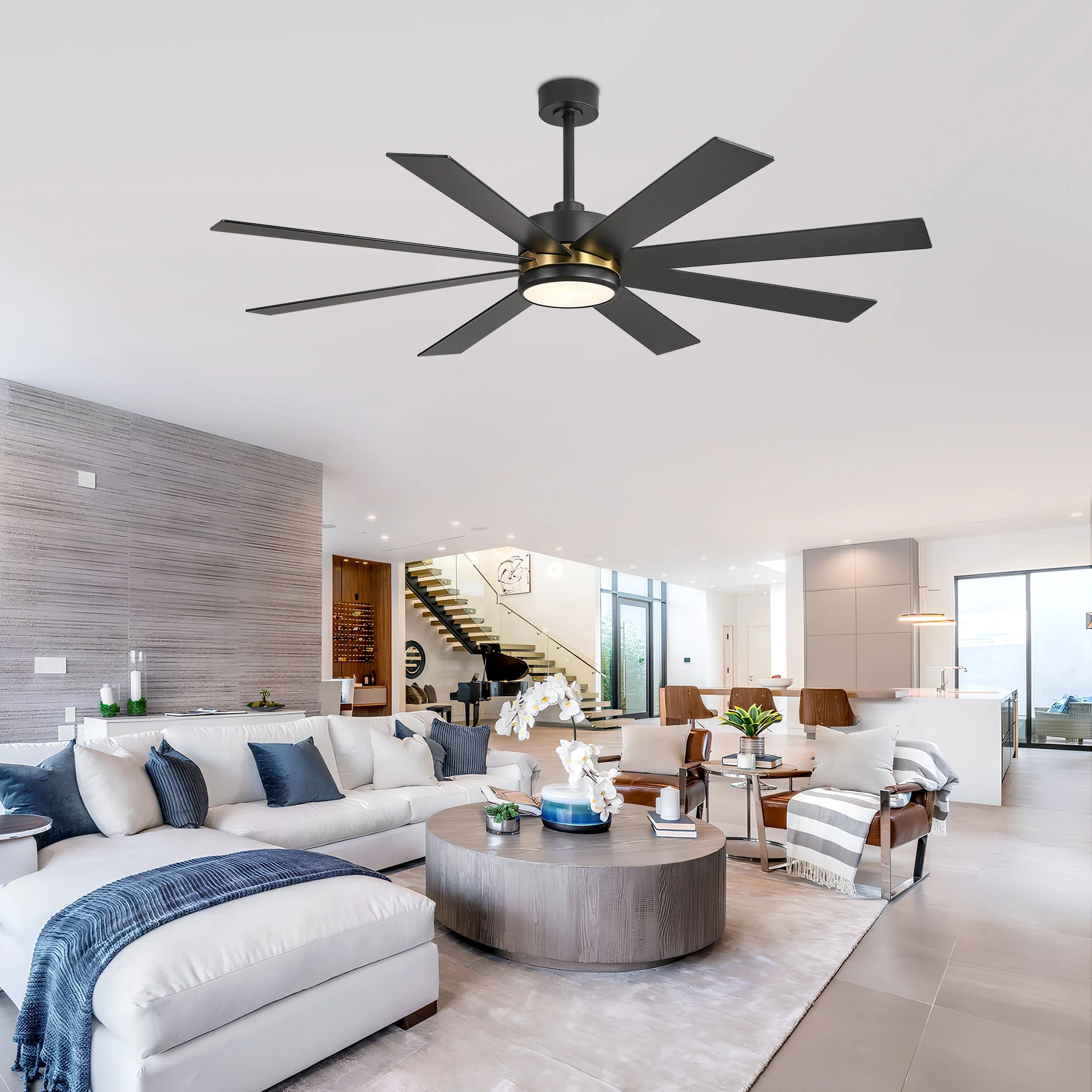 A modern design that performs well in indoor environments, generates a substantial amount of airflow. It is a very big fan with 8 blades and 65 in. blade span. This dry rated and ceiling fan housing is constructed with the durable Plywood blade and metal material. 8 handsome blades are available in white finish featuring reversible and removable. It features a powerful DC motor that runs smoothly and quietly while operating 70% more efficiently than AC motors. The convenient, 6-speed set-up can be controlled locally using the included remote control.