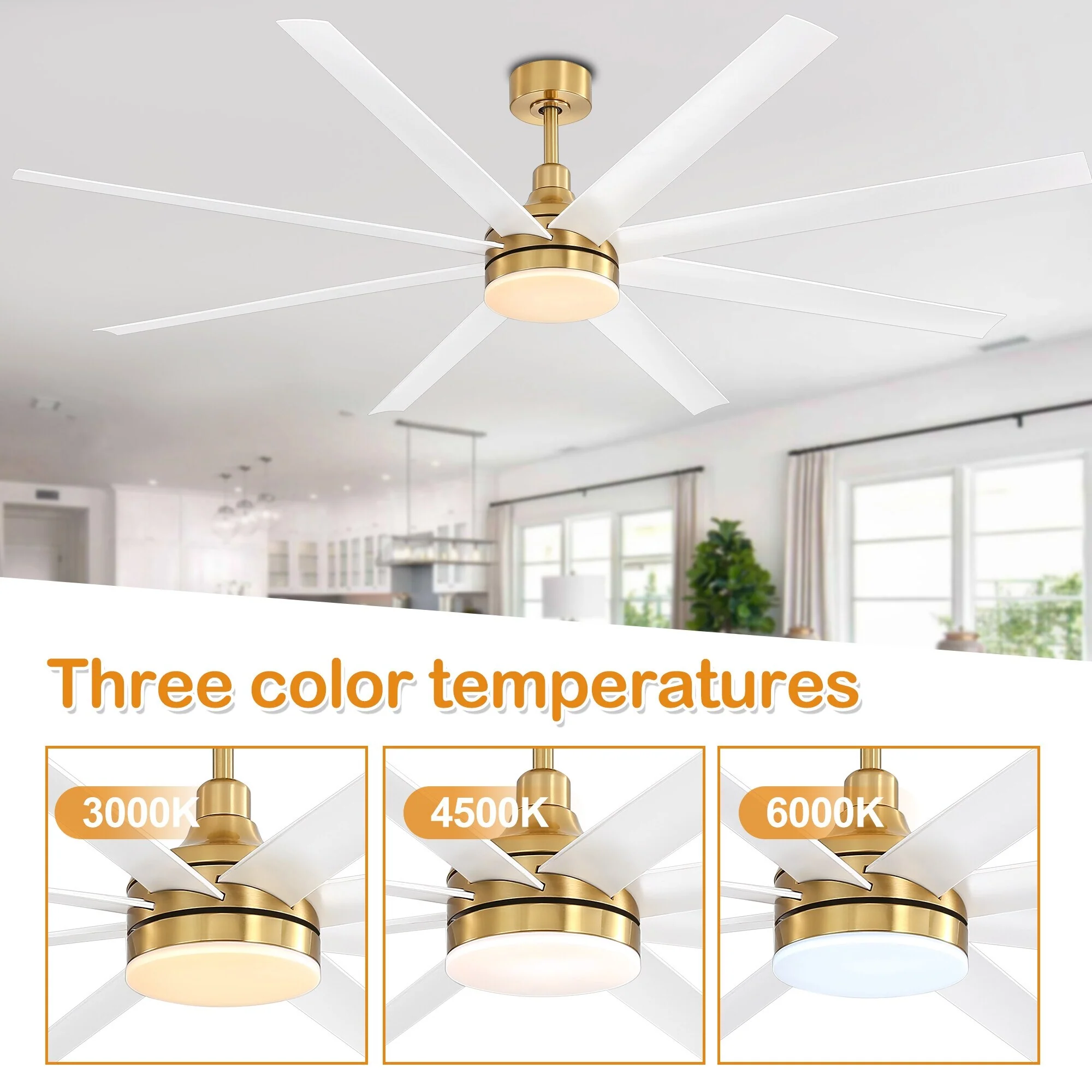 -You can easily turn on/off the light and the fan, change the speeds and color temperature of the light with the remote control included.