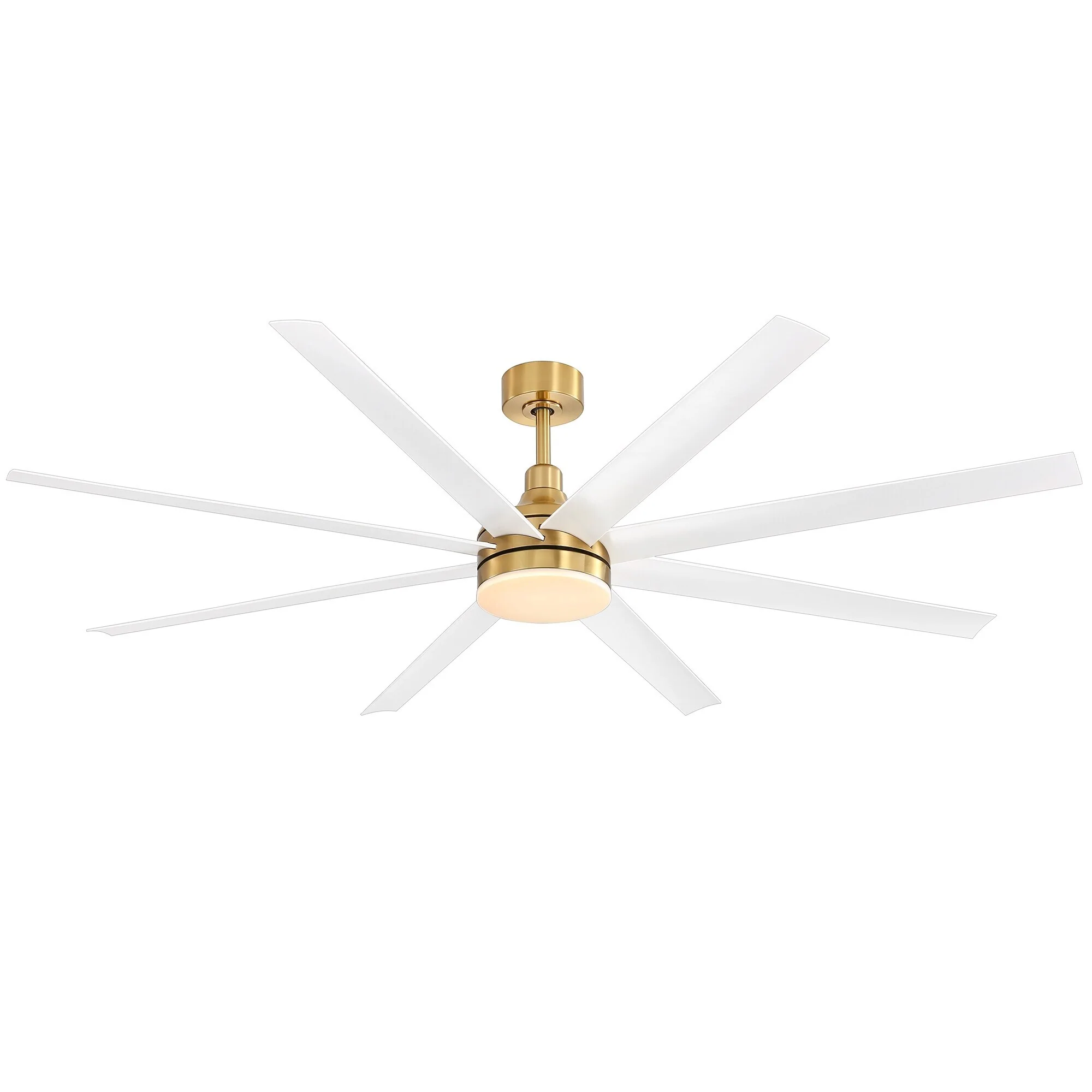 1 x 8 Blade Gold Ceiling Fan, 1 x Remote Control, 2 x Downrod (1x 7', 1x12'), 1 x User Manual