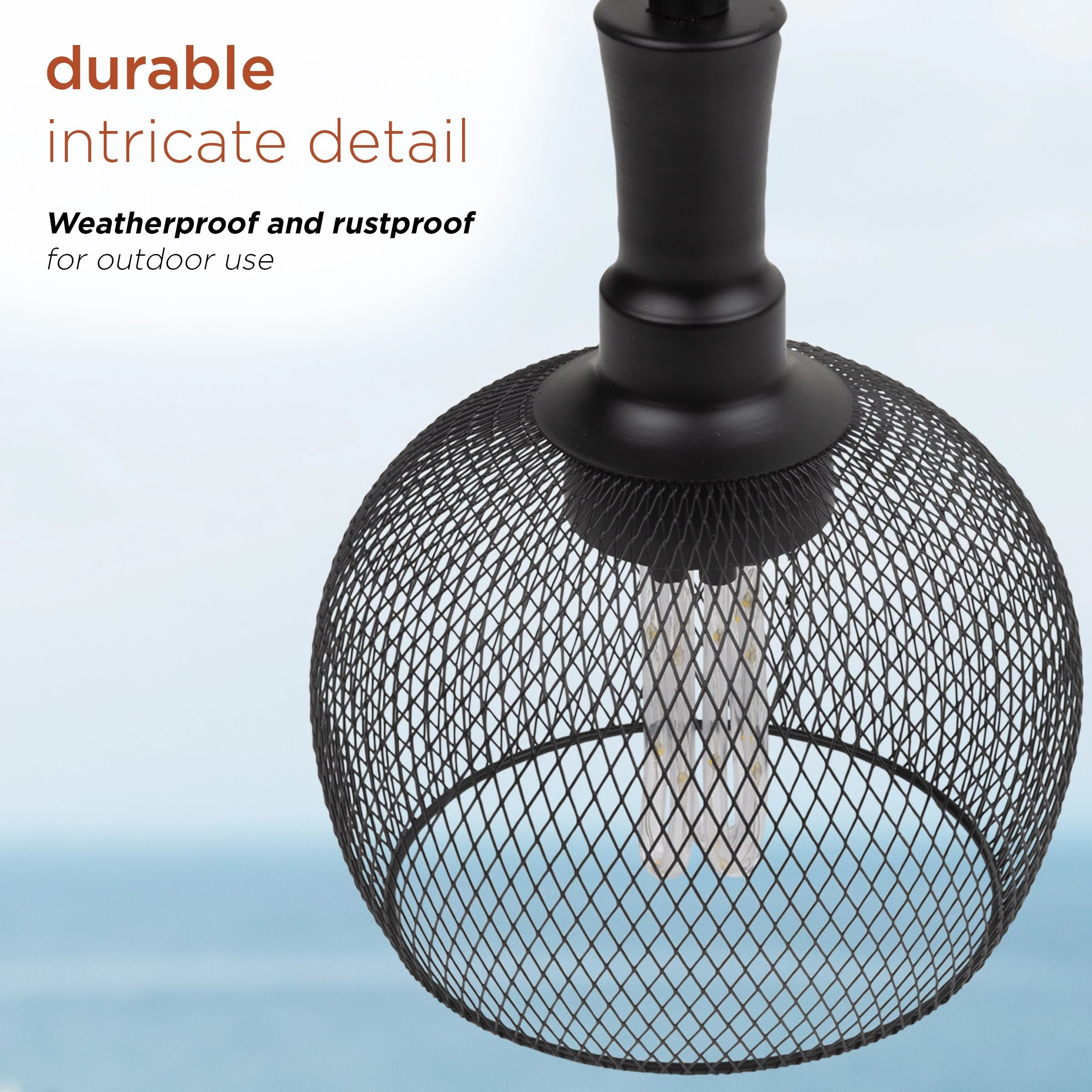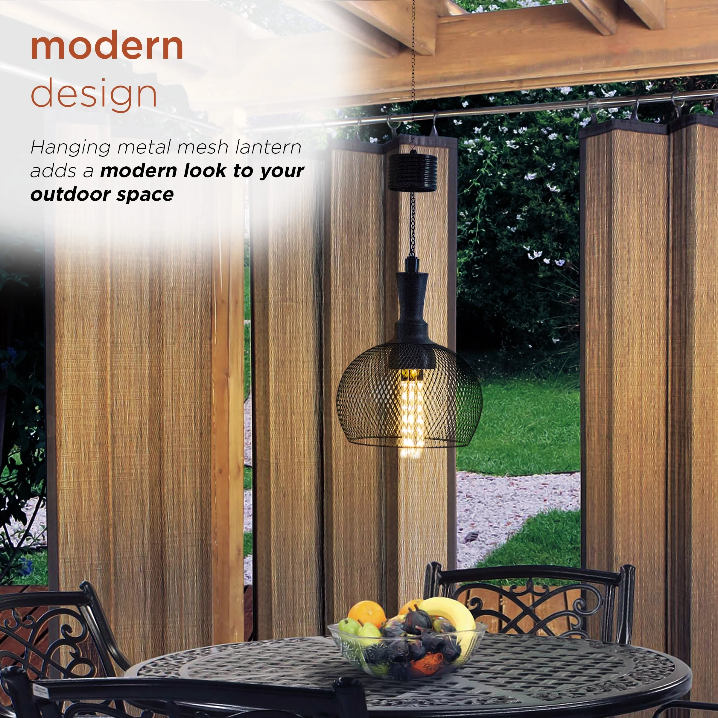 Add contemporary style to your outdoor area with the 10' tall Hanging Solar Powered Outdoor Mesh Lantern with LED Lights from Alpine Corporation. This lighted outdoor décor piece features 24 warm white LED lights with a unique, patented filament. It is powered by solar energy to offer your guests a warm welcome and charges during the day to keep your lantern lit for up to 8 hours on a full charge. This stylish lantern suits both modern and traditional décor, and its distinctive mesh cage overlay diffuses light for a soft ambiance. With a durable metal exterior, the yard art is made tough for outdoor use and is weather-resistant for long-lasting, quality use in your front yard or backyard or along your sidewalk. Add one or multiple lanterns to create an enchanted garden display. The outdoor lamp is perfect for display on pathways, entryways, courtyards, and outdoor living spaces. For a hassle-free set-up, the 10' tall Hanging Solar Powered Lantern comes with everything needed to install it, including a chain and mounting hook. The decorative garden decor measures 7'L x 7'W x 10'H (26' hanging with chain) to fit almost any outdoor space, and includes a one-year manufacturer's Support from date of purchase. Alpine Corporation is one of America's leading designers, importers, and distributors of superior quality home and garden decor products. Alpine's award winning in-house design team continuously develops new and innovative 'statement pieces' for your home and garden. Your outdoor living spaces will be the envy of the neighborhood with our wide assortment of fresh, fashionable and contemporary products, from beautifully crafted solar garden stakes featuring patented motion and fiber optic lighting technology to gorgeous glass and glow-in-the-dark birdbaths and feeders.