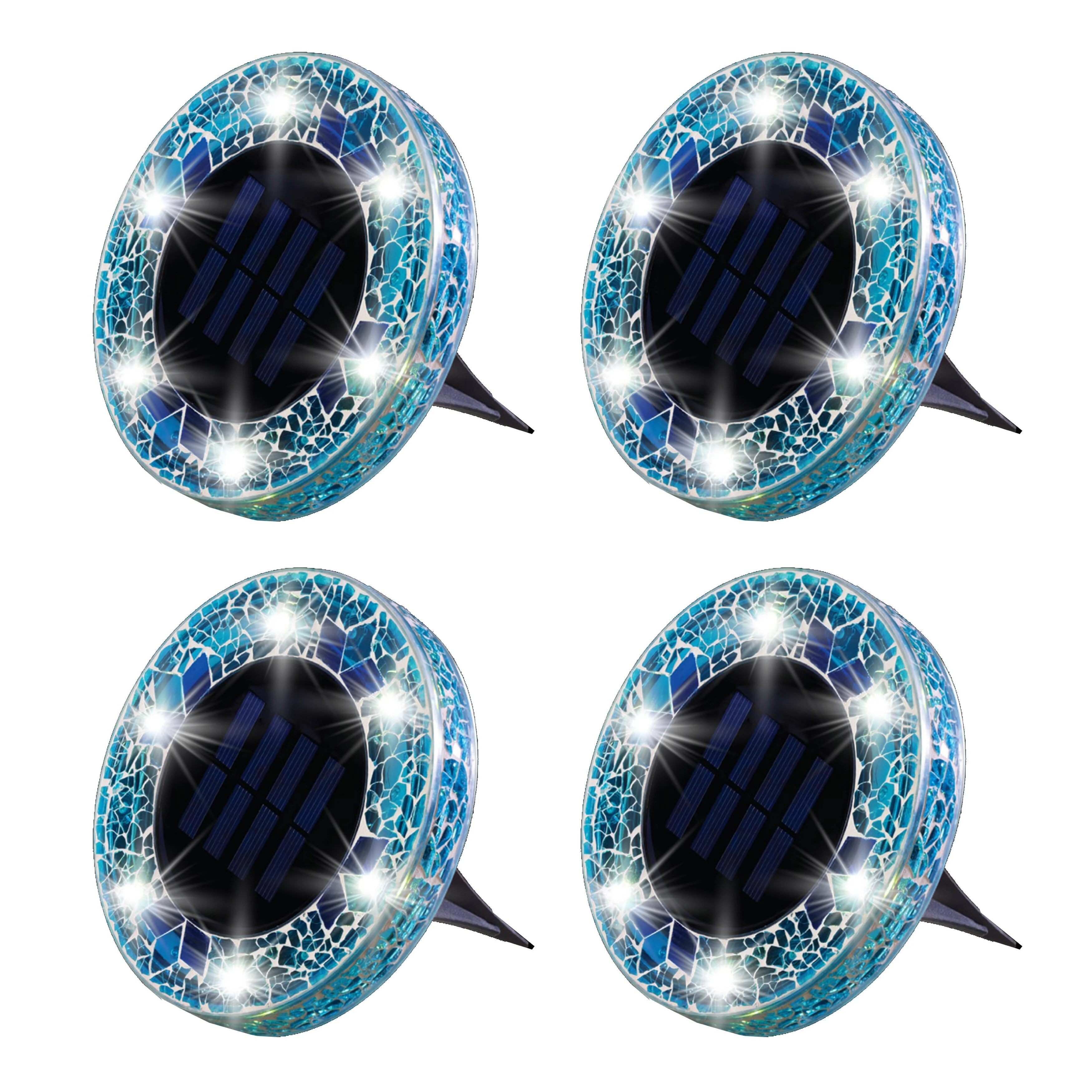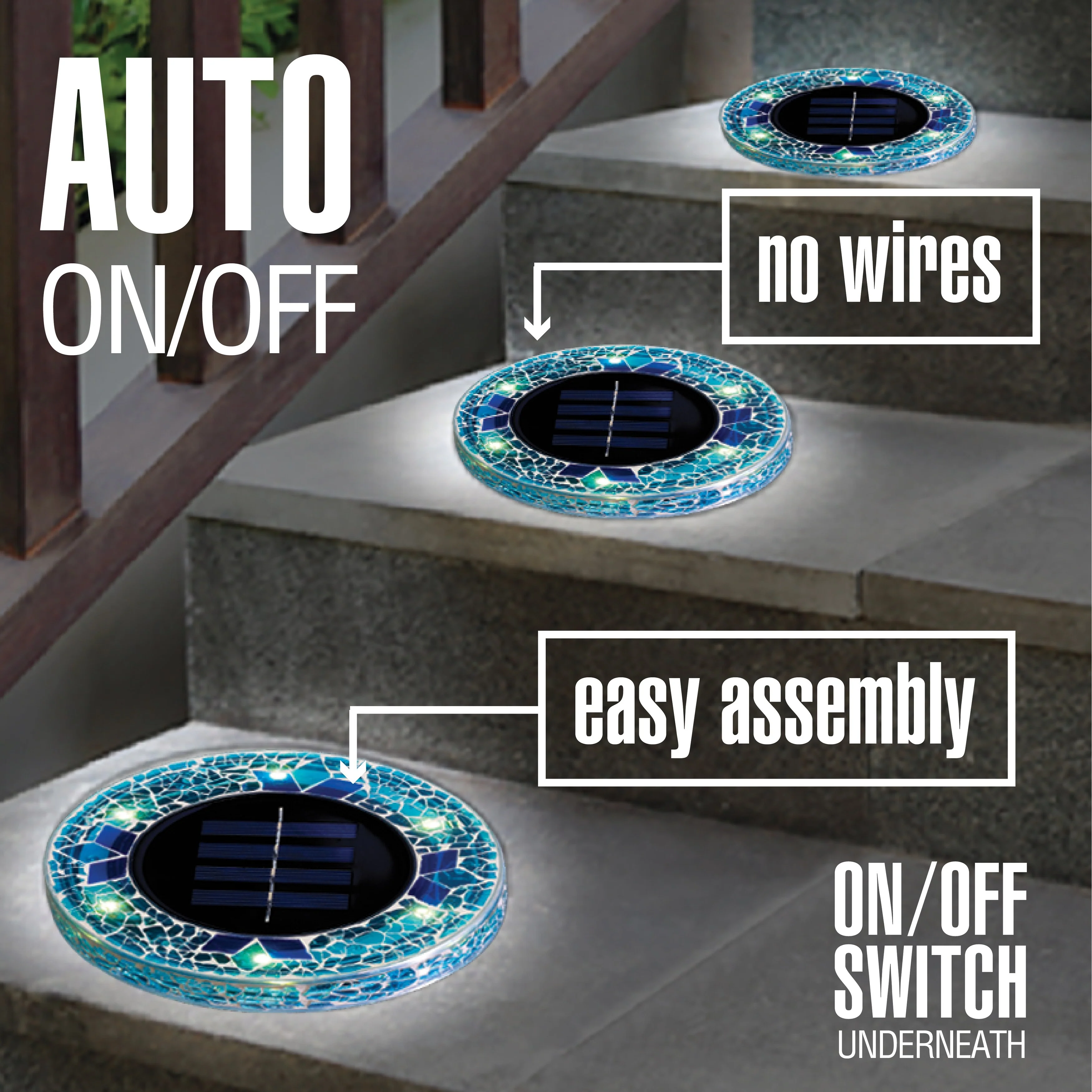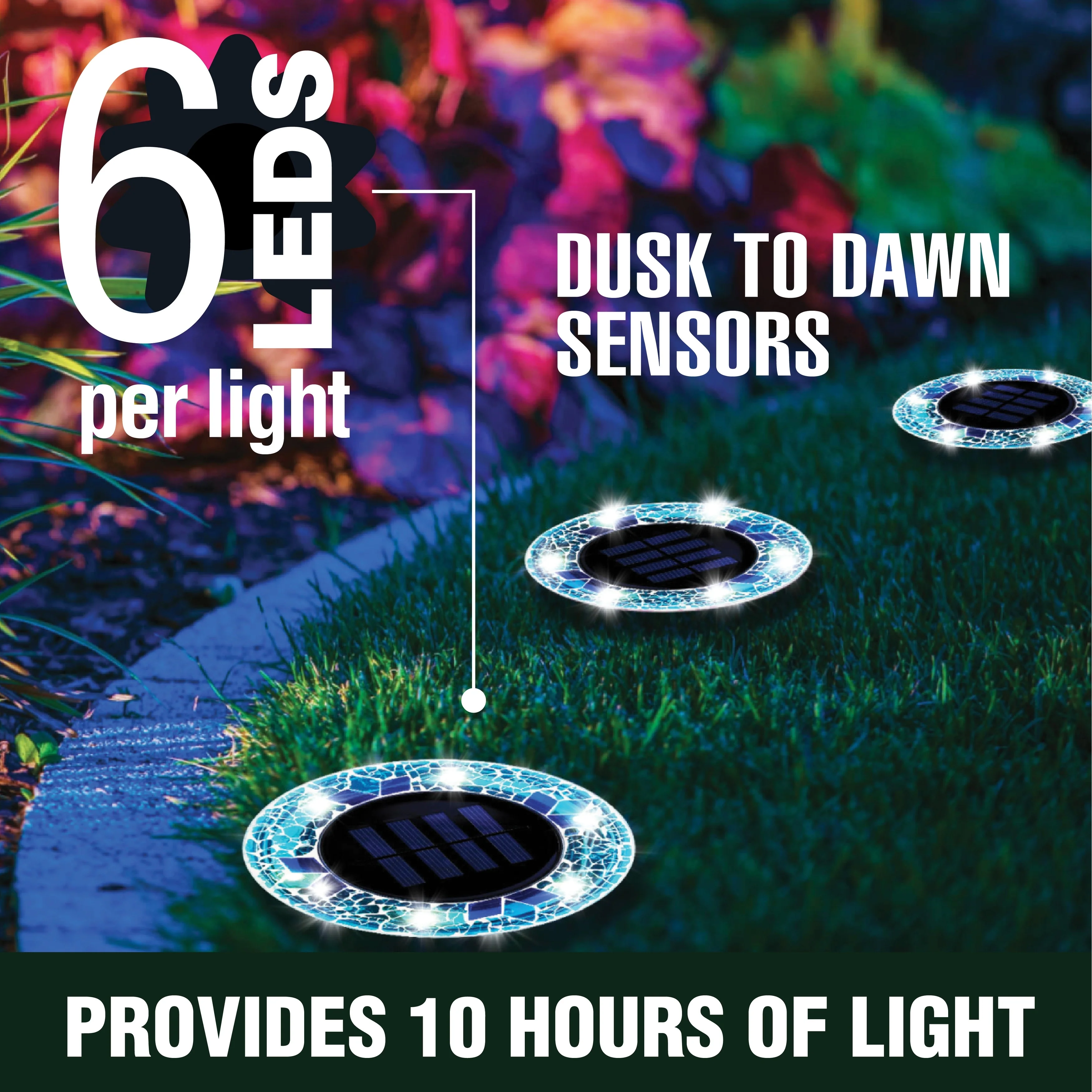 Decorate and protect your home with Bell and Howell Disk Lights. Disk Lights are the newest in portable powerful solar powered exterior lighting. You can now decorate your own home without having to pay a fortune. Disk Lights require no wires, they are super easy to use just mount to the ground and you're done. They are cost efficient because they utilize light conversion technology that absorbs the suns energy in storage cells converting solar power to electricity. Each Disk Light contains ultra-bright LEDs that last over 10-years. They are waterproof, durable, made of stainless steel and tough enough to be run over by a lawn mower. They turn on when the lights go down, giving you 10-hours of light and they turn off automatically. Or you can manually turn them off or on. You can stake them on the ground, mount them with the hook and loop strips or place them on the floor to deliver the right look to your home. Don't spend a thousand dollars or more creating beautiful cascades of light, just use Disk Lights.