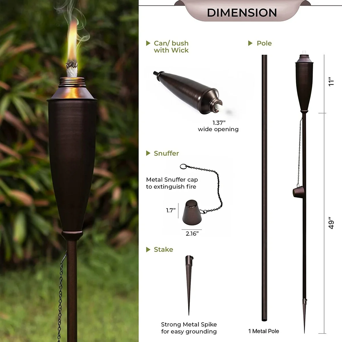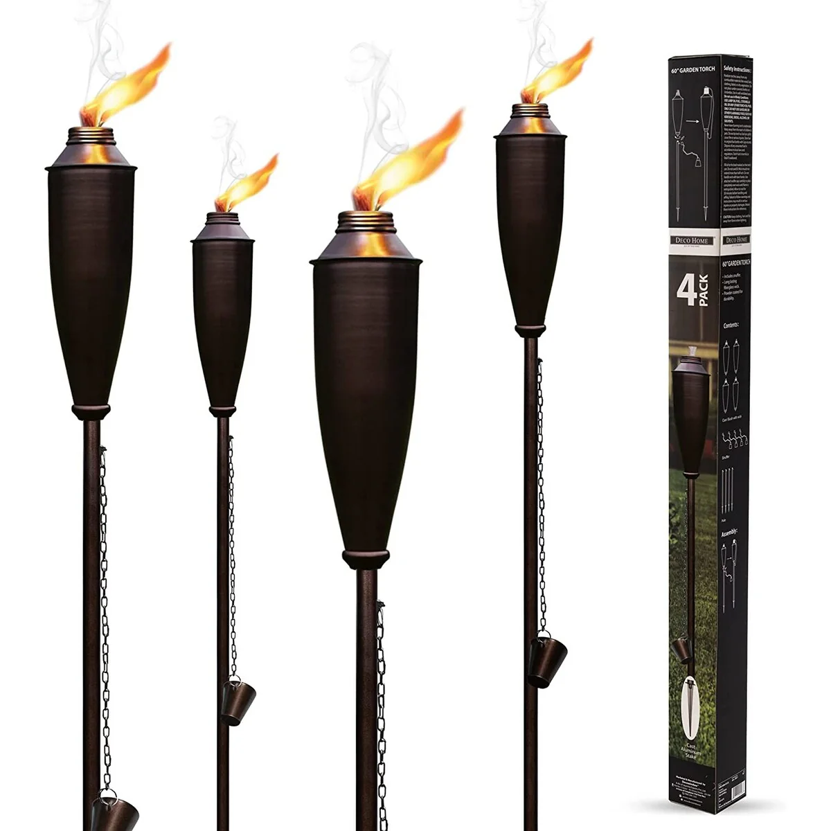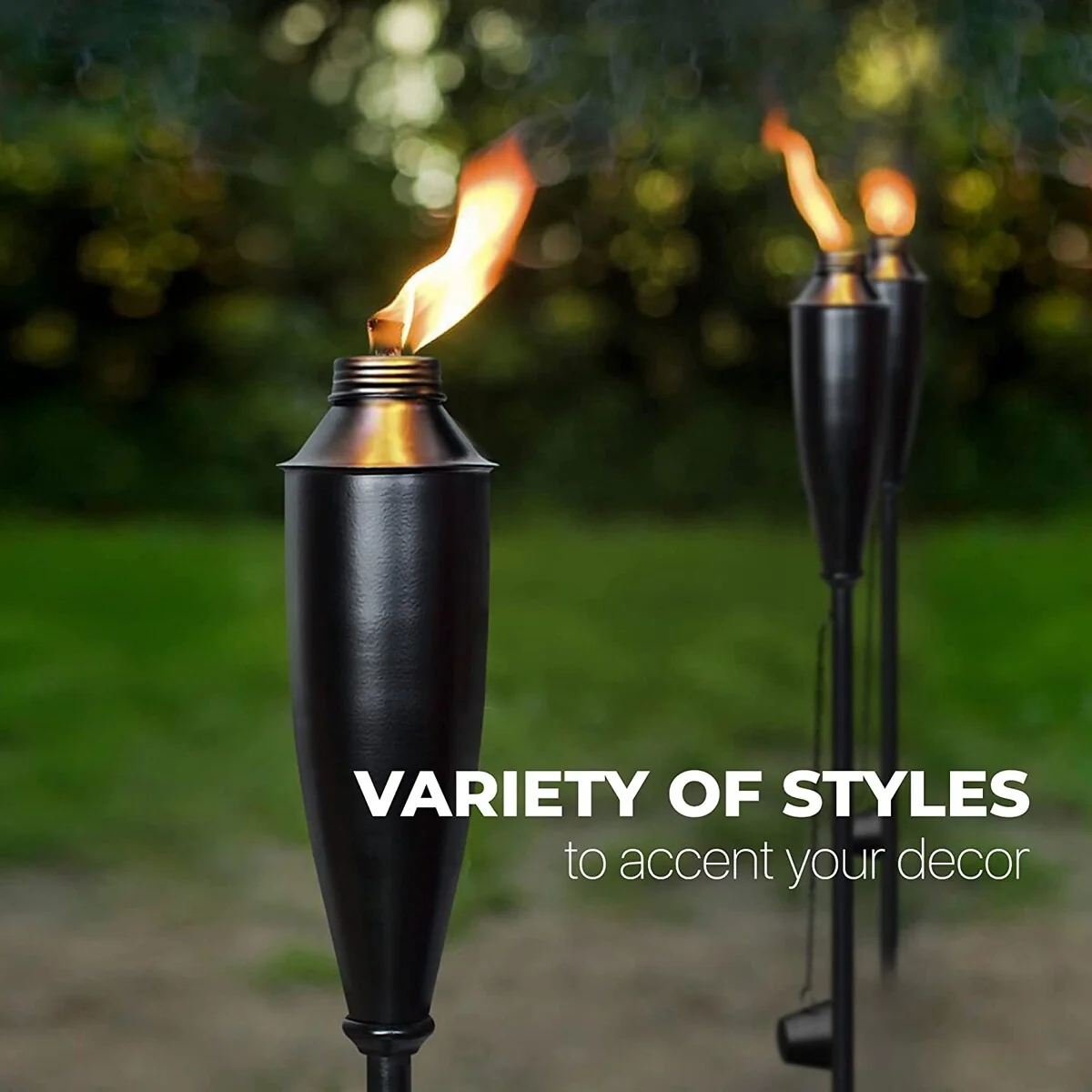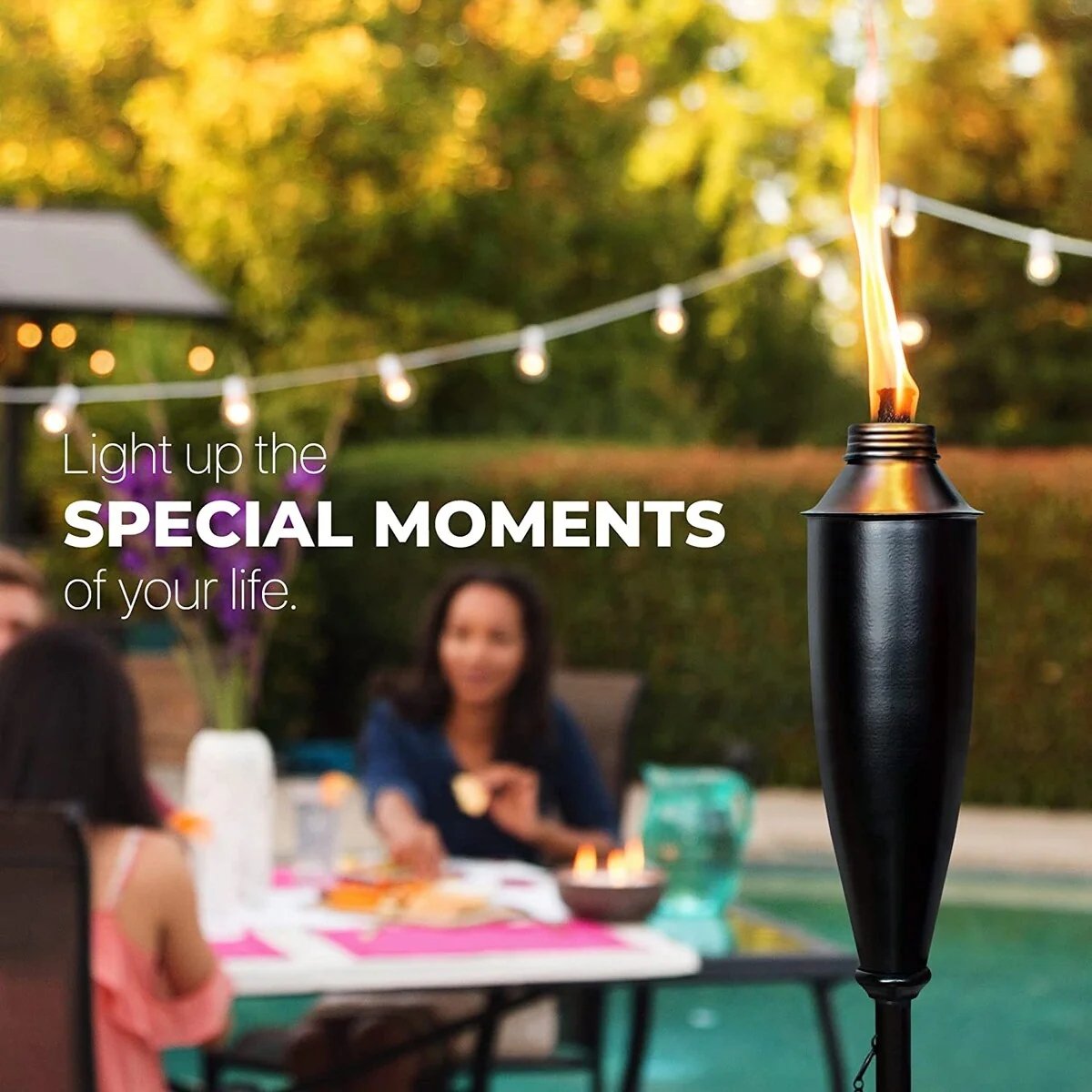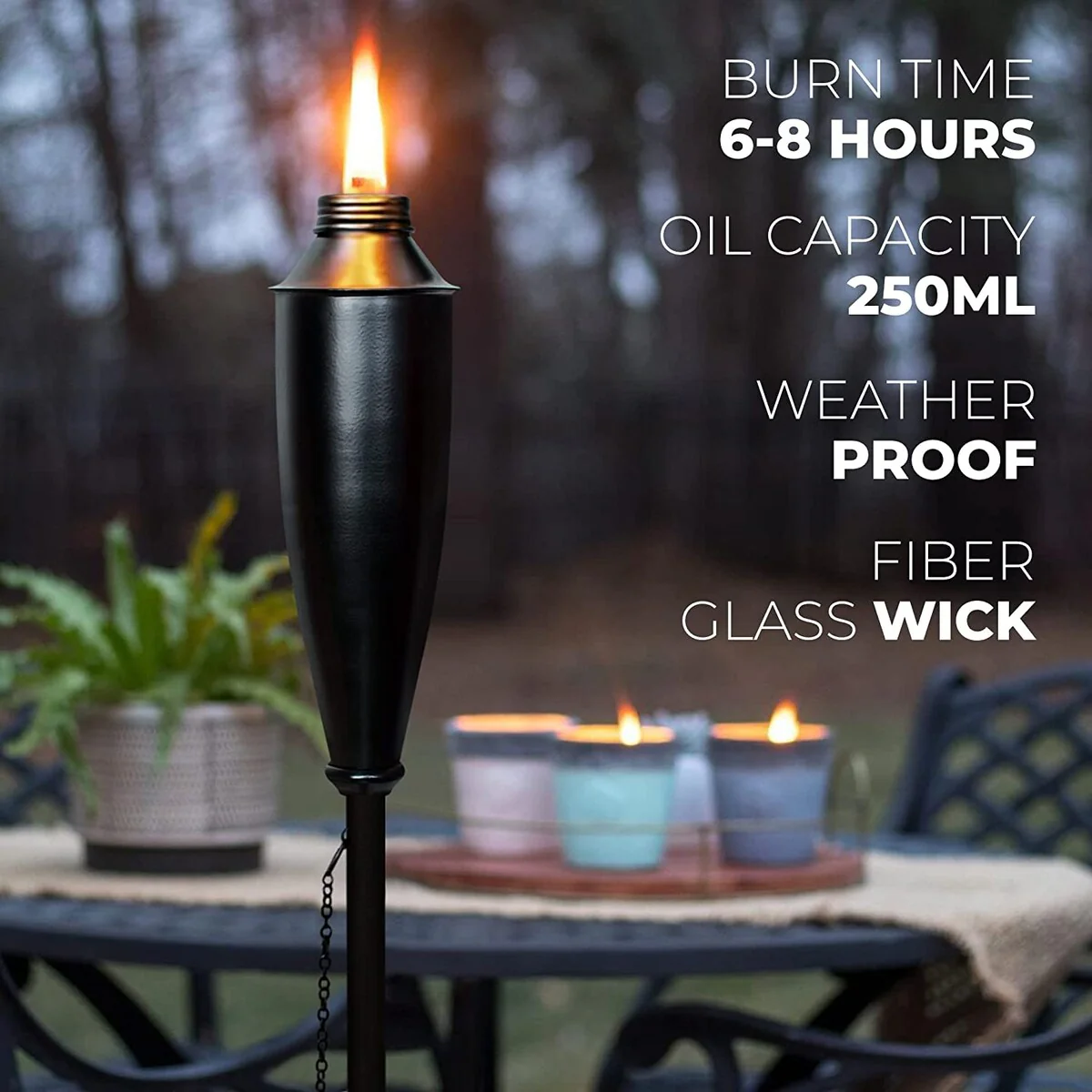 Make your urban abode into a tropical paradise. Enjoy outdoor in your balcony, patio, deck, lawn or garden in a traditional, fun and natural way. A decorative way to light your outdoors. These durable metal torches can easily be converted into a full-sized torch, a mid-sized torch. The torch comes in a set of 4: 60'' Inches. Each fill provides more than 6 hours of ambience. Best use with the torch oil Majorly used in: Our Garden Torch is the perfect choice for Outdoor lighting, Walkway Landscape Decorations and garden parties, Halloween festival decor, Home & Garden decoration, Yard, Pathway & Patio Lightning, wedding decor, barbeque party, Christmas decor, it will provide a perfect natural ambience.